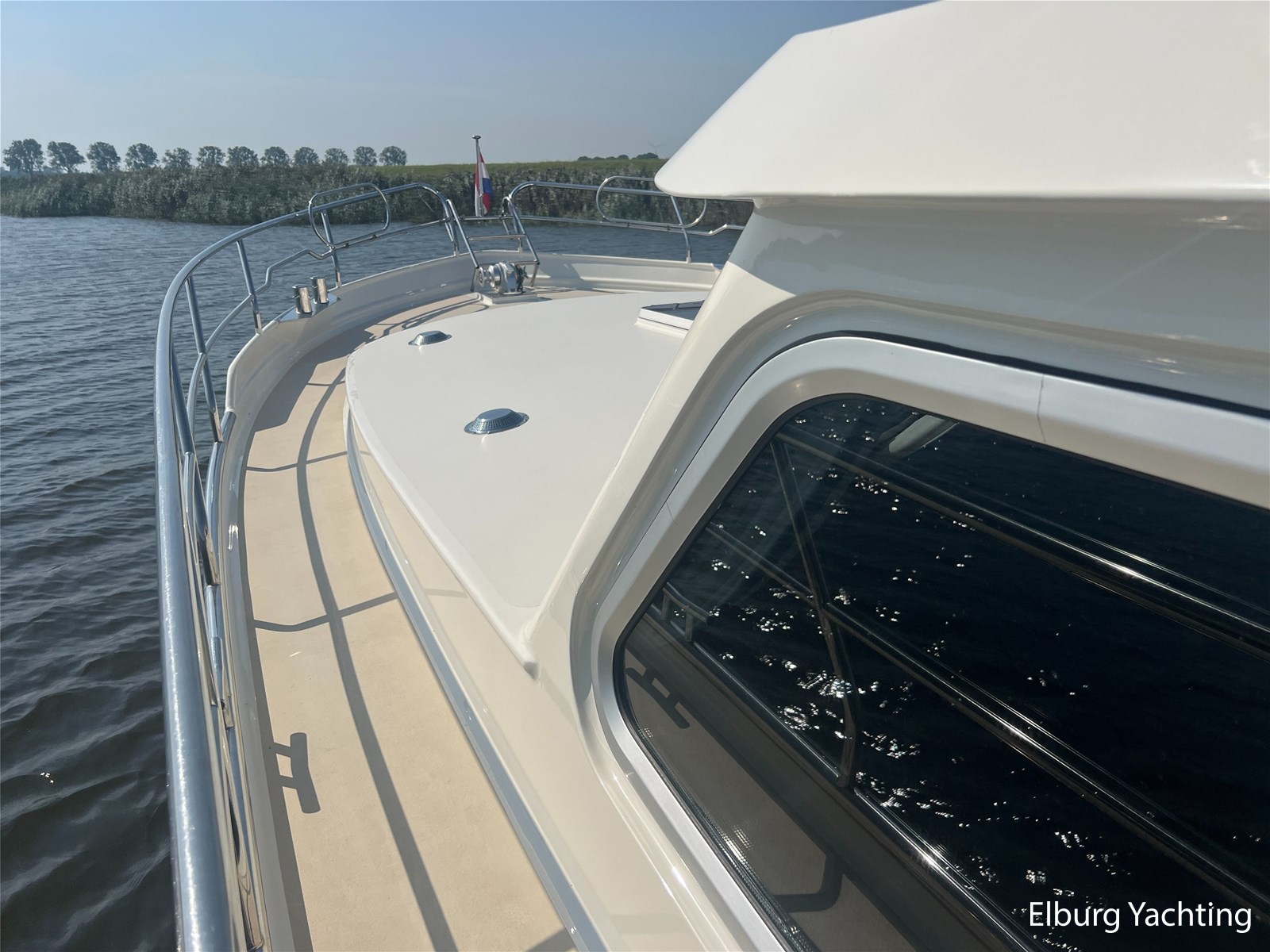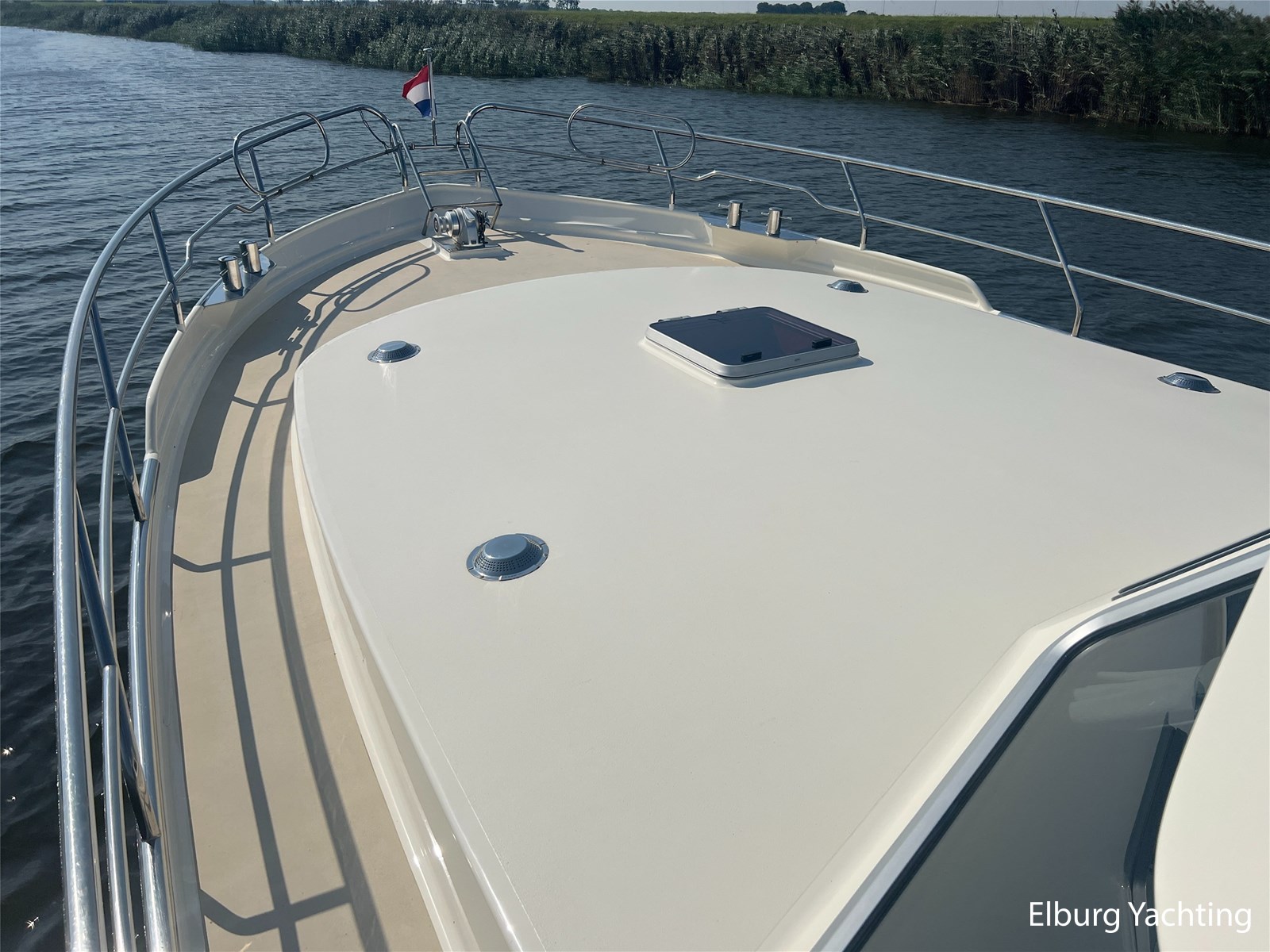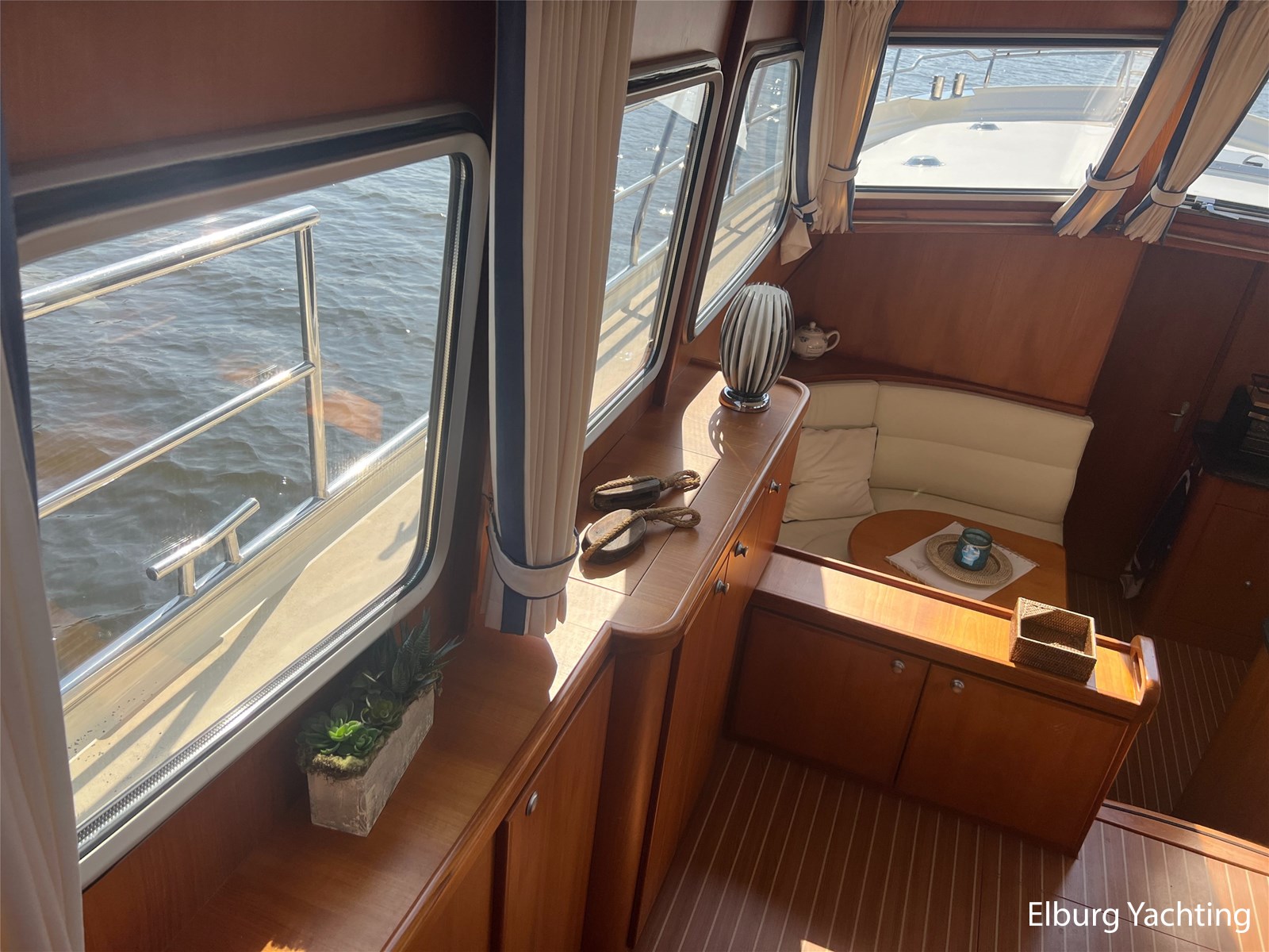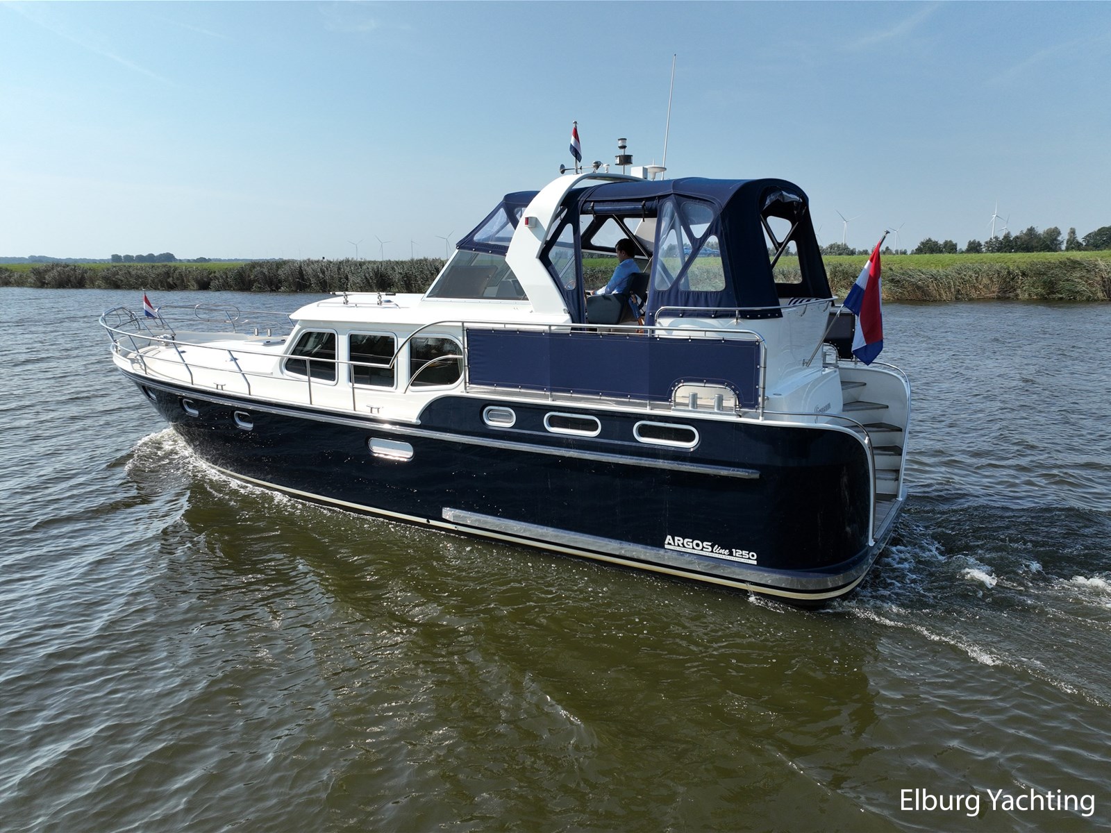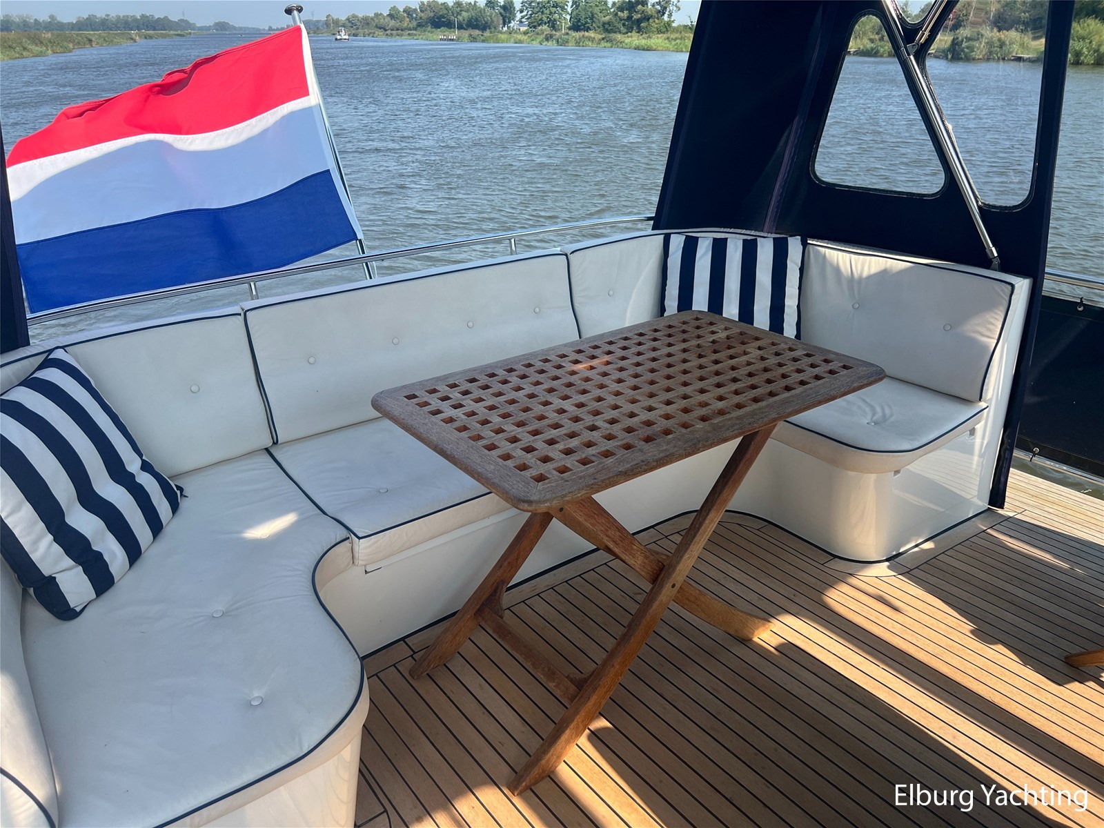 Deze Argos Line 12.50 wordt gekenmerkt door haar grote leefruimte zowel aan dek als in het interieur. Het schip heeft een ruime u bank op het achterdek met een comfortabele zit. De tent is over het gehele achterdek afsluitbaar zodat er ook met minder weer comfortabel buiten gezeten kan worden in combinatie met de uitblaasopeningen van de verwarming. De ramen in de tent zijn in 2024 vervangen. Daarnaast beschikt het schip over twee zeer ruime luie trappen naar het achterdek wat het zwemmen of op en afstappen erg vergemakkelijkt. Binnen is het schip uitgerust met een volwaardige salon, dinette en twee riante hutten met een vrijstaand bed en een frans bed. Verder wordt dit schip geleverd met o.a: r.v.s. bolders, ruime gangboorden, 2 x uitsparing in reling voor gemakkelijk afstappen, separate r.v.s. trap om vanuit de reling op laaggelegen steiger te komen, dubbele r.v.s. reling rondom, klapbare beugel, stalen gangboorden, overzichtelijk dashboard, ruim opgezet interieur, 3 x ruitenwissers, verlaagbare tafel in dinette voor extra te creëren slaapmogelijkheid, dubbel glas, vanaf boven de waterlijn volledig geisoleerd, raam in spiegel eigenaarshut, muggenhorren, separate douche, dubbele dynamo. Voor vragen en/of het maken van een afspraak bent u 7 dagen per week van harte welkom bij Elburg Yachting.
