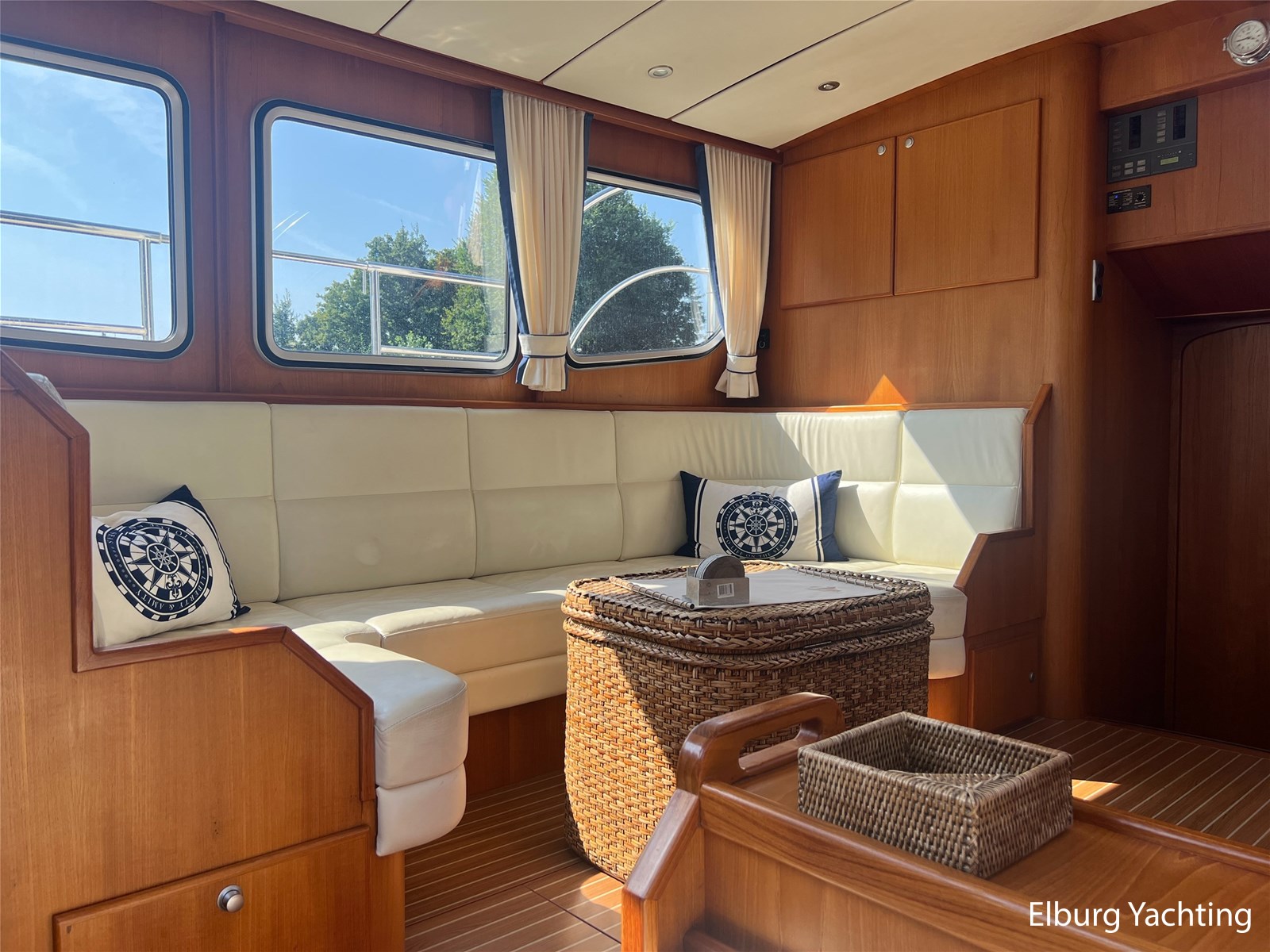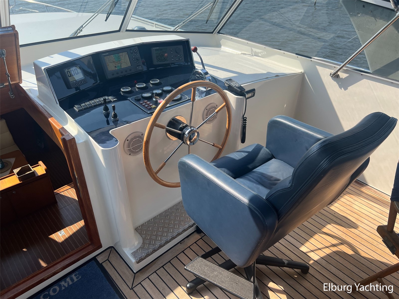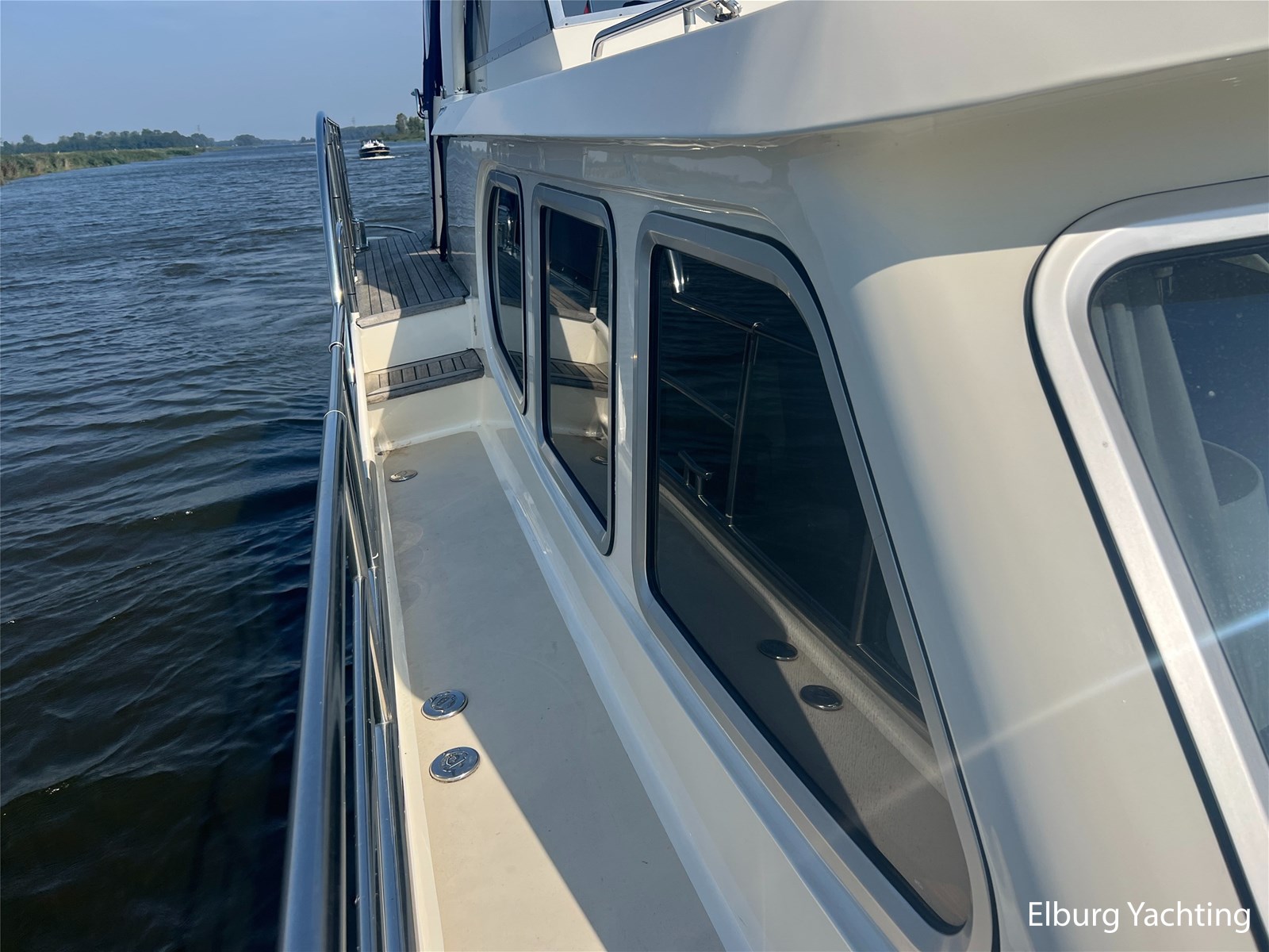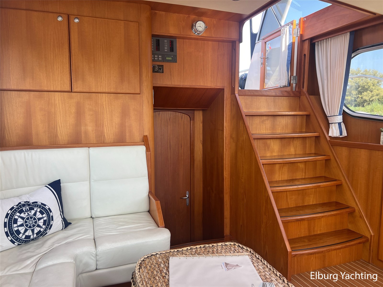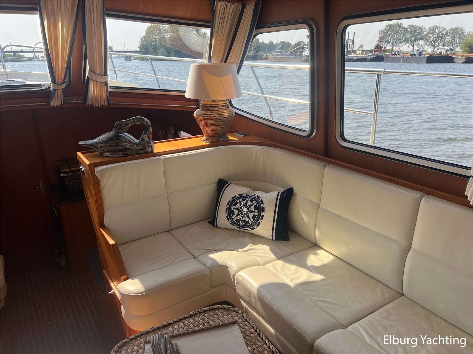Deze Argos Line 12.50 wordt gekenmerkt door haar grote leefruimte zowel aan dek als in het interieur. Het schip heeft een ruime u bank op het achterdek met een comfortabele zit. De tent is over het gehele achterdek afsluitbaar zodat er ook met minder weer comfortabel buiten gezeten kan worden in combinatie met de uitblaasopeningen van de verwarming. De ramen in de tent zijn in 2024 vervangen. Daarnaast beschikt het schip over twee zeer ruime luie trappen naar het achterdek wat het zwemmen of op en afstappen erg vergemakkelijkt. Binnen is het schip uitgerust met een volwaardige salon, dinette en twee riante hutten met een vrijstaand bed en een frans bed. Verder wordt dit schip geleverd met o.a: r.v.s. bolders, ruime gangboorden, 2 x uitsparing in reling voor gemakkelijk afstappen, separate r.v.s. trap om vanuit de reling op laaggelegen steiger te komen, dubbele r.v.s. reling rondom, klapbare beugel, stalen gangboorden, overzichtelijk dashboard, ruim opgezet interieur, 3 x ruitenwissers, verlaagbare tafel in dinette voor extra te creëren slaapmogelijkheid, dubbel glas, vanaf boven de waterlijn volledig geisoleerd, raam in spiegel eigenaarshut, muggenhorren, separate douche, dubbele dynamo. Voor vragen en/of het maken van een afspraak bent u 7 dagen per week van harte welkom bij Elburg Yachting.