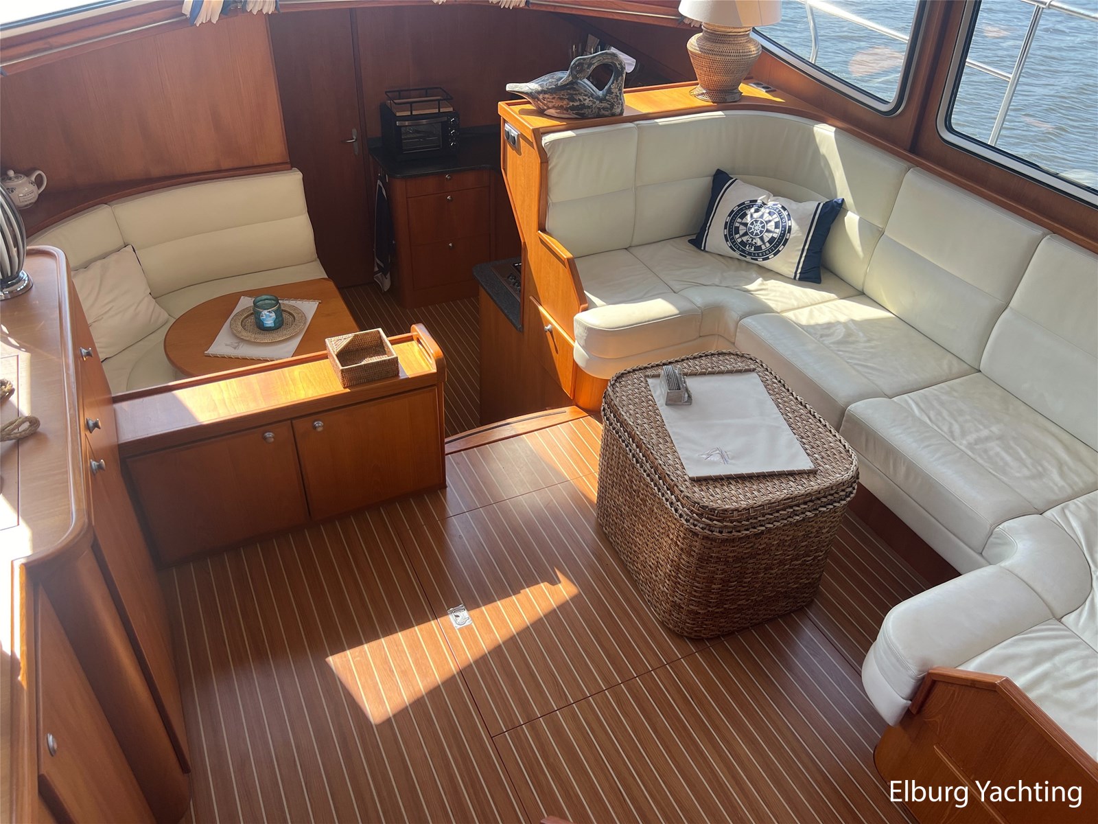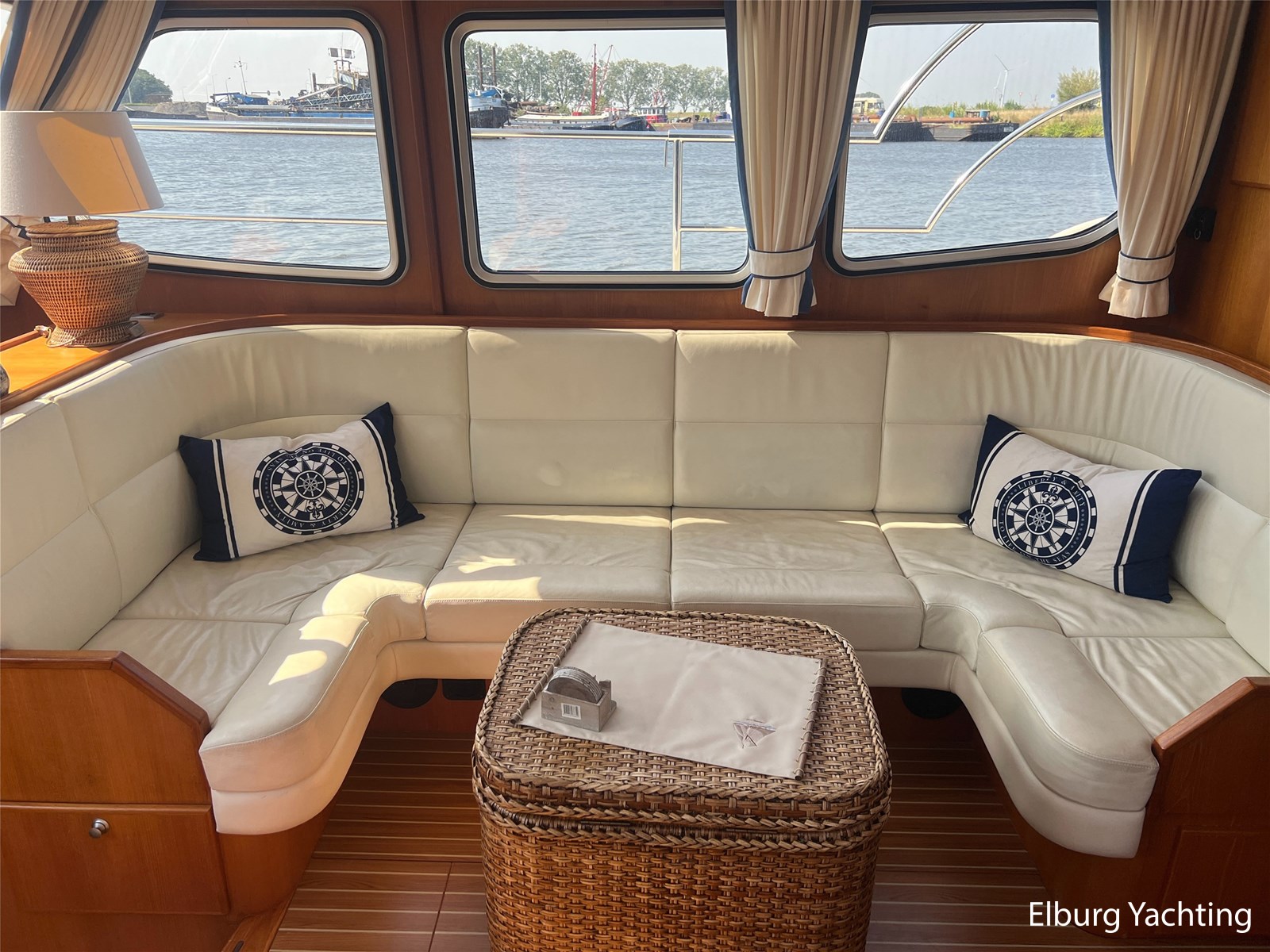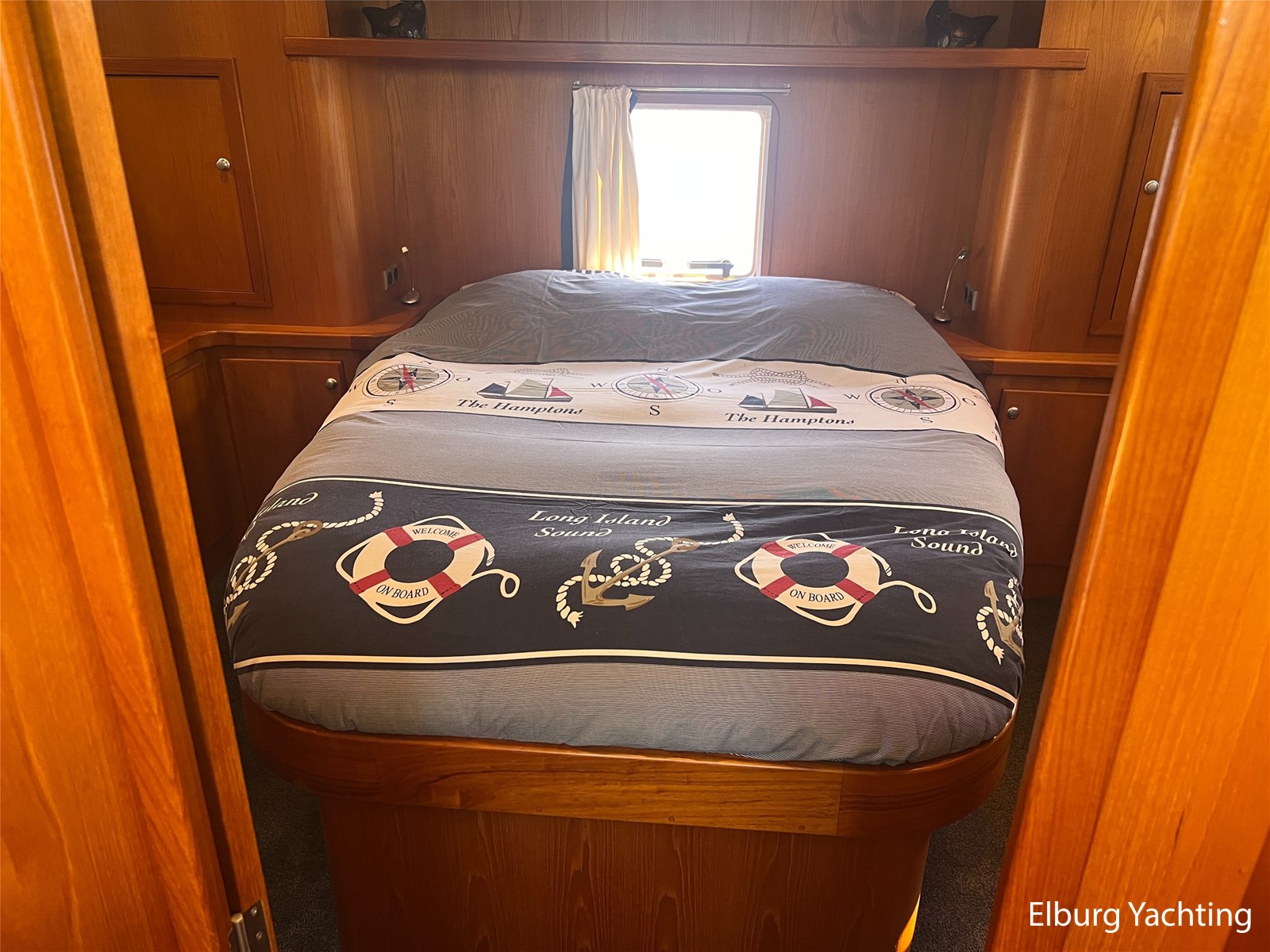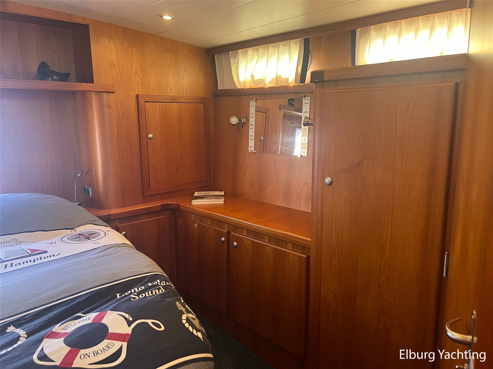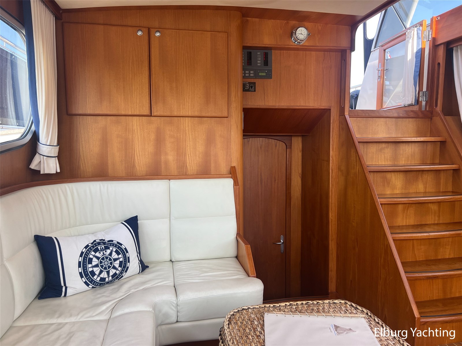 Deze Argos Line 12.50 wordt gekenmerkt door haar grote leefruimte zowel aan dek als in het interieur. Het schip heeft een ruime u bank op het achterdek met een comfortabele zit. De tent is over het gehele achterdek afsluitbaar zodat er ook met minder weer comfortabel buiten gezeten kan worden in combinatie met de uitblaasopeningen van de verwarming. De ramen in de tent zijn in 2024 vervangen. Daarnaast beschikt het schip over twee zeer ruime luie trappen naar het achterdek wat het zwemmen of op en afstappen erg vergemakkelijkt. Binnen is het schip uitgerust met een volwaardige salon, dinette en twee riante hutten met een vrijstaand bed en een frans bed. Verder wordt dit schip geleverd met o.a: r.v.s. bolders, ruime gangboorden, 2 x uitsparing in reling voor gemakkelijk afstappen, separate r.v.s. trap om vanuit de reling op laaggelegen steiger te komen, dubbele r.v.s. reling rondom, klapbare beugel, stalen gangboorden, overzichtelijk dashboard, ruim opgezet interieur, 3 x ruitenwissers, verlaagbare tafel in dinette voor extra te creëren slaapmogelijkheid, dubbel glas, vanaf boven de waterlijn volledig geisoleerd, raam in spiegel eigenaarshut, muggenhorren, separate douche, dubbele dynamo. Voor vragen en/of het maken van een afspraak bent u 7 dagen per week van harte welkom bij Elburg Yachting.