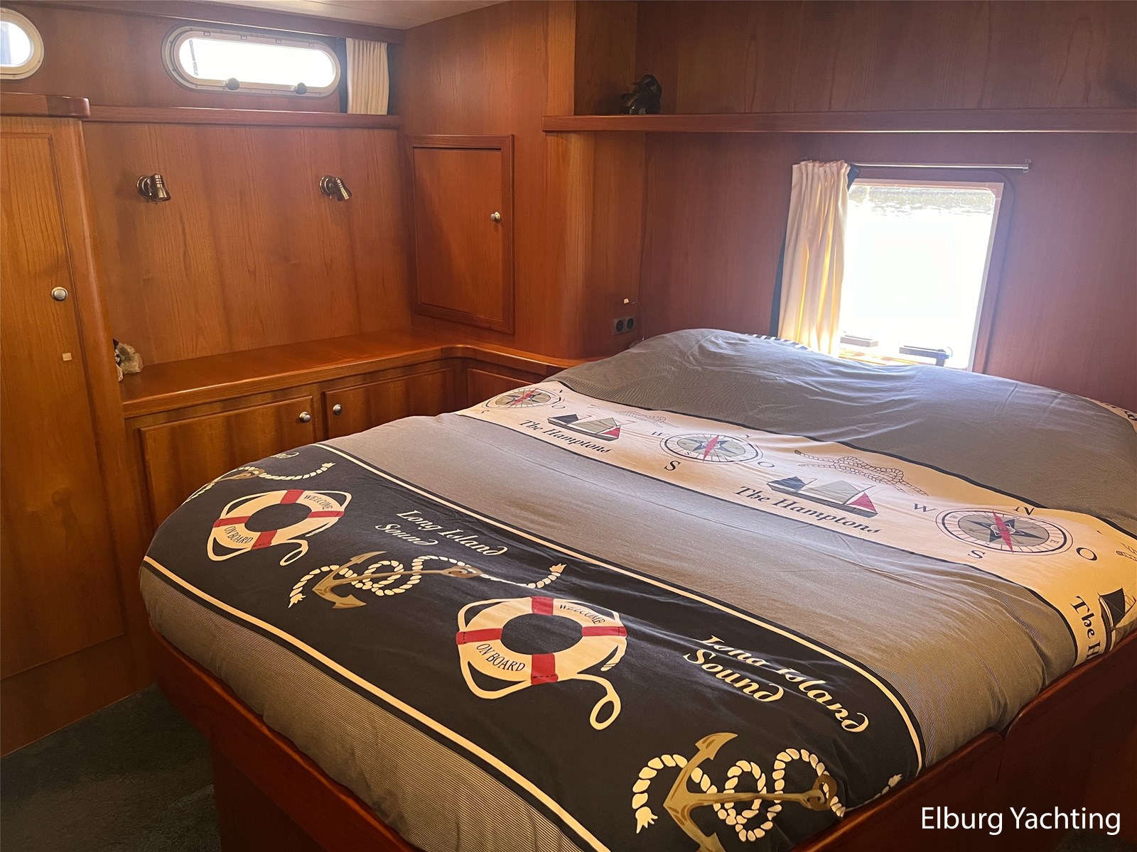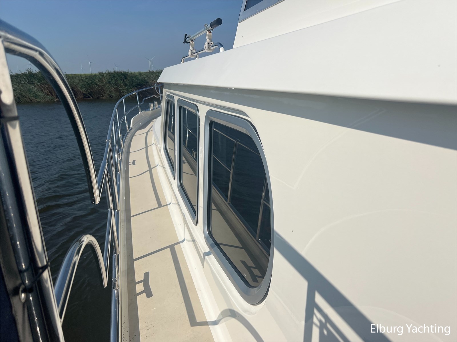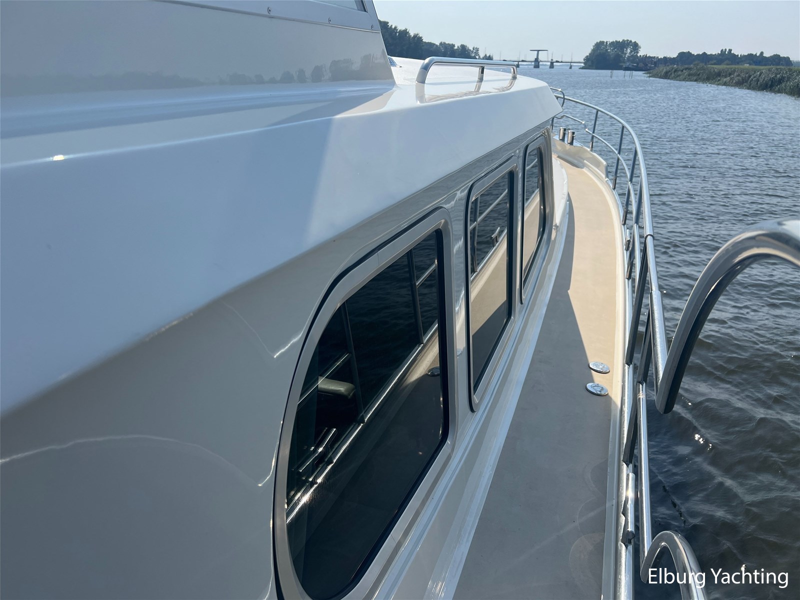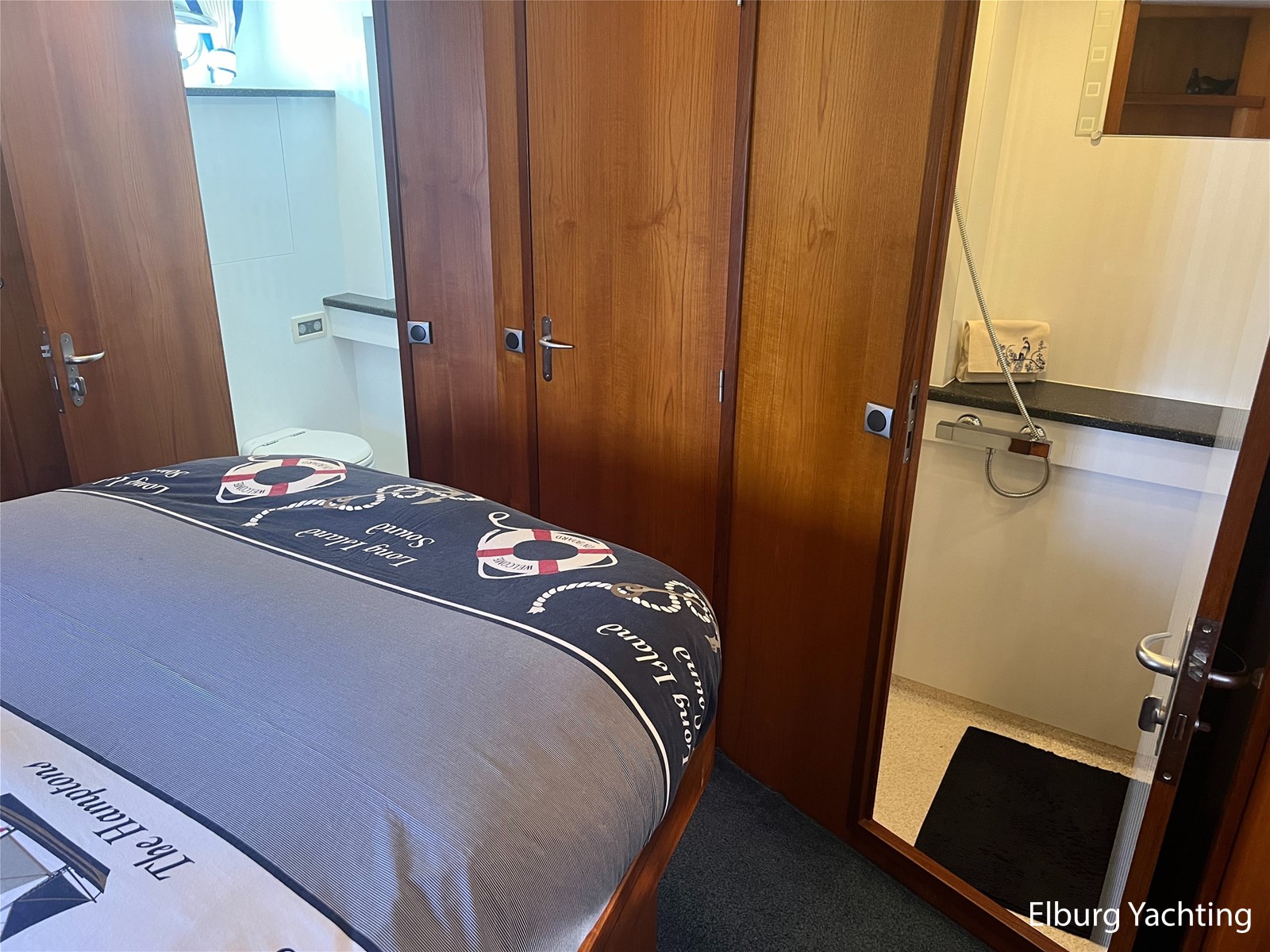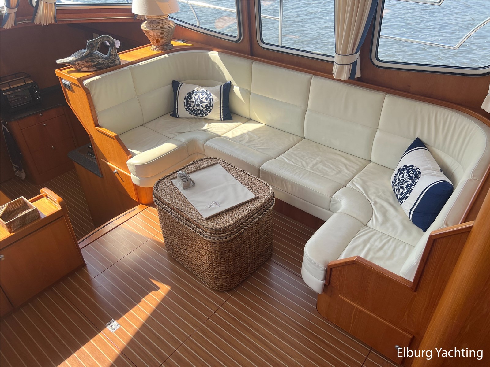 Deze Argos Line 12.50 wordt gekenmerkt door haar grote leefruimte zowel aan dek als in het interieur. Het schip heeft een ruime u bank op het achterdek met een comfortabele zit. De tent is over het gehele achterdek afsluitbaar zodat er ook met minder weer comfortabel buiten gezeten kan worden in combinatie met de uitblaasopeningen van de verwarming. De ramen in de tent zijn in 2024 vervangen. Daarnaast beschikt het schip over twee zeer ruime luie trappen naar het achterdek wat het zwemmen of op en afstappen erg vergemakkelijkt. Binnen is het schip uitgerust met een volwaardige salon, dinette en twee riante hutten met een vrijstaand bed en een frans bed. Verder wordt dit schip geleverd met o.a: r.v.s. bolders, ruime gangboorden, 2 x uitsparing in reling voor gemakkelijk afstappen, separate r.v.s. trap om vanuit de reling op laaggelegen steiger te komen, dubbele r.v.s. reling rondom, klapbare beugel, stalen gangboorden, overzichtelijk dashboard, ruim opgezet interieur, 3 x ruitenwissers, verlaagbare tafel in dinette voor extra te creëren slaapmogelijkheid, dubbel glas, vanaf boven de waterlijn volledig geisoleerd, raam in spiegel eigenaarshut, muggenhorren, separate douche, dubbele dynamo. Voor vragen en/of het maken van een afspraak bent u 7 dagen per week van harte welkom bij Elburg Yachting.