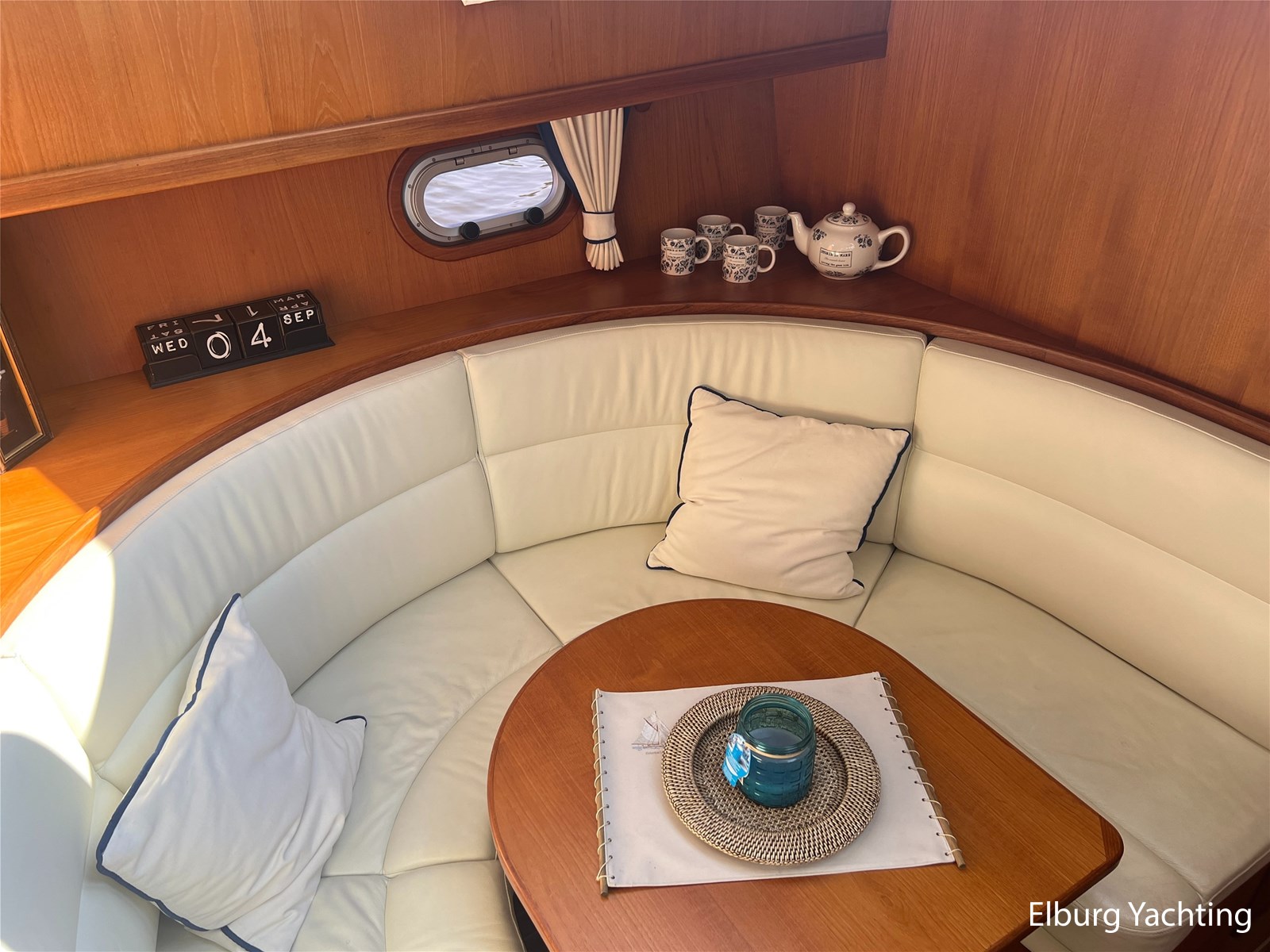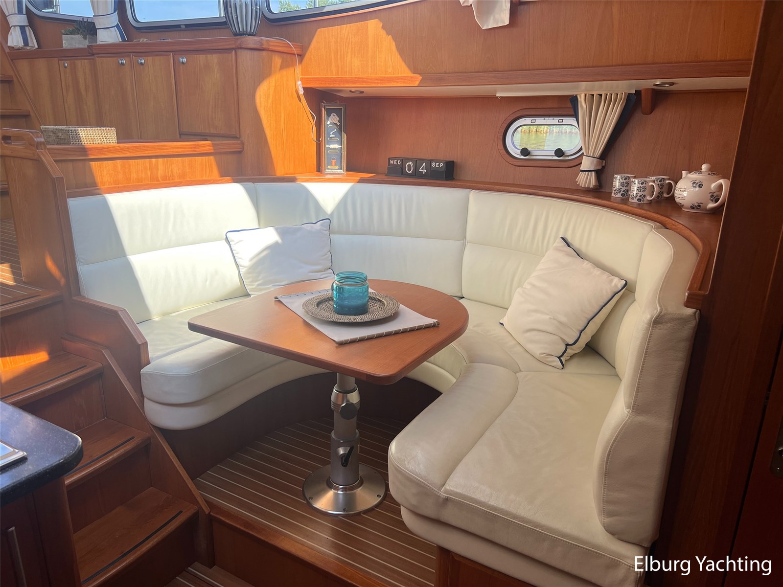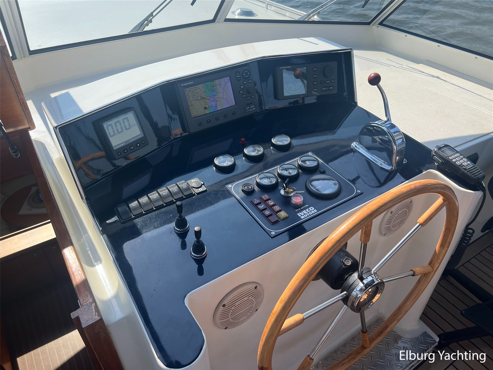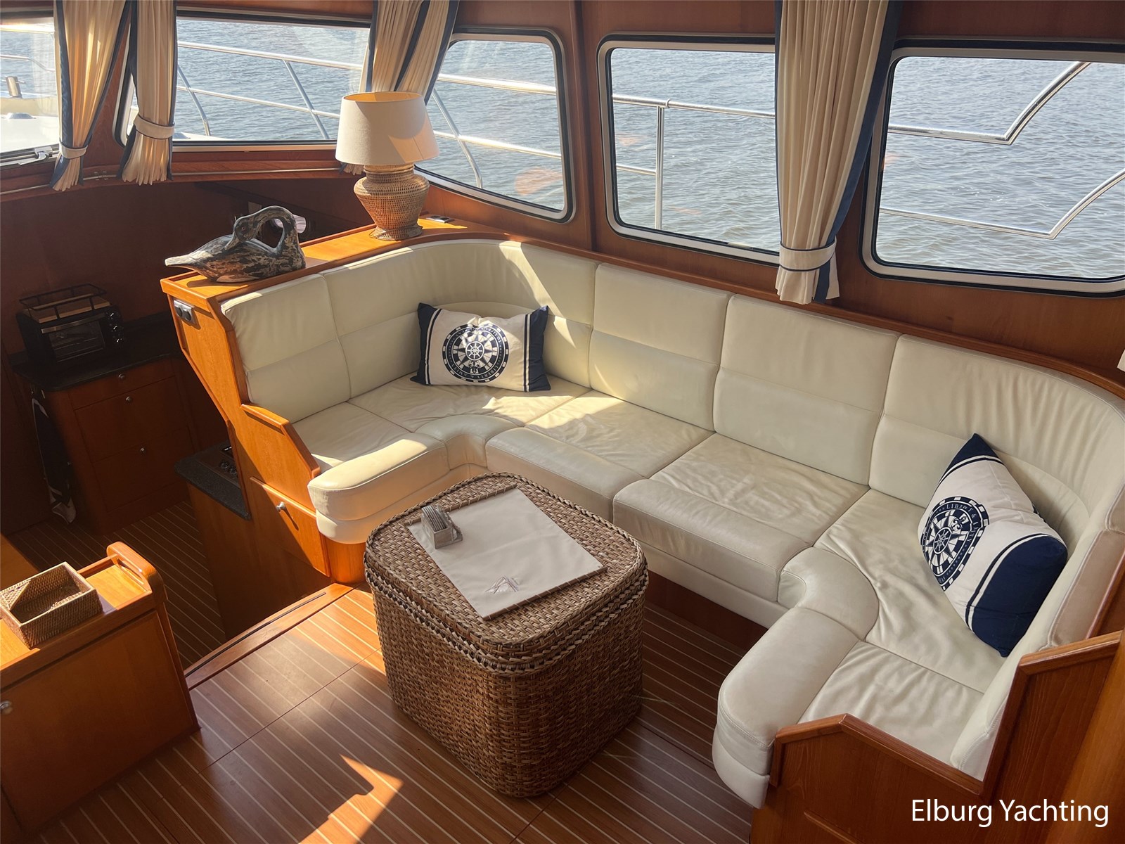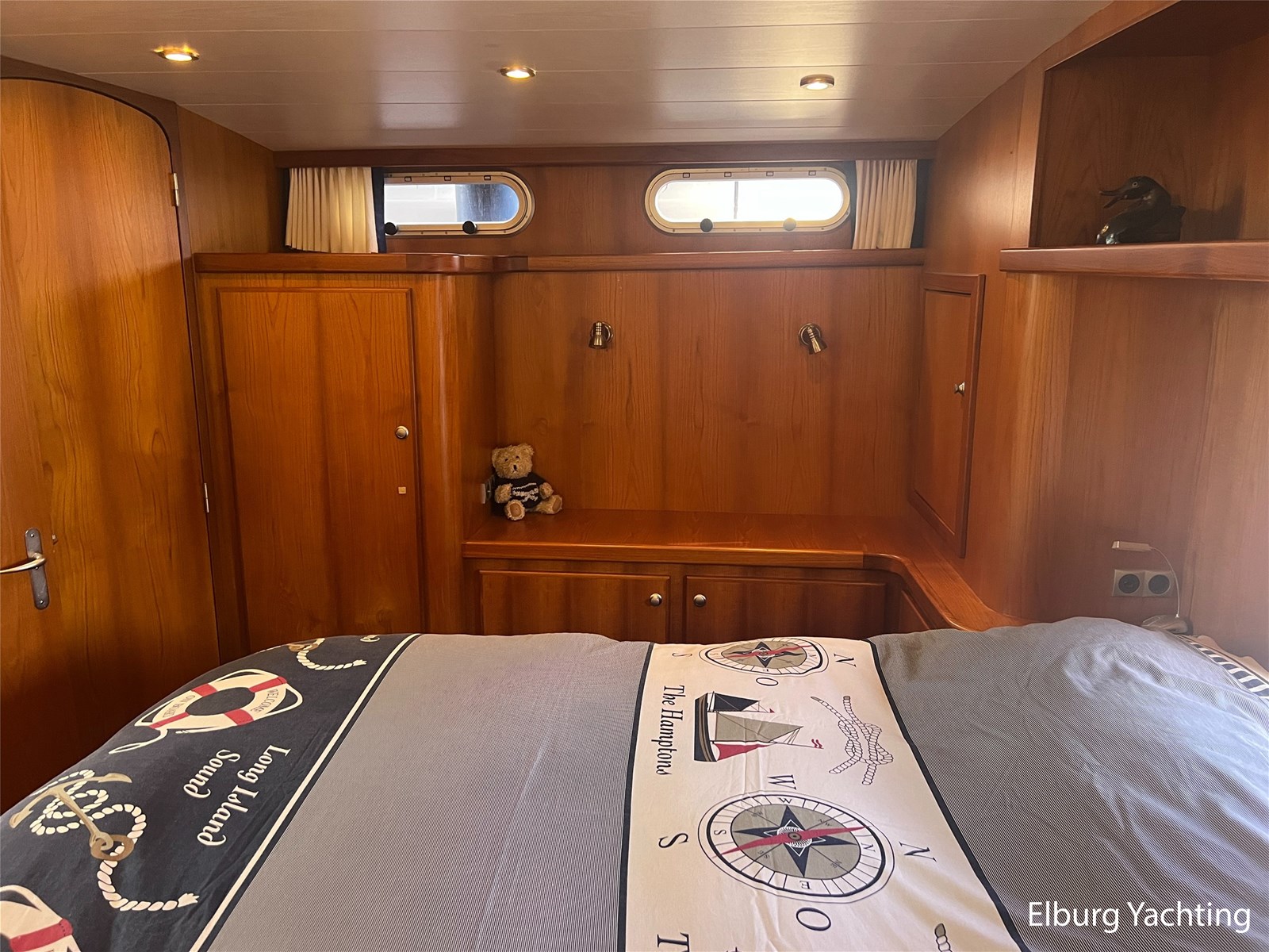 Deze Argos Line 12.50 wordt gekenmerkt door haar grote leefruimte zowel aan dek als in het interieur. Het schip heeft een ruime u bank op het achterdek met een comfortabele zit. De tent is over het gehele achterdek afsluitbaar zodat er ook met minder weer comfortabel buiten gezeten kan worden in combinatie met de uitblaasopeningen van de verwarming. De ramen in de tent zijn in 2024 vervangen. Daarnaast beschikt het schip over twee zeer ruime luie trappen naar het achterdek wat het zwemmen of op en afstappen erg vergemakkelijkt. Binnen is het schip uitgerust met een volwaardige salon, dinette en twee riante hutten met een vrijstaand bed en een frans bed. Verder wordt dit schip geleverd met o.a: r.v.s. bolders, ruime gangboorden, 2 x uitsparing in reling voor gemakkelijk afstappen, separate r.v.s. trap om vanuit de reling op laaggelegen steiger te komen, dubbele r.v.s. reling rondom, klapbare beugel, stalen gangboorden, overzichtelijk dashboard, ruim opgezet interieur, 3 x ruitenwissers, verlaagbare tafel in dinette voor extra te creëren slaapmogelijkheid, dubbel glas, vanaf boven de waterlijn volledig geisoleerd, raam in spiegel eigenaarshut, muggenhorren, separate douche, dubbele dynamo. Voor vragen en/of het maken van een afspraak bent u 7 dagen per week van harte welkom bij Elburg Yachting.