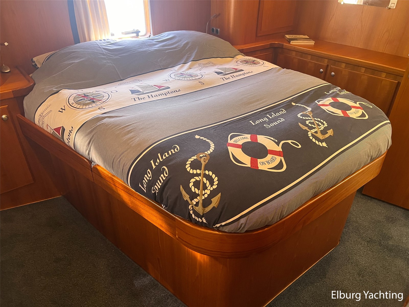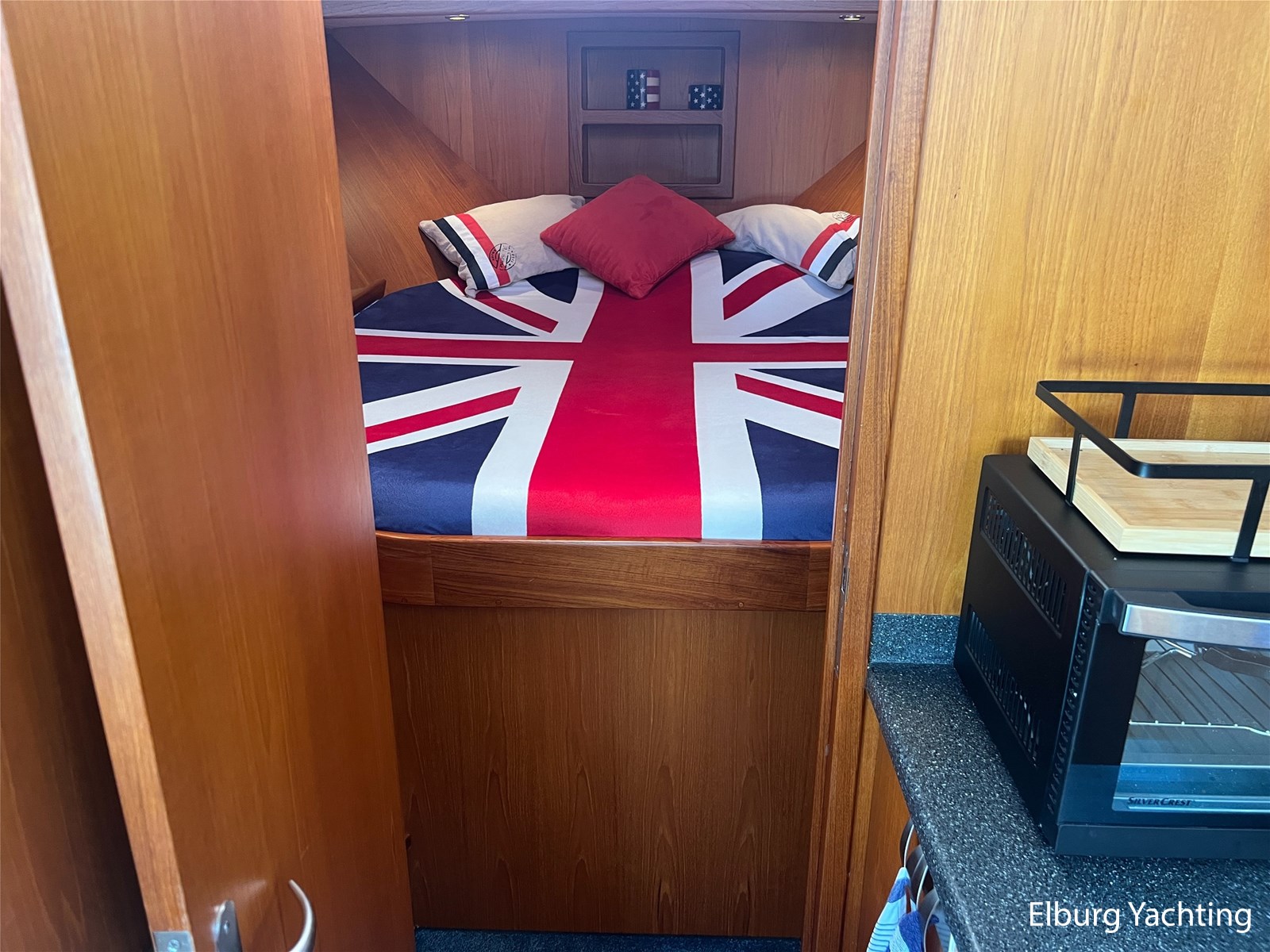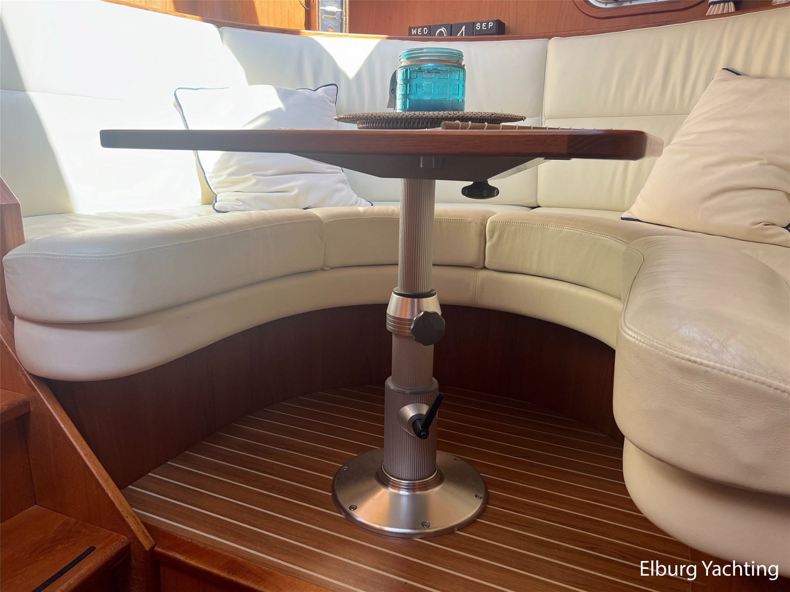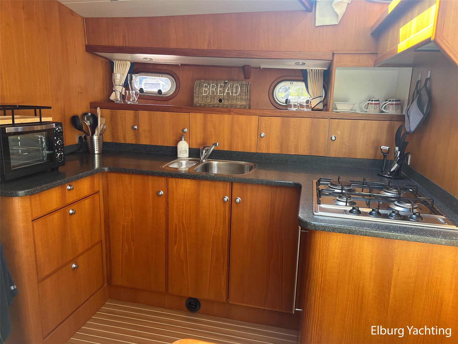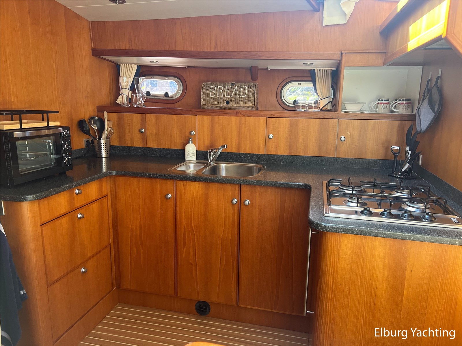 Deze Argos Line 12.50 wordt gekenmerkt door haar grote leefruimte zowel aan dek als in het interieur. Het schip heeft een ruime u bank op het achterdek met een comfortabele zit. De tent is over het gehele achterdek afsluitbaar zodat er ook met minder weer comfortabel buiten gezeten kan worden in combinatie met de uitblaasopeningen van de verwarming. De ramen in de tent zijn in 2024 vervangen. Daarnaast beschikt het schip over twee zeer ruime luie trappen naar het achterdek wat het zwemmen of op en afstappen erg vergemakkelijkt. Binnen is het schip uitgerust met een volwaardige salon, dinette en twee riante hutten met een vrijstaand bed en een frans bed. Verder wordt dit schip geleverd met o.a: r.v.s. bolders, ruime gangboorden, 2 x uitsparing in reling voor gemakkelijk afstappen, separate r.v.s. trap om vanuit de reling op laaggelegen steiger te komen, dubbele r.v.s. reling rondom, klapbare beugel, stalen gangboorden, overzichtelijk dashboard, ruim opgezet interieur, 3 x ruitenwissers, verlaagbare tafel in dinette voor extra te creëren slaapmogelijkheid, dubbel glas, vanaf boven de waterlijn volledig geisoleerd, raam in spiegel eigenaarshut, muggenhorren, separate douche, dubbele dynamo. Voor vragen en/of het maken van een afspraak bent u 7 dagen per week van harte welkom bij Elburg Yachting.