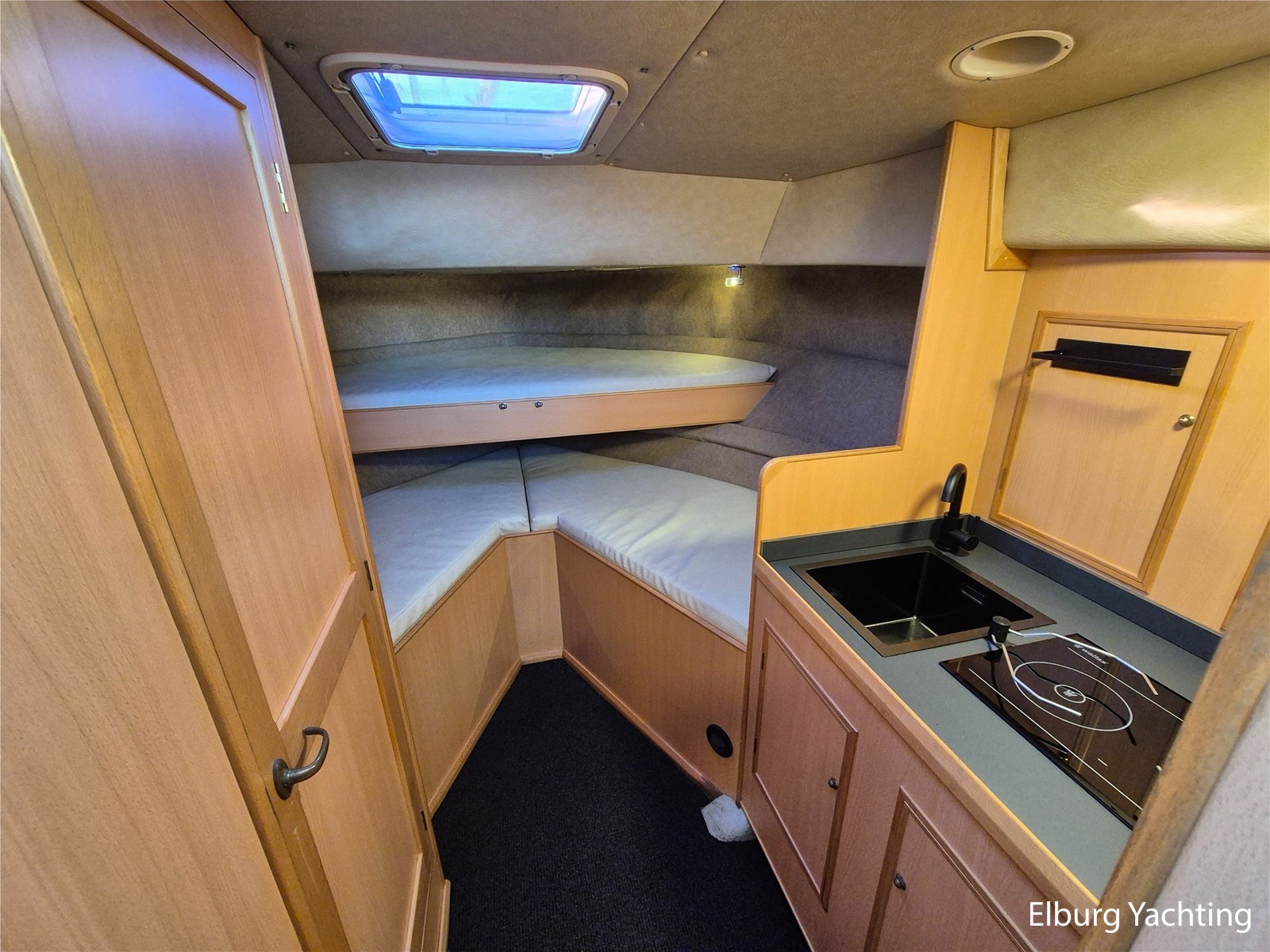 Deze stoere en zeer sportief uitgeruste Cygnus is uitermate geschikt voor sportvissen of om gewoon een weekend heerlijk te vertoeven op het water. Daarnaast zou ze commercieel ingezet kunnen worden. Met een reputatie voor kwalitatief hoogstaand vakmanschap en innovatie is Cygnus Marine Boats uitgegroeid tot een vooraanstaande scheepswerf in de maritieme industrie. Het primaire doel van Cygnus Marine Boats is het bouwen van robuuste en betrouwbare schepen die bestand zijn tegen de veeleisende omstandigheden van de open zee. Het bedrijf is gespecialiseerd in het bouwen van commerciële vissersboten, werkboten en patrouillevaartuigen die specifiek zijn afgestemd op de behoeften van hun klanten. Deze schepen staan bekend om hun uitzonderlijke stabiliteit, duurzaamheid en zeewaardigheid, waardoor ze zeer geschikt zijn voor een reeks maritieme operaties. Deze Cygnus is o.a. voorzien van: ruim achterdek, r.v.s bolders, hoge reling, dinette tegenover stuurstand, stuurstand met meevaarbank, keuken is naast het slaapvertrek gesitueerd, welke ruimte biedt voor 3 Volgende vernieuwingen zijn in 2024 uitgevoerd: nieuwe Wallas dieselkachel + dieselkookplaat, koellade, wasbak + kraan, nieuwe reddingsboei, Fusion Bluetooth radio + speakers, navigatieverlichting (alles Led), r.v.s. Rocna anker + r.v.s. boegrol + nieuw achtertouw, Ytech koelboxen, dekwaspomp + drinkwaterpomp, expansievat t.b.v. drinkwater, elektrisch toilet + doorvoeren, landvasten, tankmeter + tankaansluitingen, fenders + hoezen, elektra compleet nagekeken, beide motoren hebben nieuwe filters/olie en onderhoud gehad, staartstukken zijn onderhouden en balgen zijn vernieuwd, beide Duoprop schroeven gericht, geslepen en gebalanceerd en daarna in de coating gezet. Ook zijn er nieuwe anodes geplaatst, romp en opbouw zijn volledig gepoetst en in de glascoating gezet, nieuwe vloerbedekking binnen, nieuwe ledverlichting zowel in kuip als binnen. Kuip is gechilderd in nieuwe polyesthercoating. Dekken zijn opnieuw gecoat met antislipverf. Onderwaterschip is geschuurd en in de antifouling gezet. (facturen aanwezig) Voor vragen en/of het maken van een afspraak bent u 7 dagen per week van harte welkom bij Elburg Yachting.