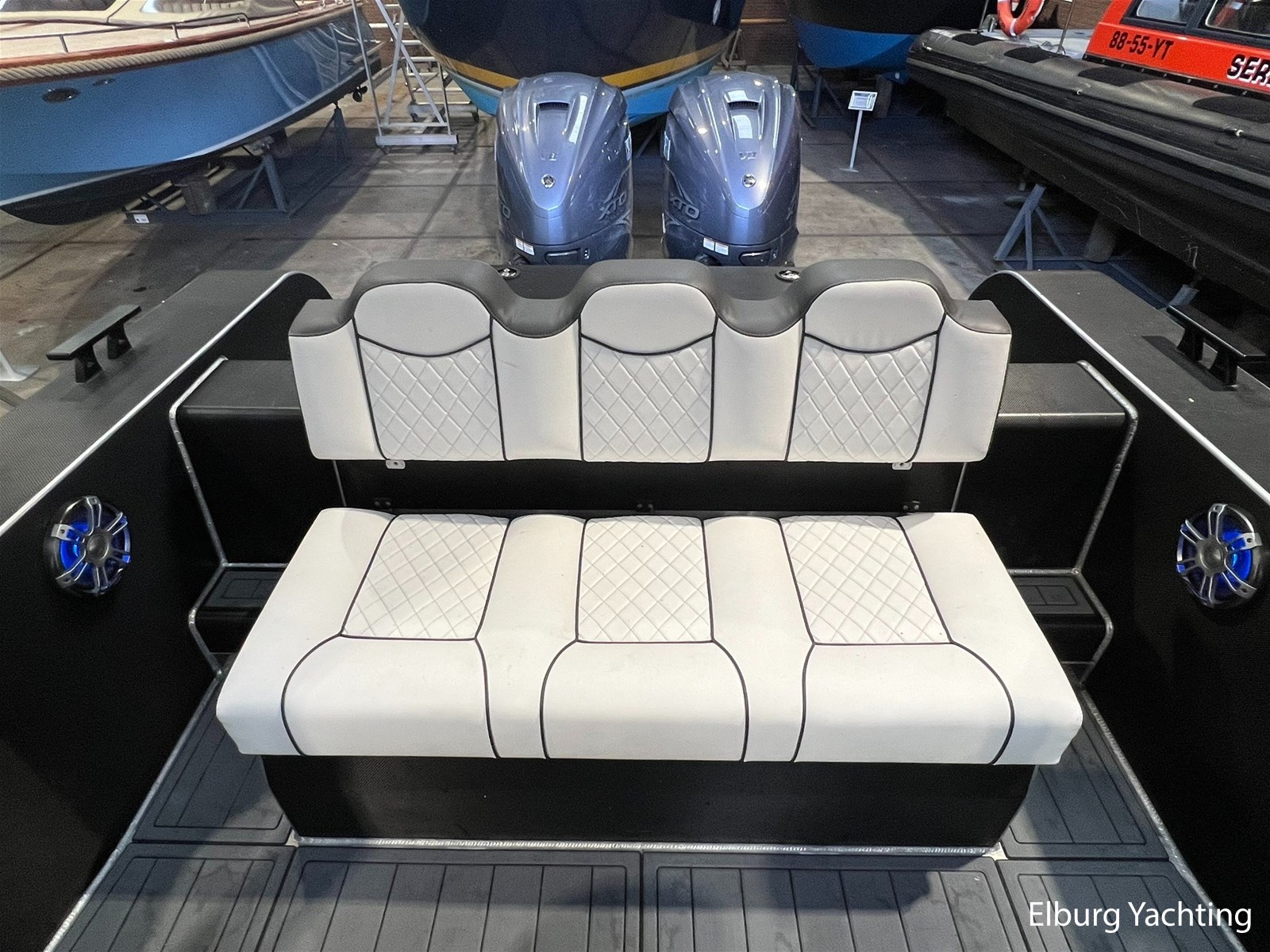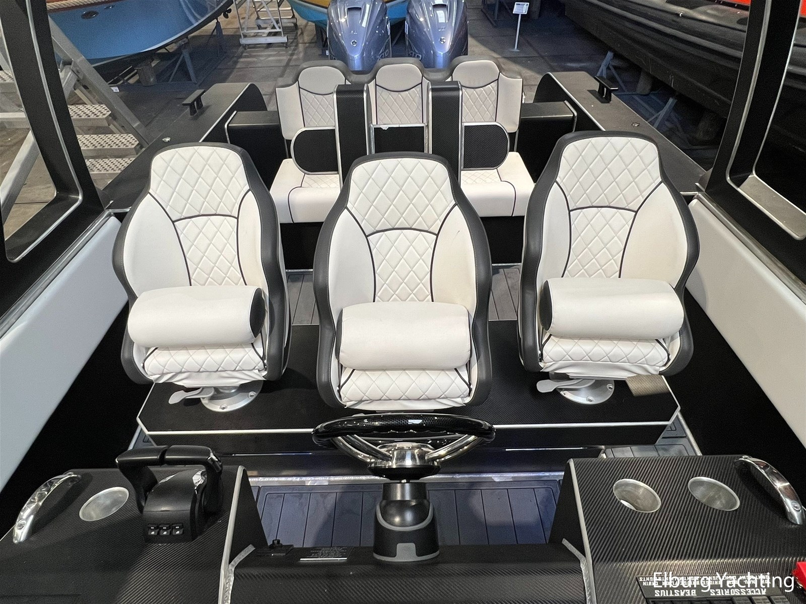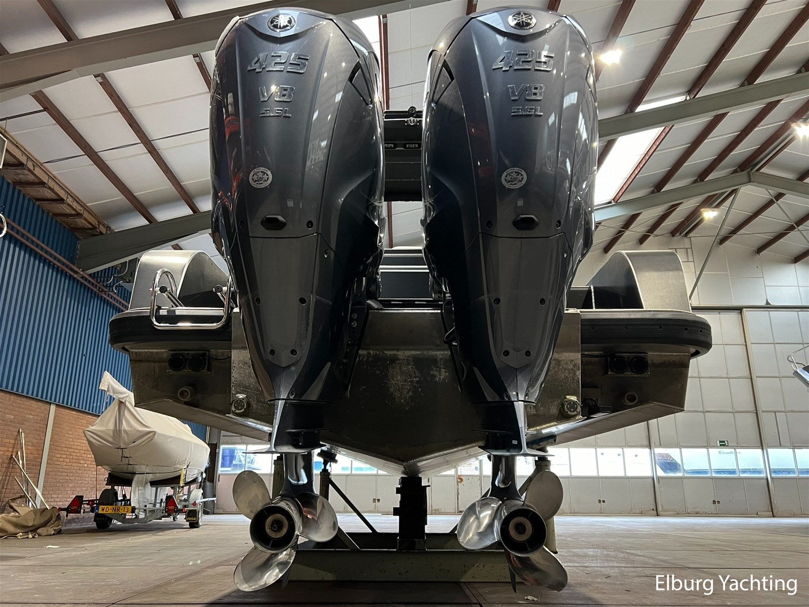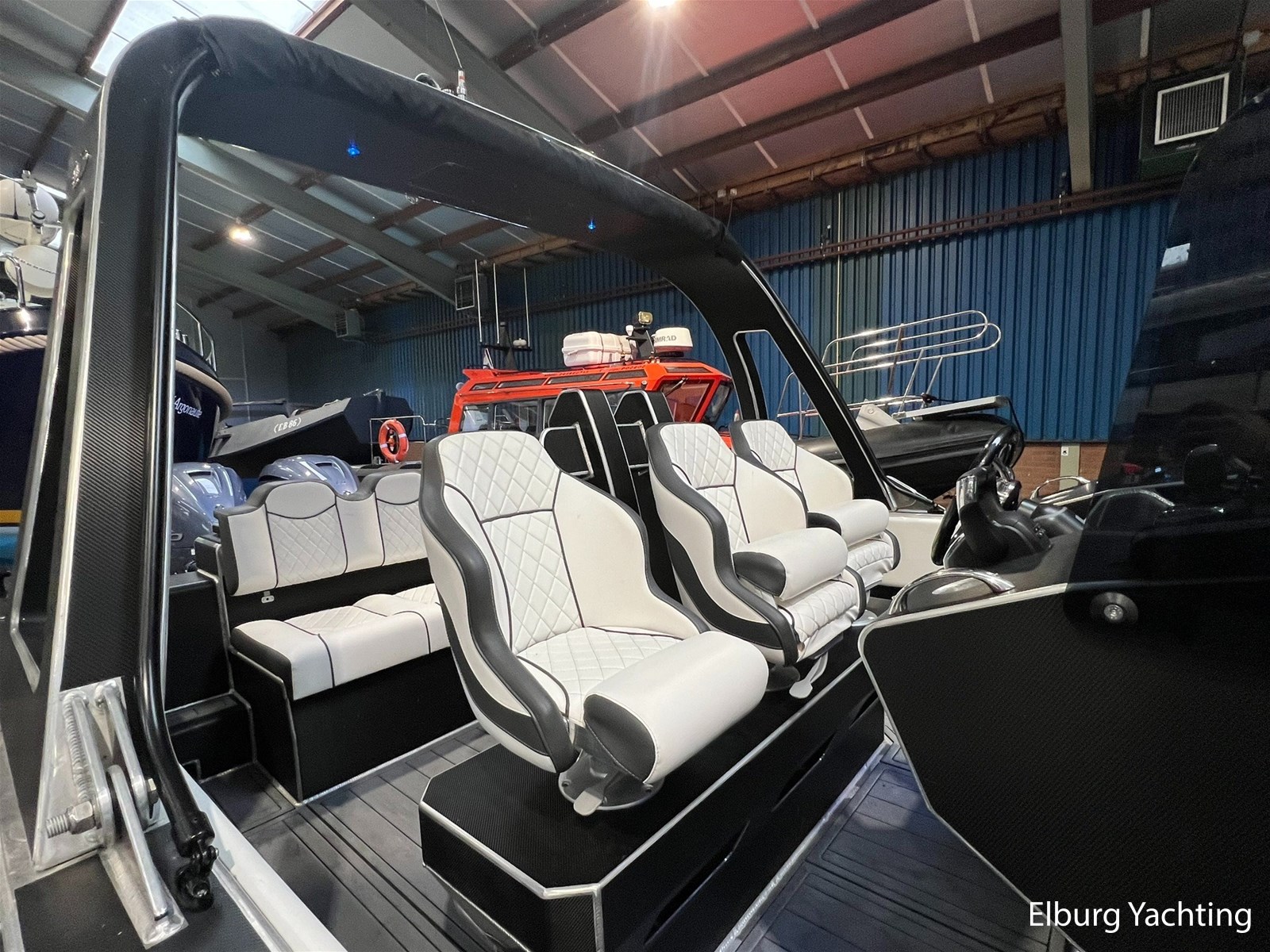 Deze Aluva SuperSport Tender 900 is een unieke snelvarende aluminium tender van de eerste eigenaar. Deze tender heeft slechts 1 seizoen in 2024 gevaren op zoetwater. en is voorzien van twee prachtig klinkende 425 pk Yamaha XF425NSA V8 motoren. Met de combinatie van het aluminium casco en de twee sterke buitenboordmotoren kan de snelheid oplopen tot ca. 100km/u. Deze Aluva SuperSport tender is voorzien van: Inklapbare bimini over stuurstand, 3 x kuipstoelen met wegklapbaar zitgedeelte om staand te kunnen varen, diverse kasten en bakskisten, goede toegang tot de aanwezige techniek aan boord, docking lights in de boeg + schijnwerper in beugel, onderwaterverlichting, Fusion radio in combinatie met 6 x speakers + 1 x subwoofer in kuip met Fusion 2400W versterker, Garmin AIS 800 (Class B), Yamaha boordcomputer met motorinformatie, groot ligbed op in voorschip met voorgevormde zitting, volledige afdektent aanwezig tevens losse sprayhood op te zetten, meerdere 12V aansluitingen, de romp en opbouw zijn deels in carbon gewrapt.