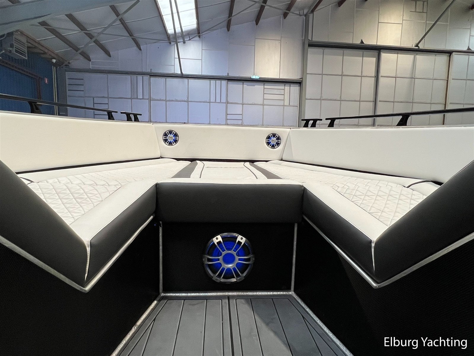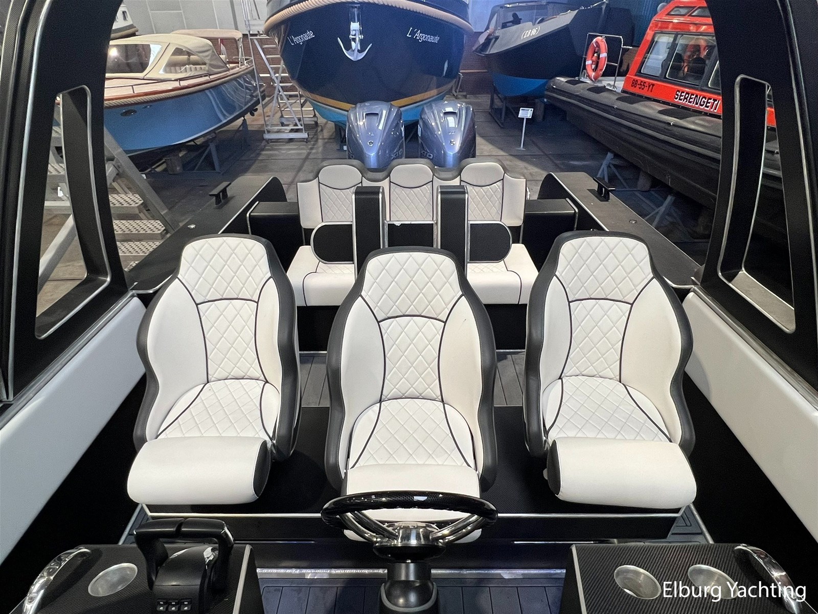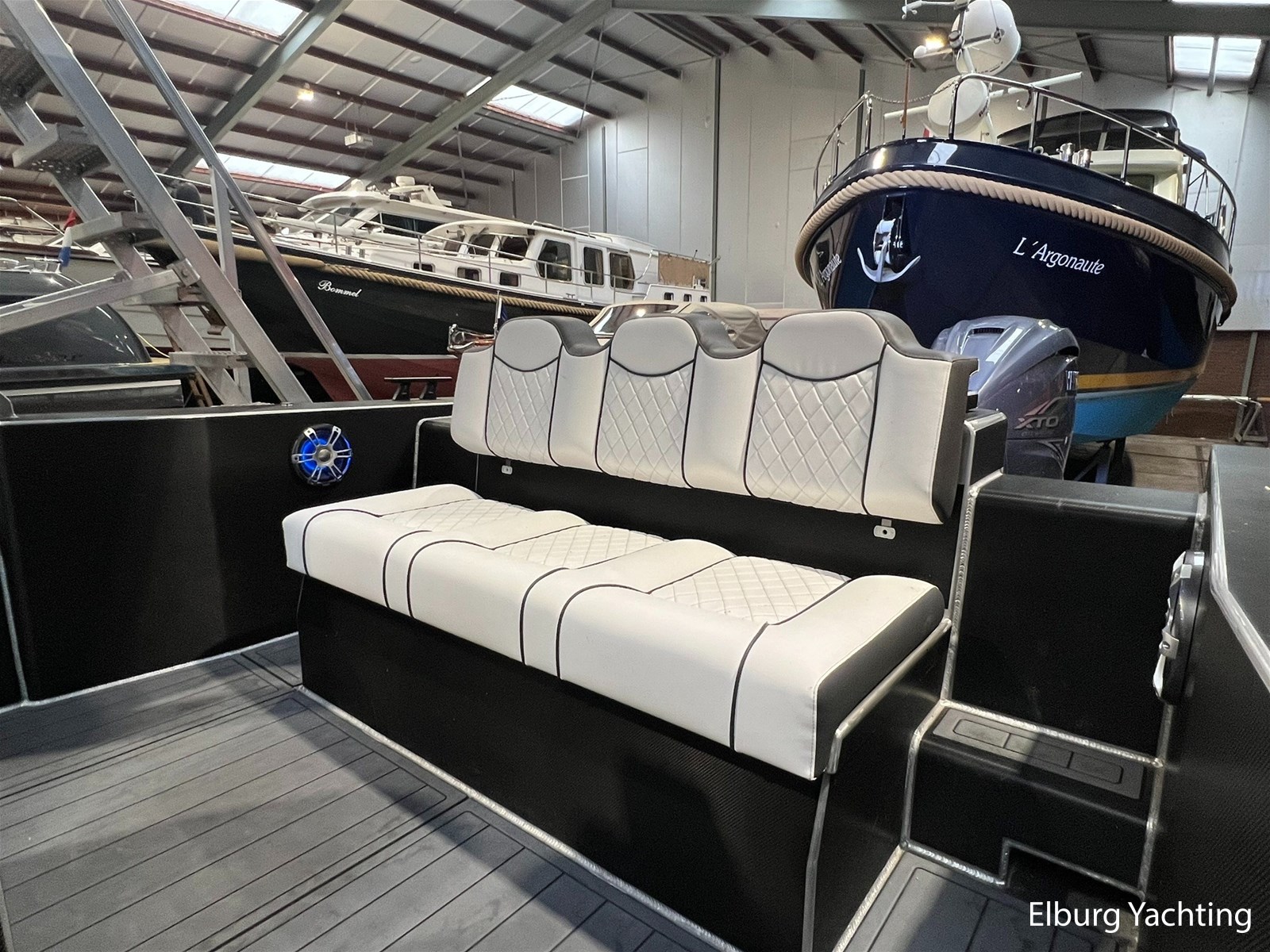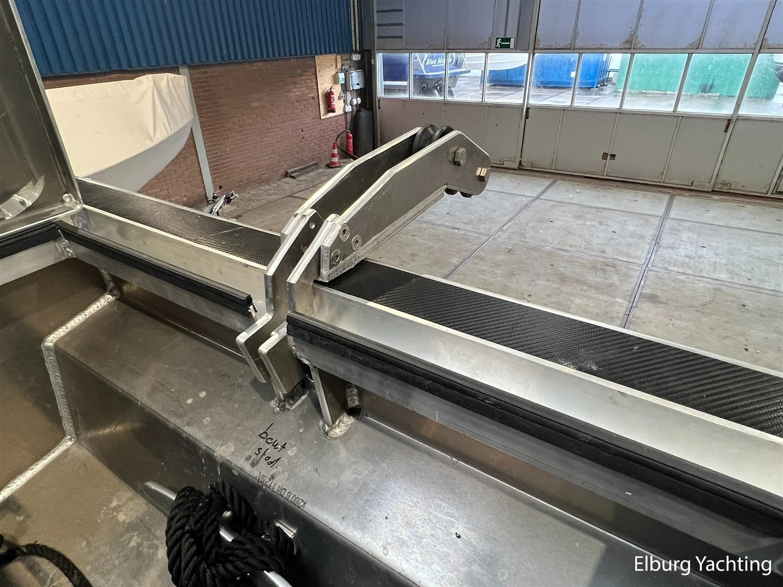Deze Aluva SuperSport Tender 900 is een unieke snelvarende aluminium tender van de eerste eigenaar. Deze tender heeft slechts 1 seizoen in 2024 gevaren op zoetwater. en is voorzien van twee prachtig klinkende 425 pk Yamaha XF425NSA V8 motoren. Met de combinatie van het aluminium casco en de twee sterke buitenboordmotoren kan de snelheid oplopen tot ca. 100km/u. Deze Aluva SuperSport tender is voorzien van: Inklapbare bimini over stuurstand, 3 x kuipstoelen met wegklapbaar zitgedeelte om staand te kunnen varen, diverse kasten en bakskisten, goede toegang tot de aanwezige techniek aan boord, docking lights in de boeg + schijnwerper in beugel, onderwaterverlichting, Fusion radio in combinatie met 6 x speakers + 1 x subwoofer in kuip met Fusion 2400W versterker, Garmin AIS 800 (Class B), Yamaha boordcomputer met motorinformatie, groot ligbed op in voorschip met voorgevormde zitting, volledige afdektent aanwezig tevens losse sprayhood op te zetten, meerdere 12V aansluitingen, de romp en opbouw zijn deels in carbon gewrapt.