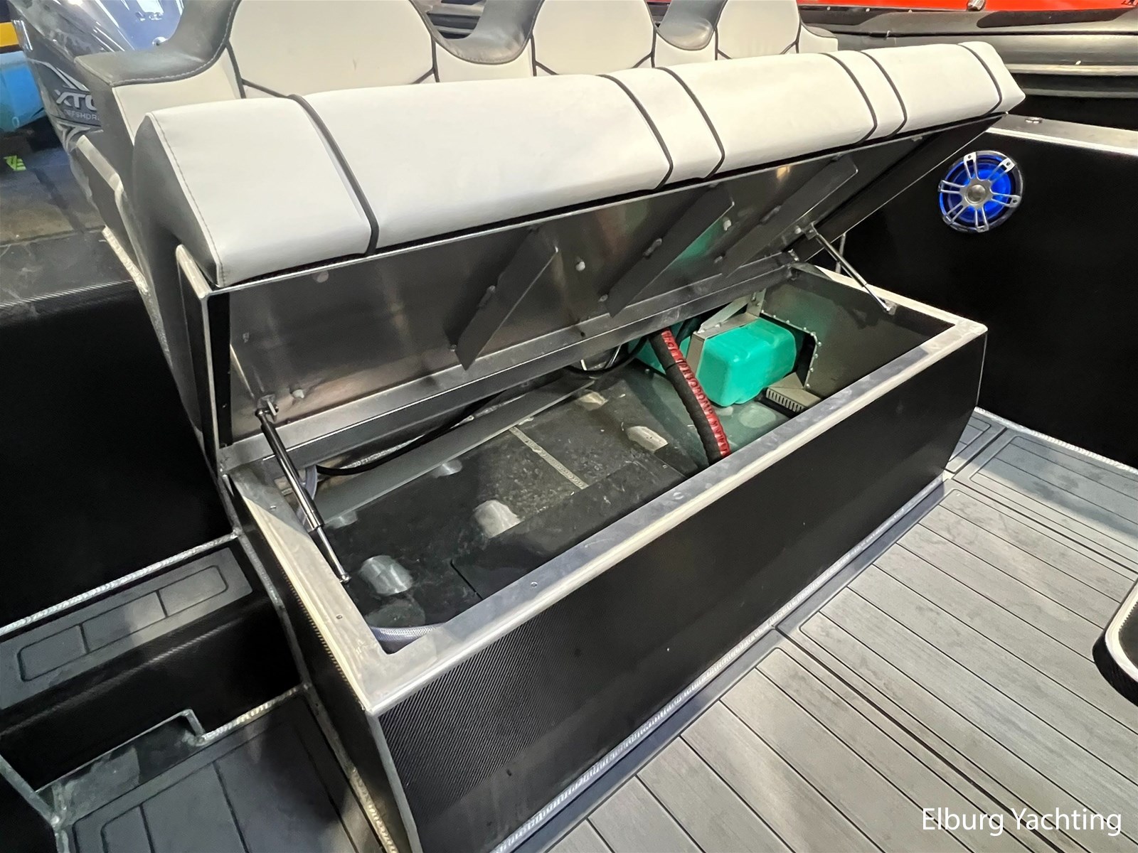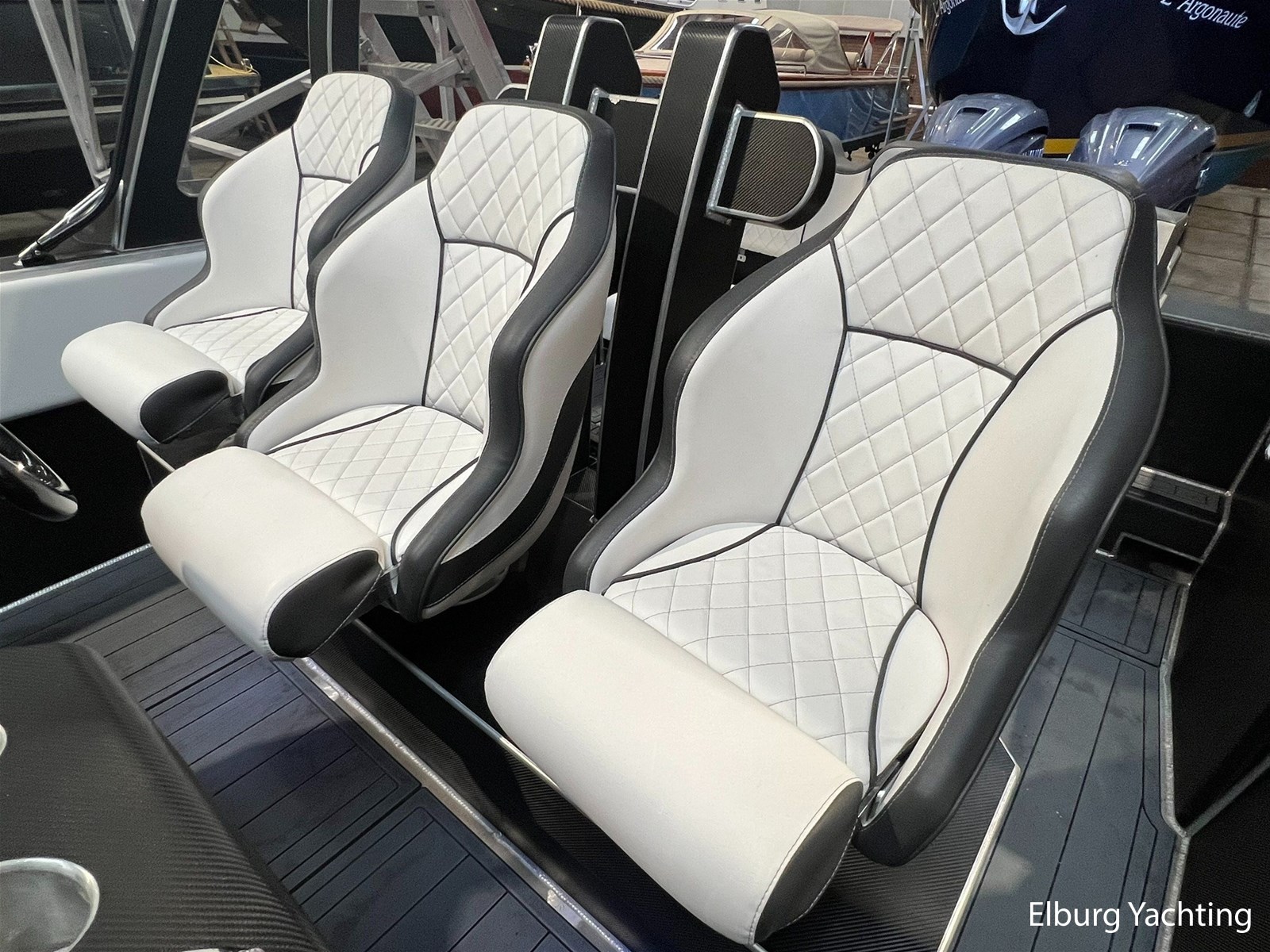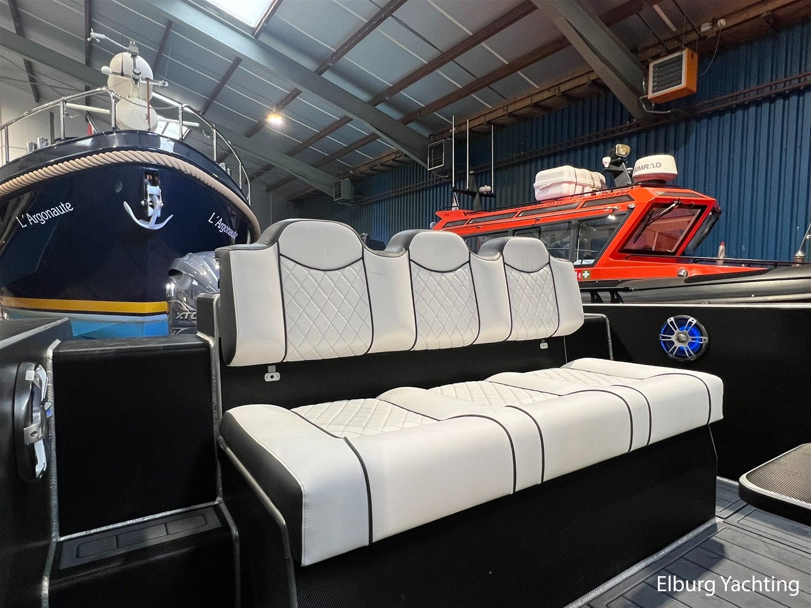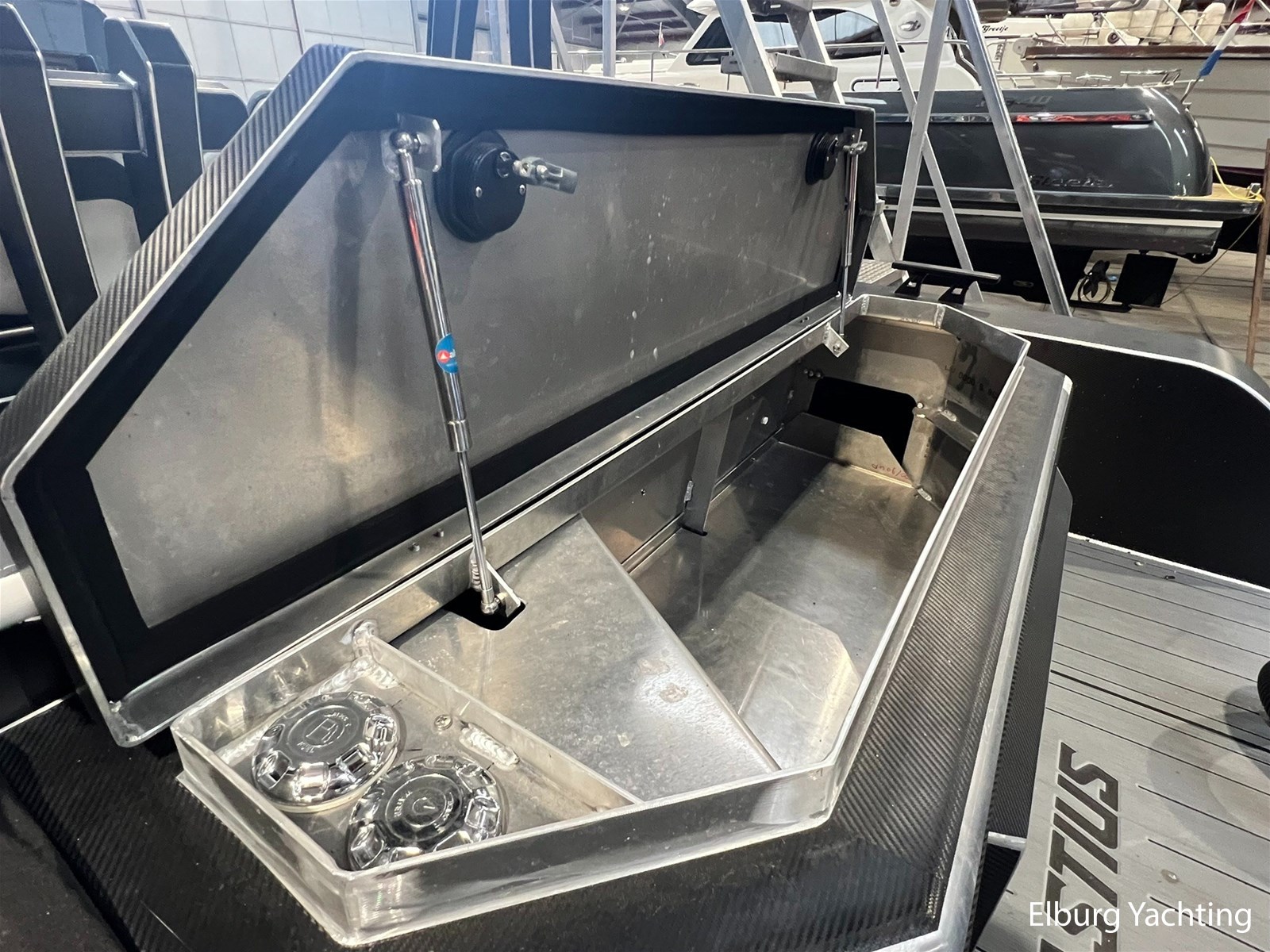 Deze Aluva SuperSport Tender 900 is een unieke snelvarende aluminium tender van de eerste eigenaar. Deze tender heeft slechts 1 seizoen in 2024 gevaren op zoetwater. en is voorzien van twee prachtig klinkende 425 pk Yamaha XF425NSA V8 motoren. Met de combinatie van het aluminium casco en de twee sterke buitenboordmotoren kan de snelheid oplopen tot ca. 100km/u. Deze Aluva SuperSport tender is voorzien van: Inklapbare bimini over stuurstand, 3 x kuipstoelen met wegklapbaar zitgedeelte om staand te kunnen varen, diverse kasten en bakskisten, goede toegang tot de aanwezige techniek aan boord, docking lights in de boeg + schijnwerper in beugel, onderwaterverlichting, Fusion radio in combinatie met 6 x speakers + 1 x subwoofer in kuip met Fusion 2400W versterker, Garmin AIS 800 (Class B), Yamaha boordcomputer met motorinformatie, groot ligbed op in voorschip met voorgevormde zitting, volledige afdektent aanwezig tevens losse sprayhood op te zetten, meerdere 12V aansluitingen, de romp en opbouw zijn deels in carbon gewrapt.