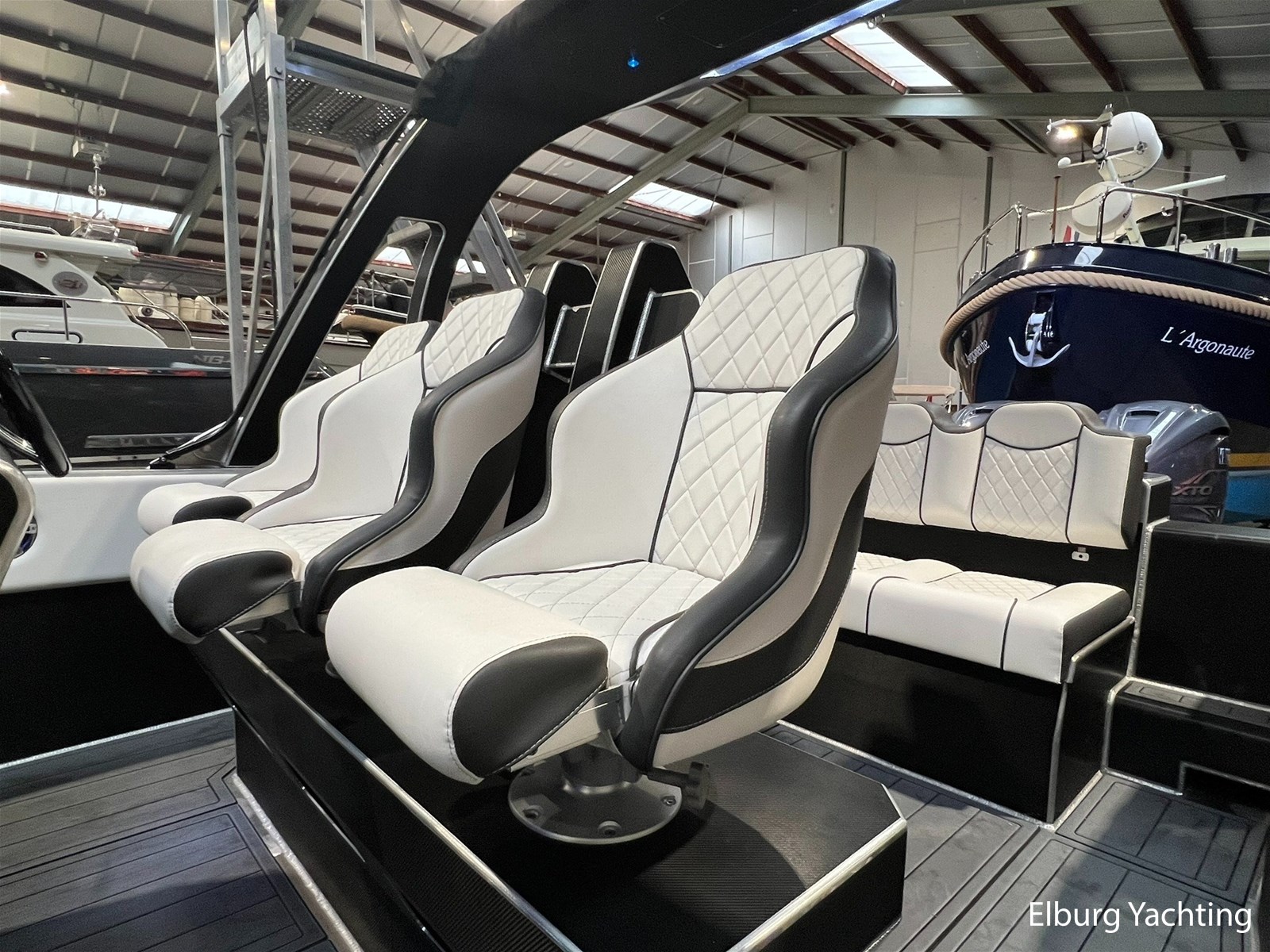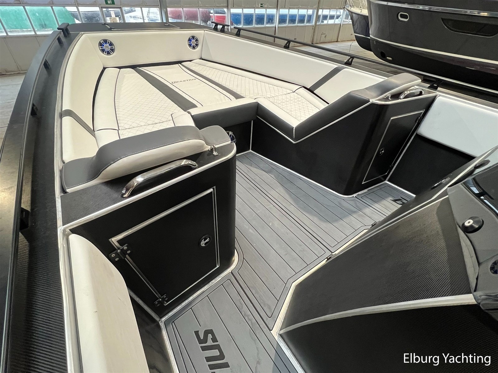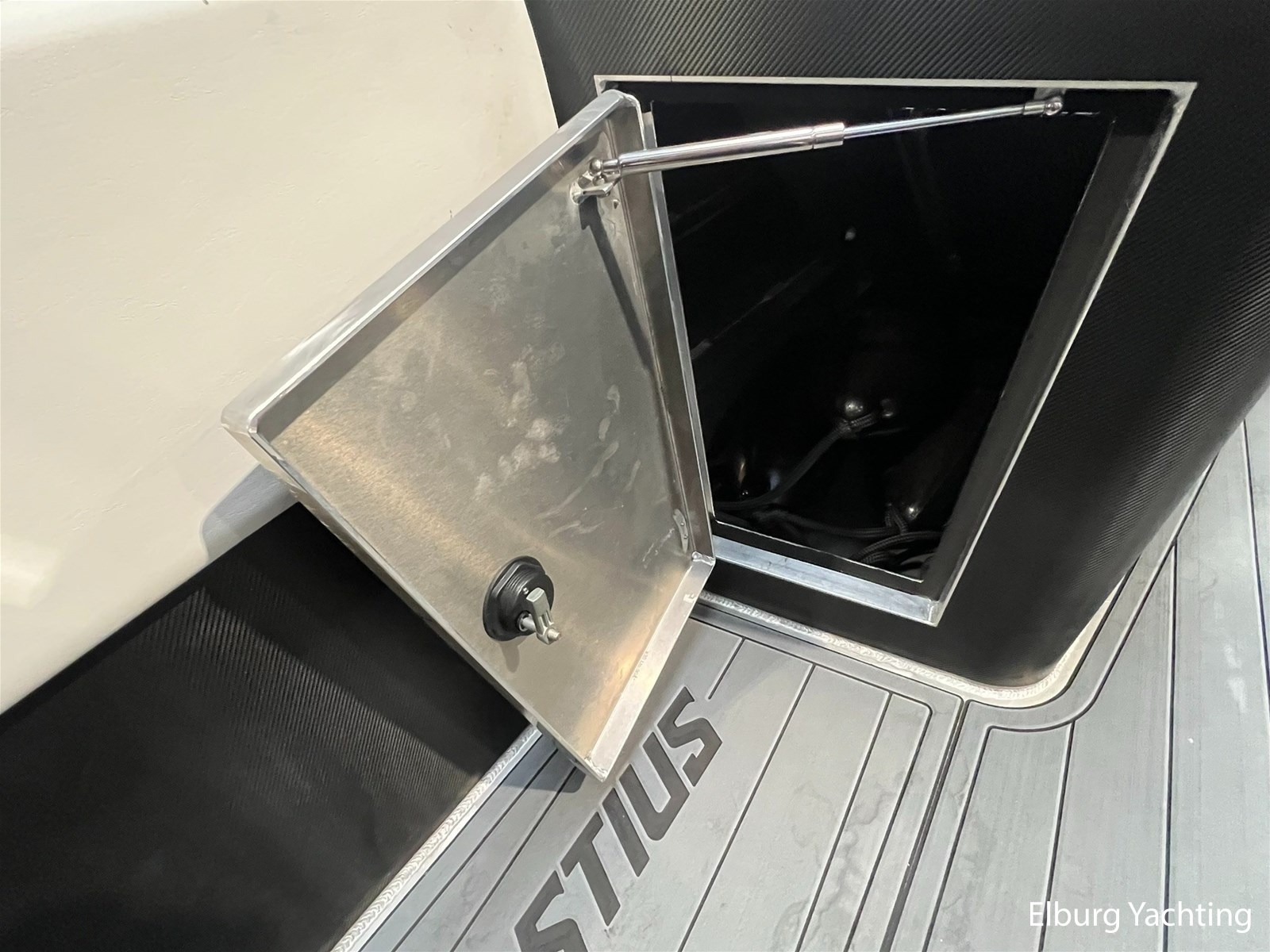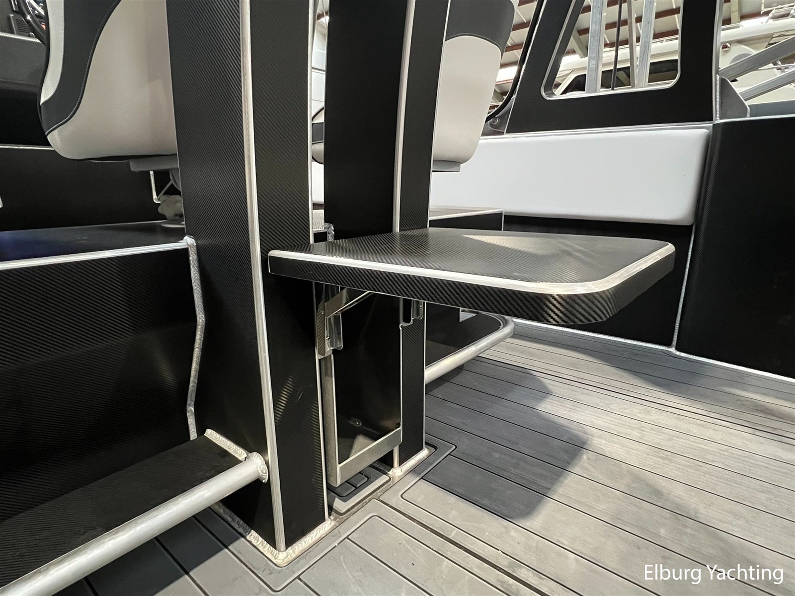 Deze Aluva SuperSport Tender 900 is een unieke snelvarende aluminium tender van de eerste eigenaar. Deze tender heeft slechts 1 seizoen in 2024 gevaren op zoetwater. en is voorzien van twee prachtig klinkende 425 pk Yamaha XF425NSA V8 motoren. Met de combinatie van het aluminium casco en de twee sterke buitenboordmotoren kan de snelheid oplopen tot ca. 100km/u. Deze Aluva SuperSport tender is voorzien van: Inklapbare bimini over stuurstand, 3 x kuipstoelen met wegklapbaar zitgedeelte om staand te kunnen varen, diverse kasten en bakskisten, goede toegang tot de aanwezige techniek aan boord, docking lights in de boeg + schijnwerper in beugel, onderwaterverlichting, Fusion radio in combinatie met 6 x speakers + 1 x subwoofer in kuip met Fusion 2400W versterker, Garmin AIS 800 (Class B), Yamaha boordcomputer met motorinformatie, groot ligbed op in voorschip met voorgevormde zitting, volledige afdektent aanwezig tevens losse sprayhood op te zetten, meerdere 12V aansluitingen, de romp en opbouw zijn deels in carbon gewrapt.