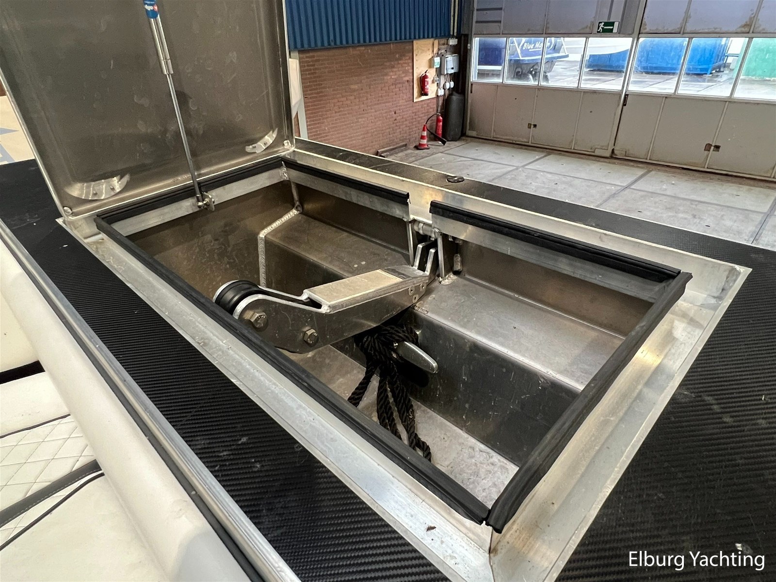 - Geïntegreerd met foam teak + klapbare r.v.s. zwemtrap