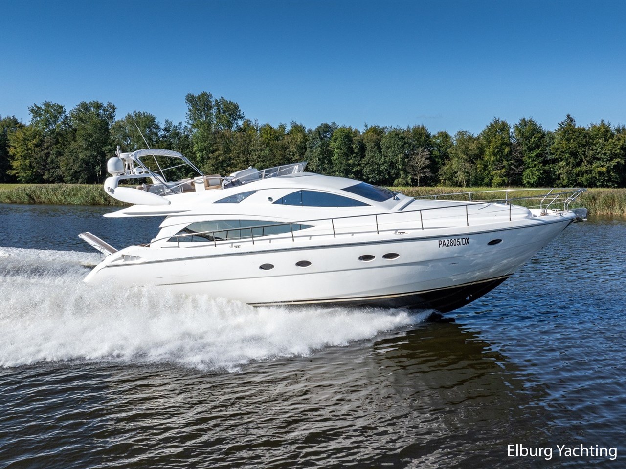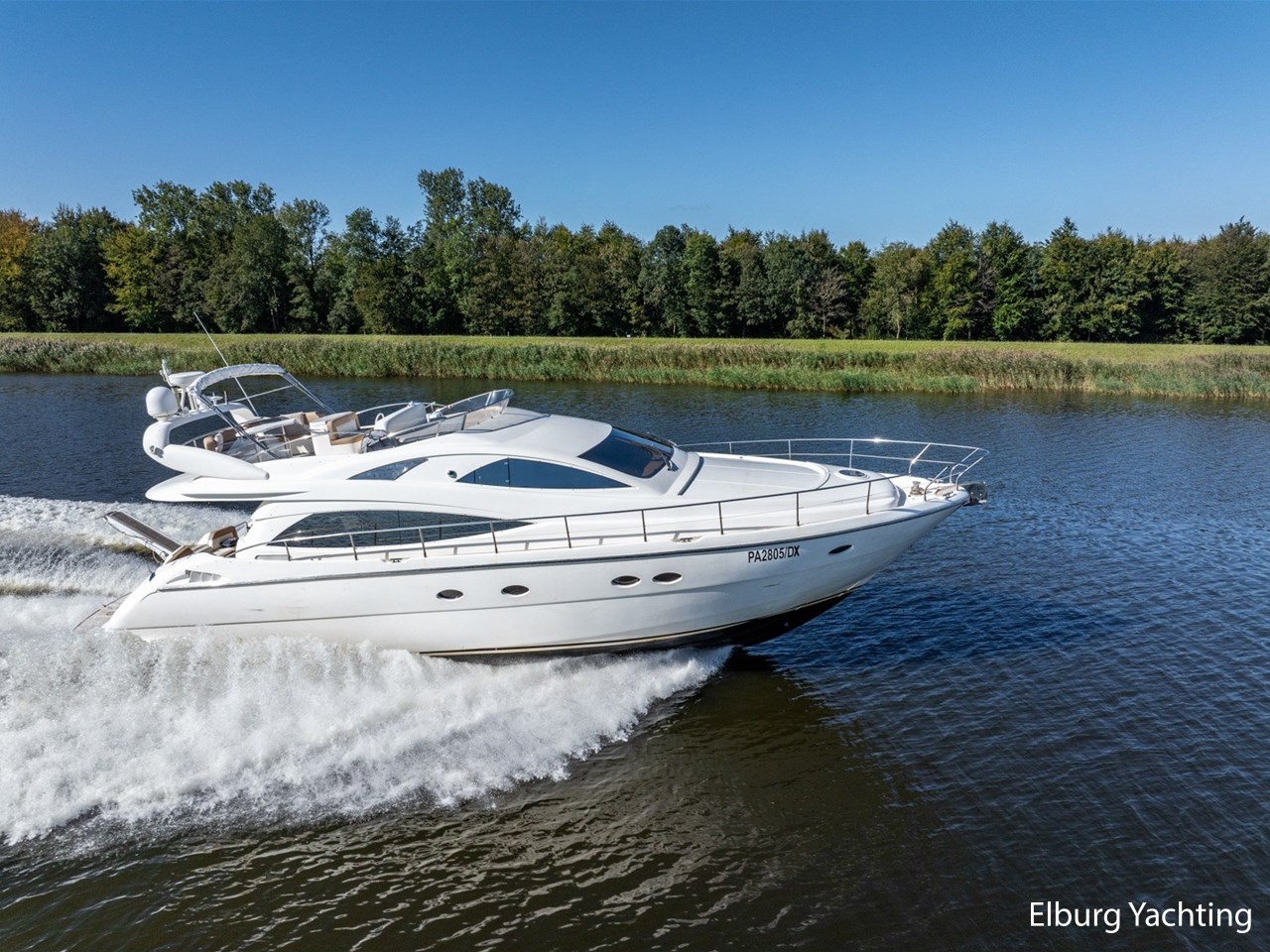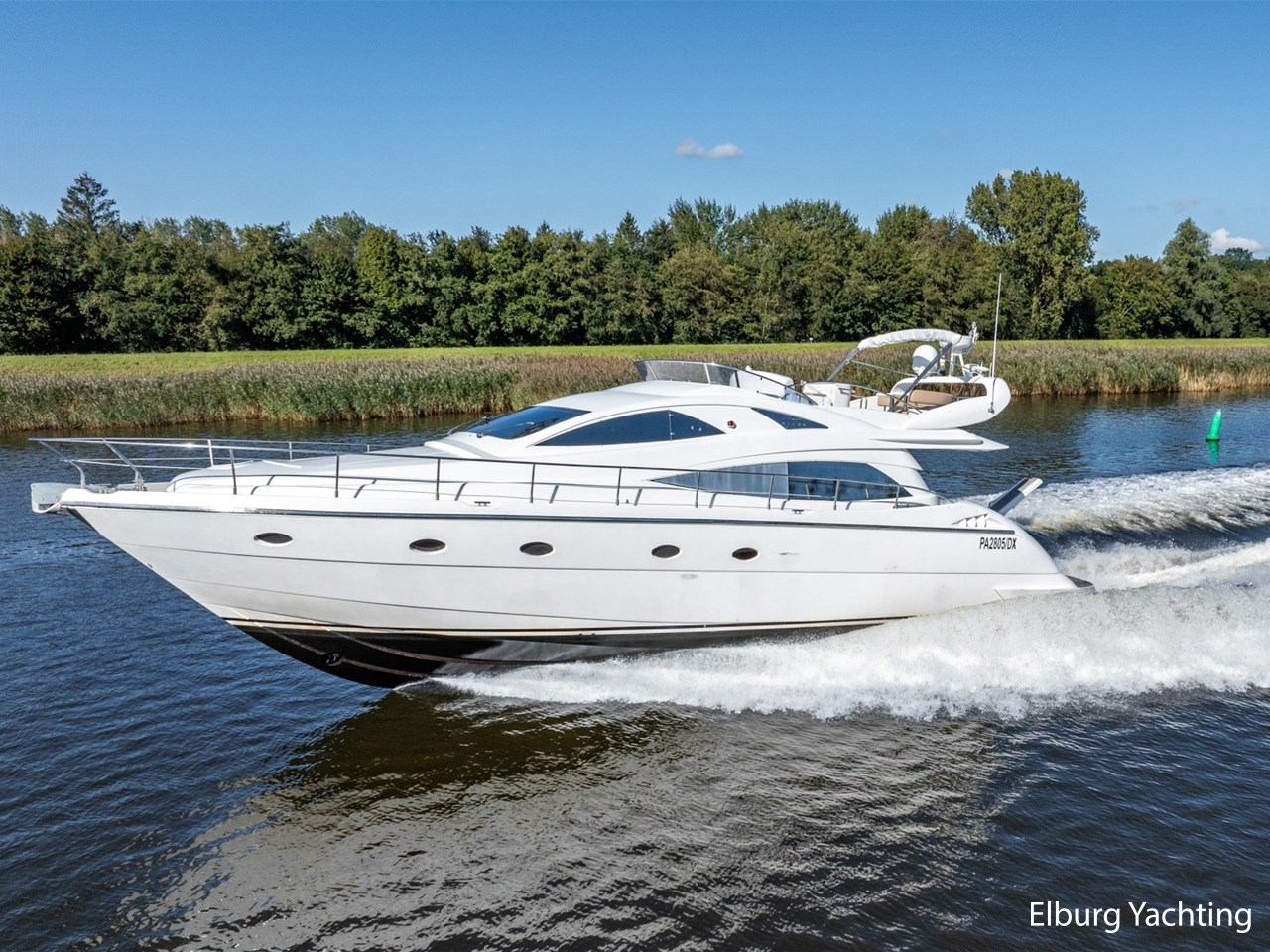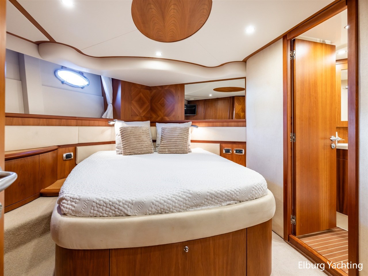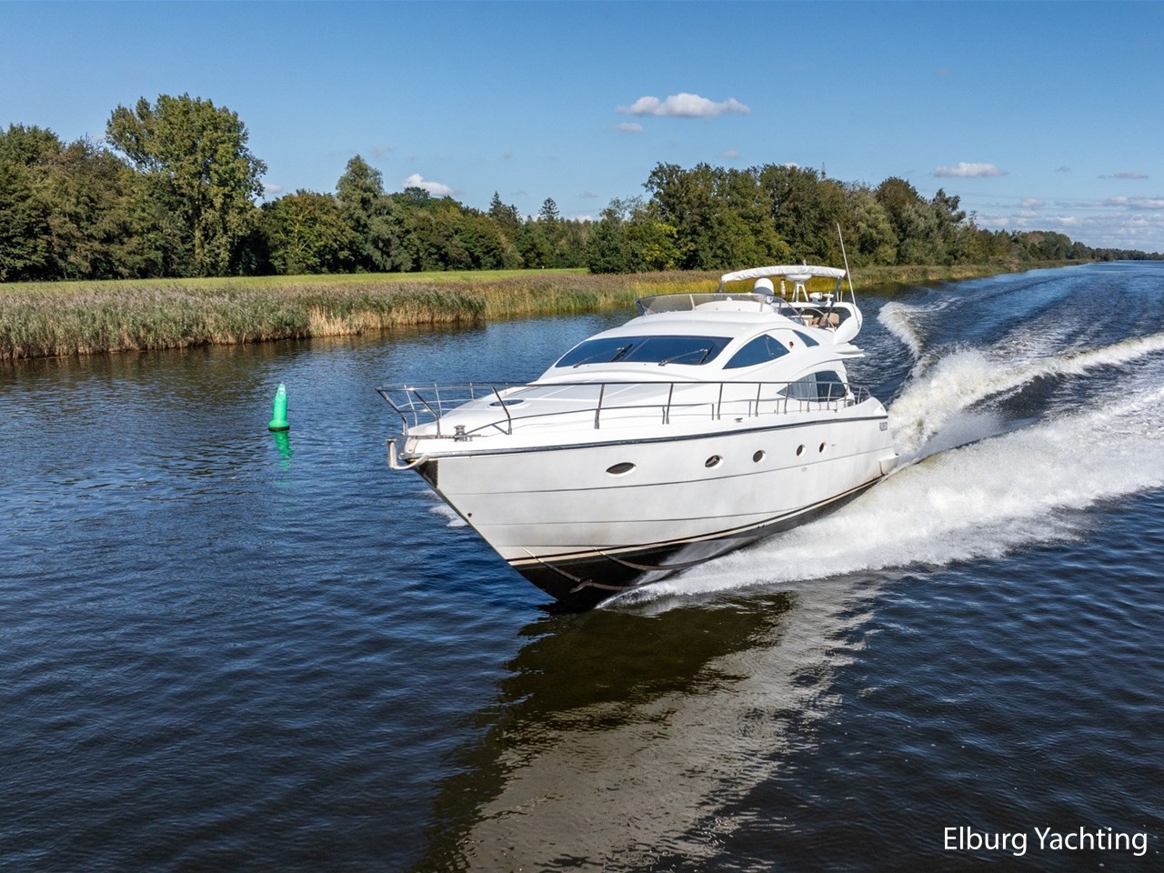 De Aicon 56 is een mooi gelijnd snelvarend polyester jacht. Het jacht beschikt over maar liefst 3 vaste hutten + crew cabin waarmee er plaats aan boord is voor minimaal 6 opvarenden. De salon is ruim opgezet met een aangesloten open keuken. Midscheeps bevind zich de 2-persoons eigenaarshut met eigen douche en toilet voorzieningen. In het voorschip zijn de twee gasten hutten gesitueerd met een 2-persoons frans bed in de voorpiek en een 2 x 1 persoons hut aan SB zijde. Via een vaste halfronde trap op het achterdek bereik je de flybridge. De flybridge heeft een vaste bank op het achterdek, wetbar met koelkast en grillplaat en voor de stuurstand een groot ligbed. De machinekamer is bereikbaar via de open kuip. Deze Aicon 56 is voorzien van: Royale open kuip met geïntegreerde banken met bijbehorende afneembare kussens, zonneschermen rondom kuip, r.v.s. schuifpui naar salon waardoor binnen en buiten met elkaar verbonden worden, TV in salon, koeling/verwarming per vertrek afzonderlijk regelbaar, Bosch vaatwasser, wasmachine, mooring winch in kuip aan SB + BB zijde, Caterpillar motormanagement displays, zonnebed op voordek en flybridge, volledige bimini over flybridge, 2-persoons stuurbank bij beide stuurstanden, afsluitbare kuip met spiegeldeur aan BB zijde, afneembare afdekhoezen voor buiten stuurstand, complete Raymarine navigatie apparatuur, de Yachtcontroller afstandsbediening maakt het aan- en afmeren kinderspel met een directe bediening voor de boeg-/hekschroef en motor(en) voor- en achteruit.