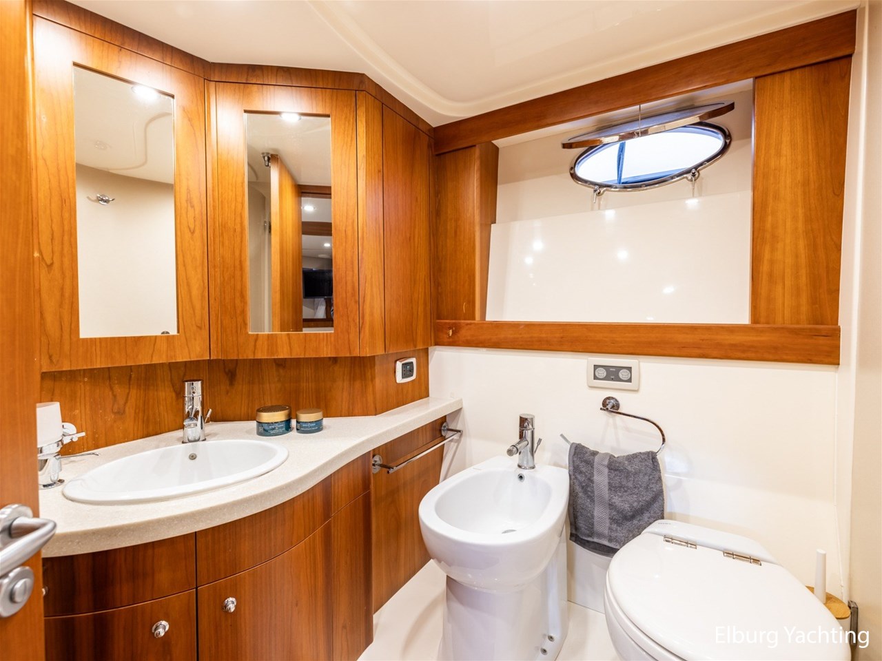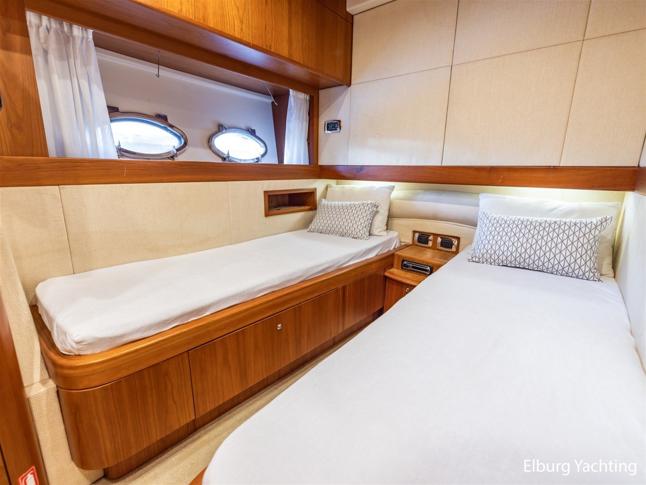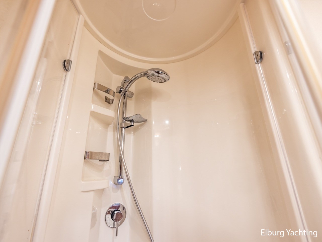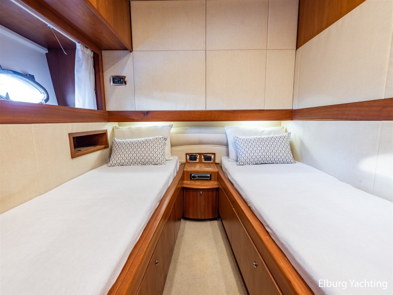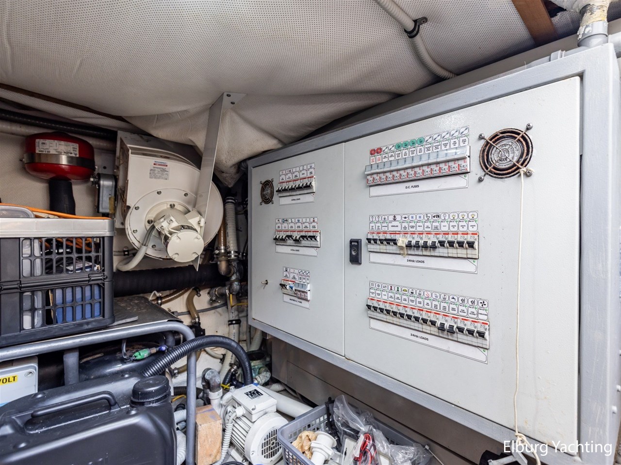 De Aicon 56 is een mooi gelijnd snelvarend polyester jacht. Het jacht beschikt over maar liefst 3 vaste hutten + crew cabin waarmee er plaats aan boord is voor minimaal 6 opvarenden. De salon is ruim opgezet met een aangesloten open keuken. Midscheeps bevind zich de 2-persoons eigenaarshut met eigen douche en toilet voorzieningen. In het voorschip zijn de twee gasten hutten gesitueerd met een 2-persoons frans bed in de voorpiek en een 2 x 1 persoons hut aan SB zijde. Via een vaste halfronde trap op het achterdek bereik je de flybridge. De flybridge heeft een vaste bank op het achterdek, wetbar met koelkast en grillplaat en voor de stuurstand een groot ligbed. De machinekamer is bereikbaar via de open kuip. Deze Aicon 56 is voorzien van: Royale open kuip met geïntegreerde banken met bijbehorende afneembare kussens, zonneschermen rondom kuip, r.v.s. schuifpui naar salon waardoor binnen en buiten met elkaar verbonden worden, TV in salon, koeling/verwarming per vertrek afzonderlijk regelbaar, Bosch vaatwasser, wasmachine, mooring winch in kuip aan SB + BB zijde, Caterpillar motormanagement displays, zonnebed op voordek en flybridge, volledige bimini over flybridge, 2-persoons stuurbank bij beide stuurstanden, afsluitbare kuip met spiegeldeur aan BB zijde, afneembare afdekhoezen voor buiten stuurstand, complete Raymarine navigatie apparatuur, de Yachtcontroller afstandsbediening maakt het aan- en afmeren kinderspel met een directe bediening voor de boeg-/hekschroef en motor(en) voor- en achteruit.