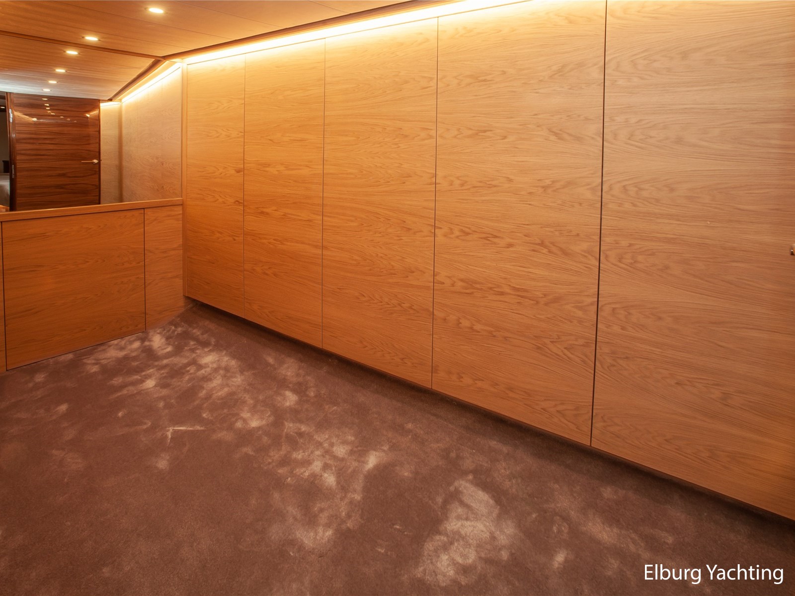 Deze Van den Hoven Executive 2100 is ontworpen voor wie graag langdurig en comfortabel aan boord verblijft. Dit jacht uit 2019 beschikt over één zeer royale eigenaarshut midscheeps, voorzien van een ruime inloopkast en een complete badkamer. De ruimte in de voorpunt doet momenteel dienst als berging, maar is voorbereid om te worden omgebouwd tot een tweede slaapkamer, indien gewenst. Daarnaast kan een deel van de inloopkast worden ingericht als derde slaapvertrek. Dergelijke wensen kunnen met de jachtwerf Van den Hoven worden besproken.