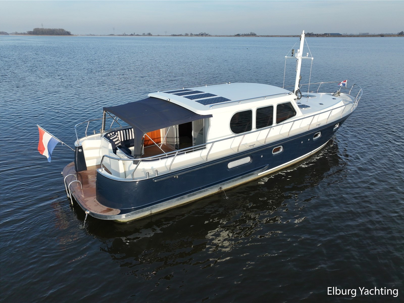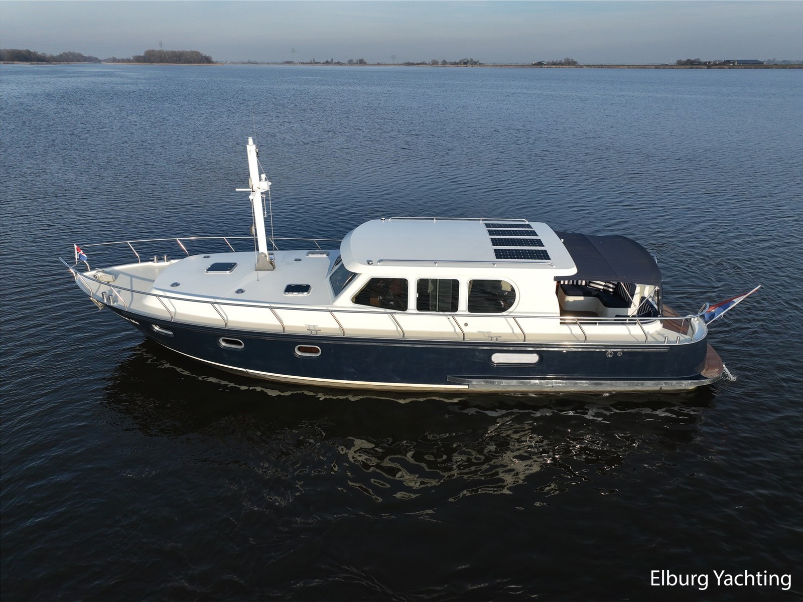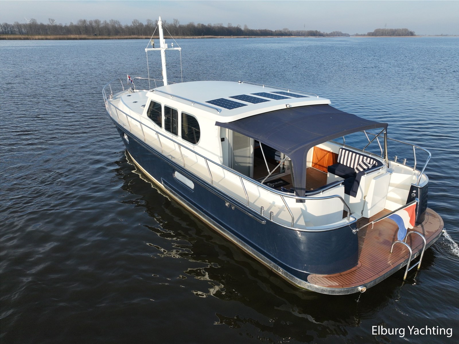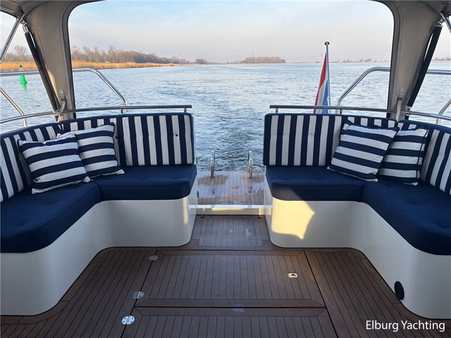 Deze schitterende Argos Line 13.50 - OK - Elite wordt gekenmerkt door haar grote leefruimte aan boord door een gelijkvloerse salon, open kuip en zwemplateau. De tent is over de gehele kuip afsluitbaar zodat het met met minder weer, in combinatie met de Eberspächer hete luchtverwarming, nog steeds mogelijk is om comfortabel buiten te zitten. Vanuit de kuip loopt u via de twee schuifdeuren voorzien van horren, de ruime salon binnen die voorzien is van dubbelglas, met aan bakboord een schuifraam en aan de voorkant een open te klappen raam. In combinatie met de Kabola centrale verwarming is het aangenaam aan boord te verblijven, ook wat vroeger en later in het vaarseizoen. Bij de stuurstand heeft u goed overzicht door de raampartij, Het jacht is voorzien van een Sidepower afstandsbediening waardoor het jacht goed te manoeuvreren is. Vanaf de salon loopt u door middel van een trap naar beneden waar u aan de bakboord kant een ruime dinette vindt, en daar tegenover de kombuis. Als u rechtdoor loopt vindt u de eigenaars hut die voorzien is van een tweepersoons frans bed. Aangrenzend vindt u een douche in eigen cabine en een elektrisch toilet in eigen cabine. Vanuit de kombuis vindt u de gasten hut die is voorzien van een tweepersoons bed. Via de kuip loopt u door middel van een openslaand deurtje naar het zwemplateau. Via de twee luie, halfronde trappen loopt u de gangboorden op die voorzien zijn van een RVS reling, dubbele RVS bolders en antislip verf. Op het voordek staat een elektrisch klapbare mast, en de elektrische ankerlier. Het dak is voorzien van een viertal zonnepanelen via Victron MPPT 100/20. Het jacht heeft een minimale doorvaarthoogte van ca. 2.40 m. Voor vragen en/of het maken van een afspraak bent u 7 dagen per week van harte welkom bij Elburg Yachting.