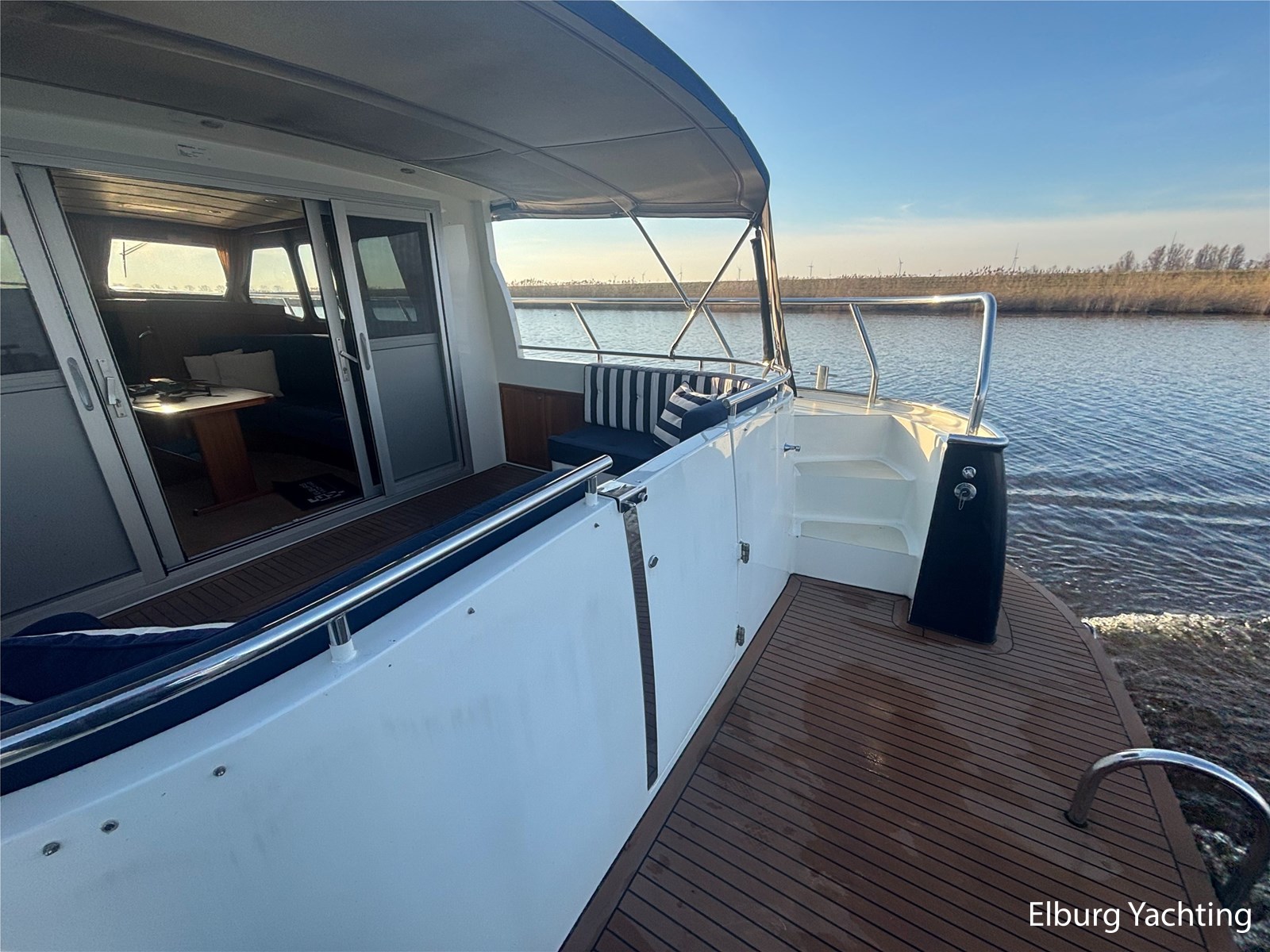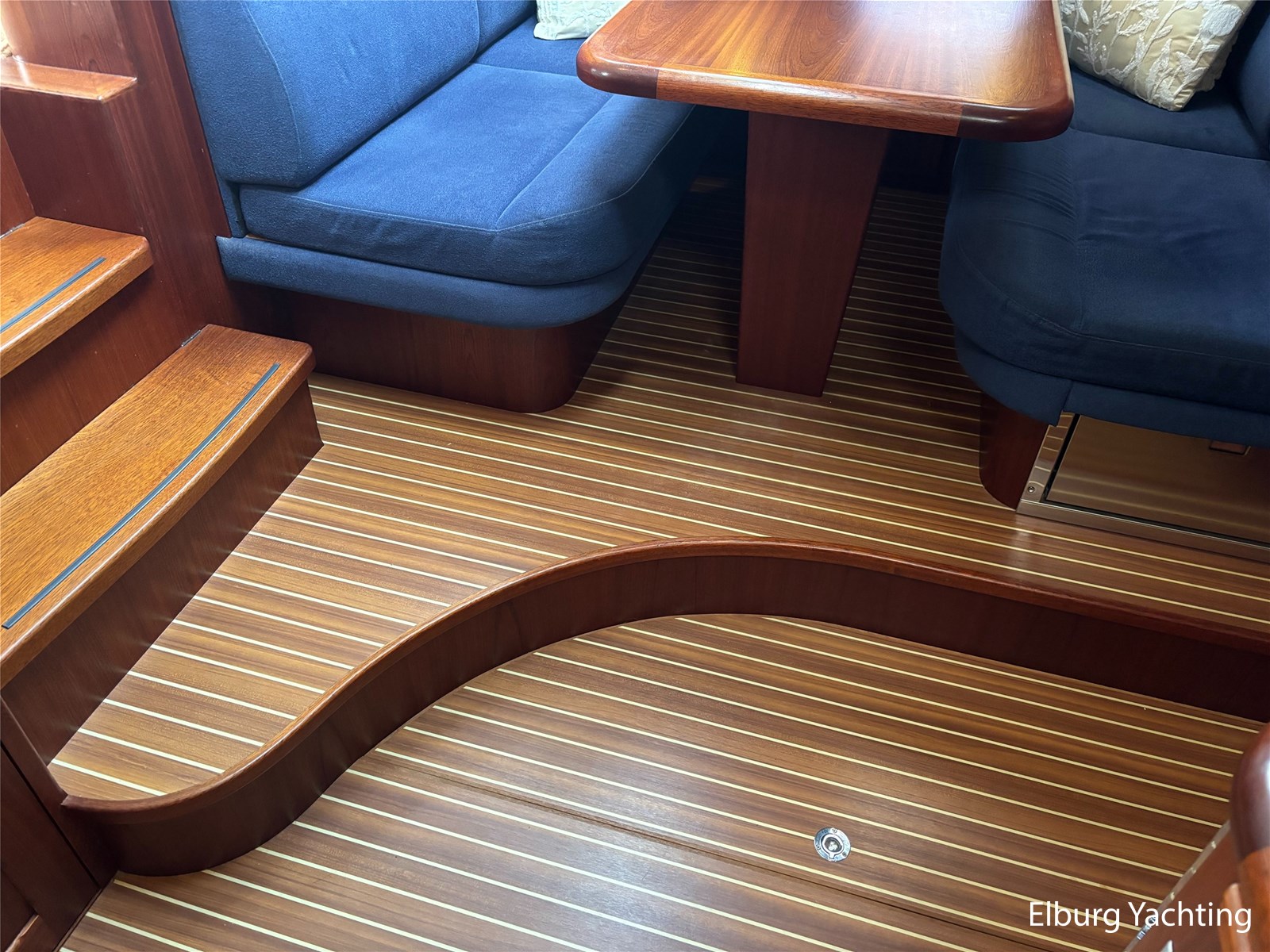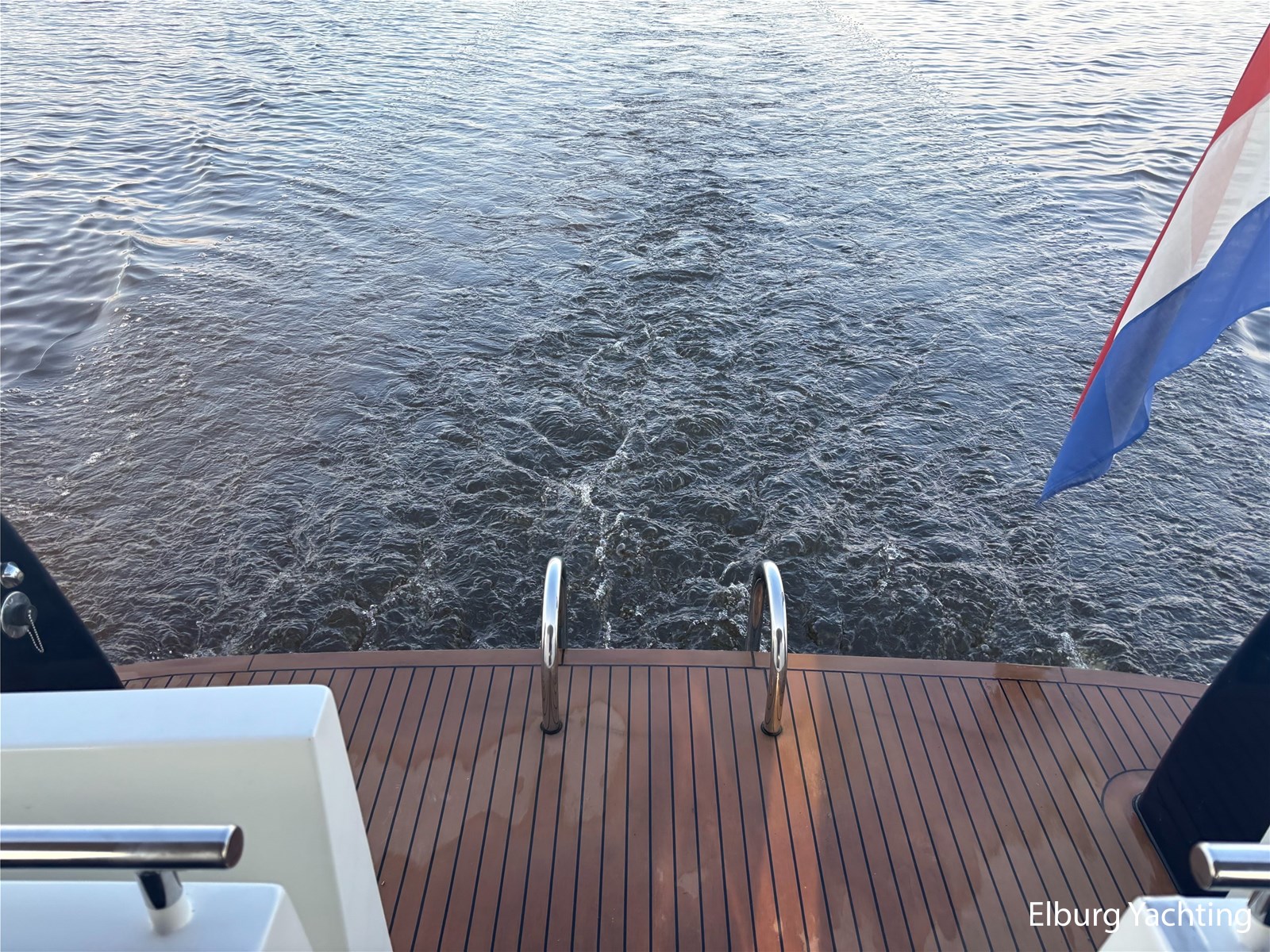 Geïntegreerd met kunst teak + 2 x half ronde trap vanaf dek + R.V.S. zwemtrap