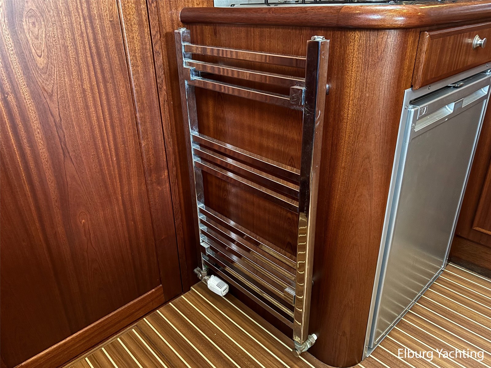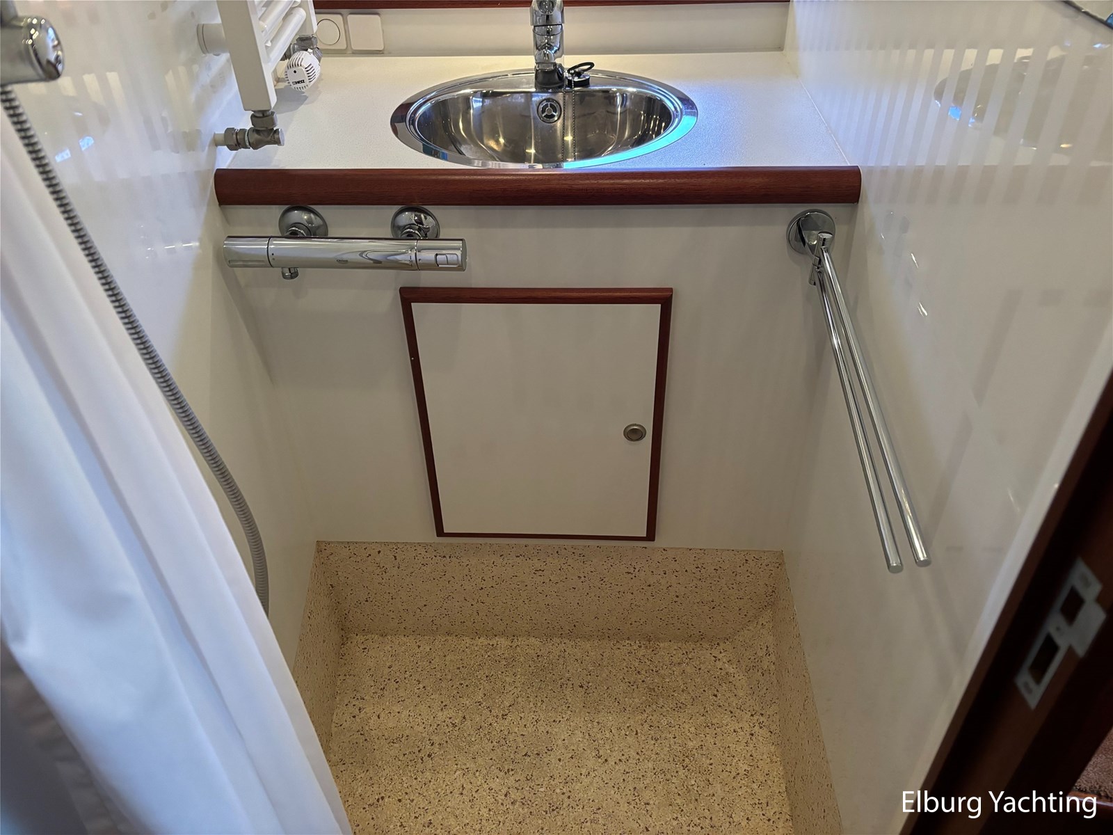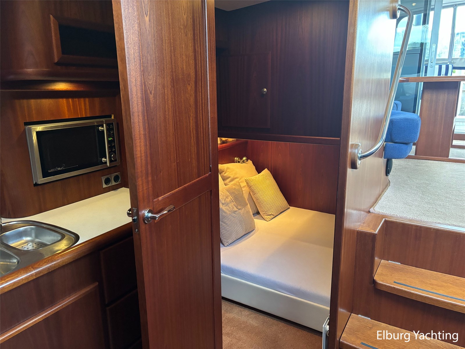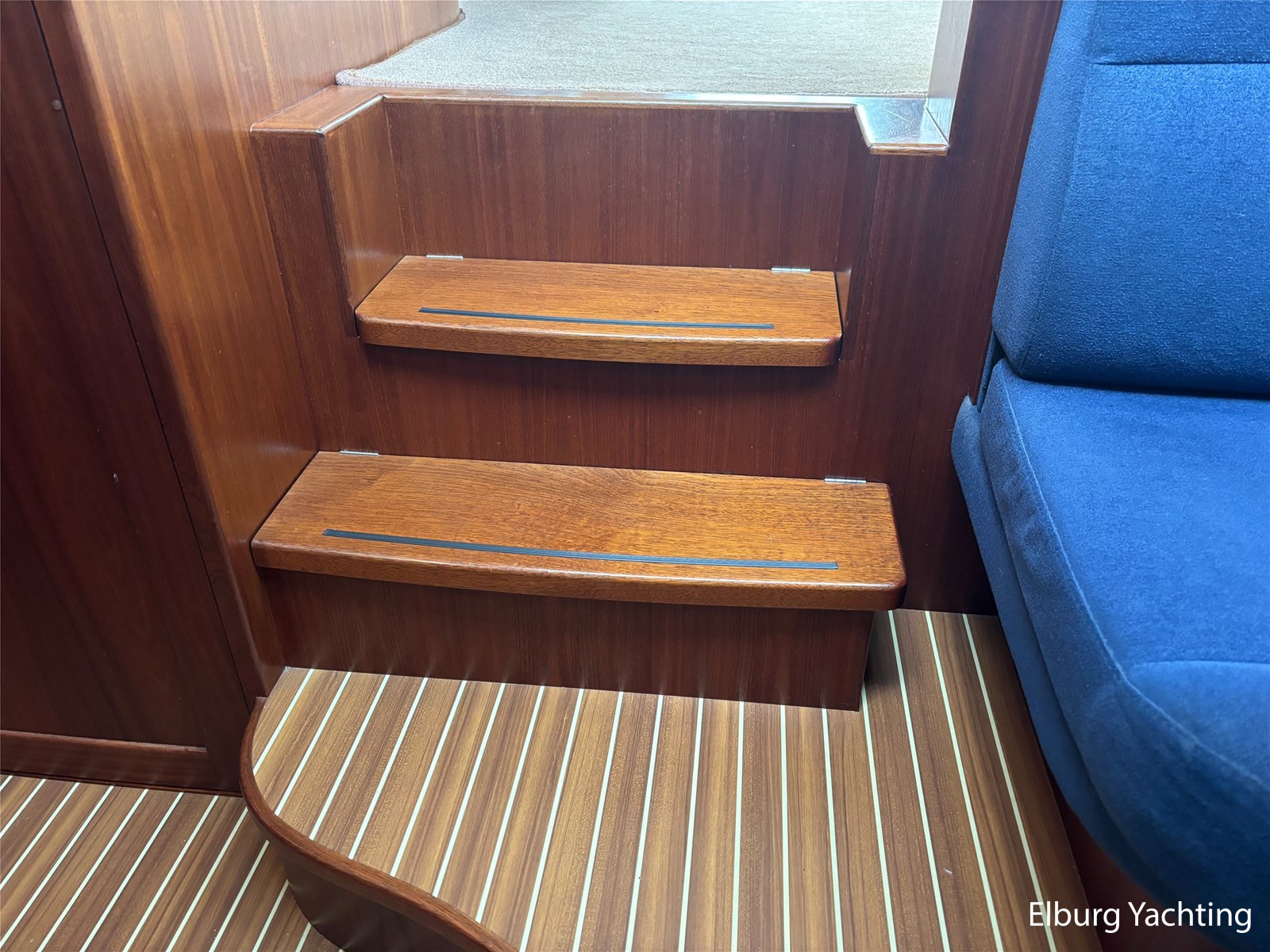 Geïntegreerd met kunst teak + 2 x half ronde trap vanaf dek + R.V.S. zwemtrap