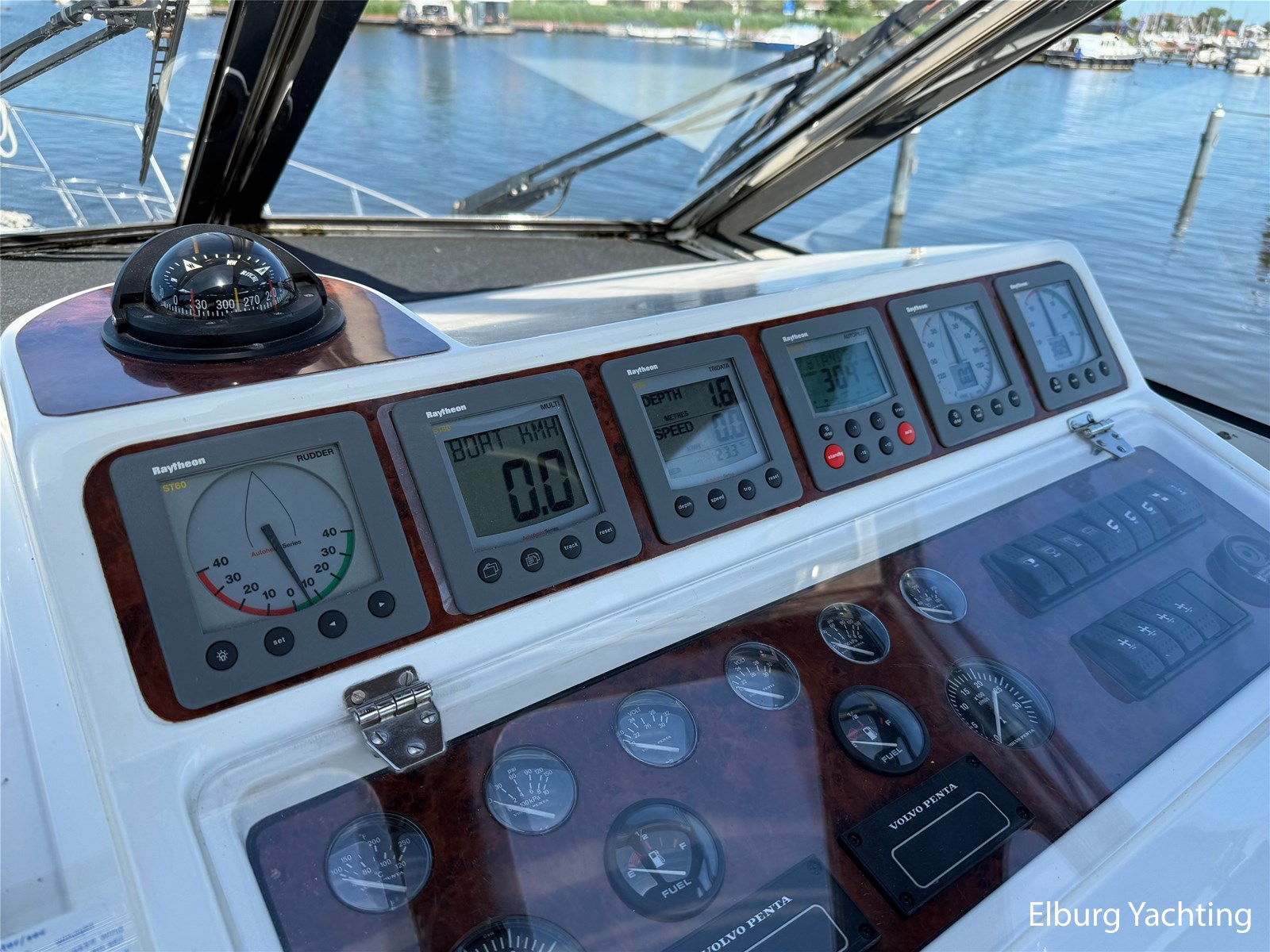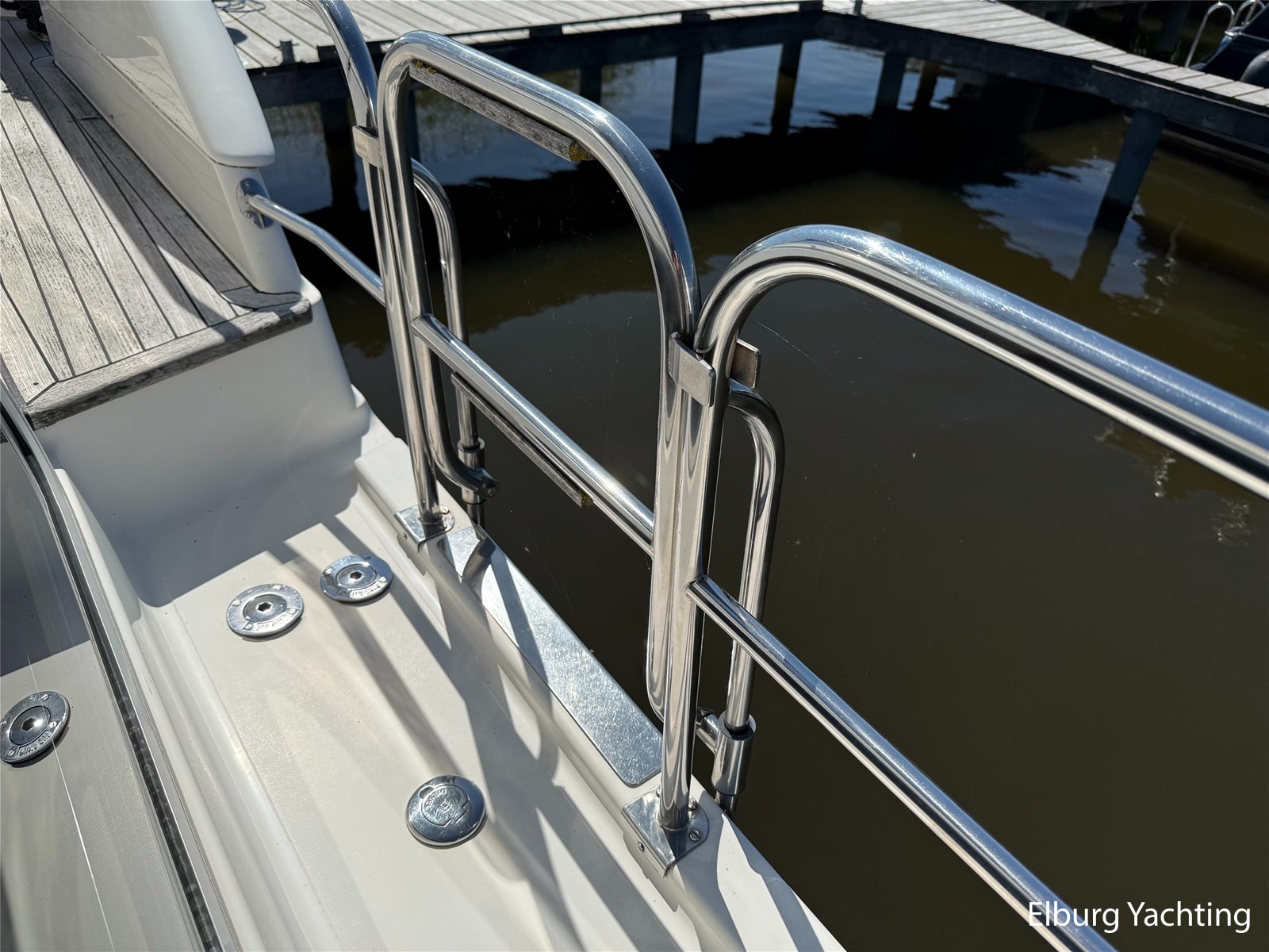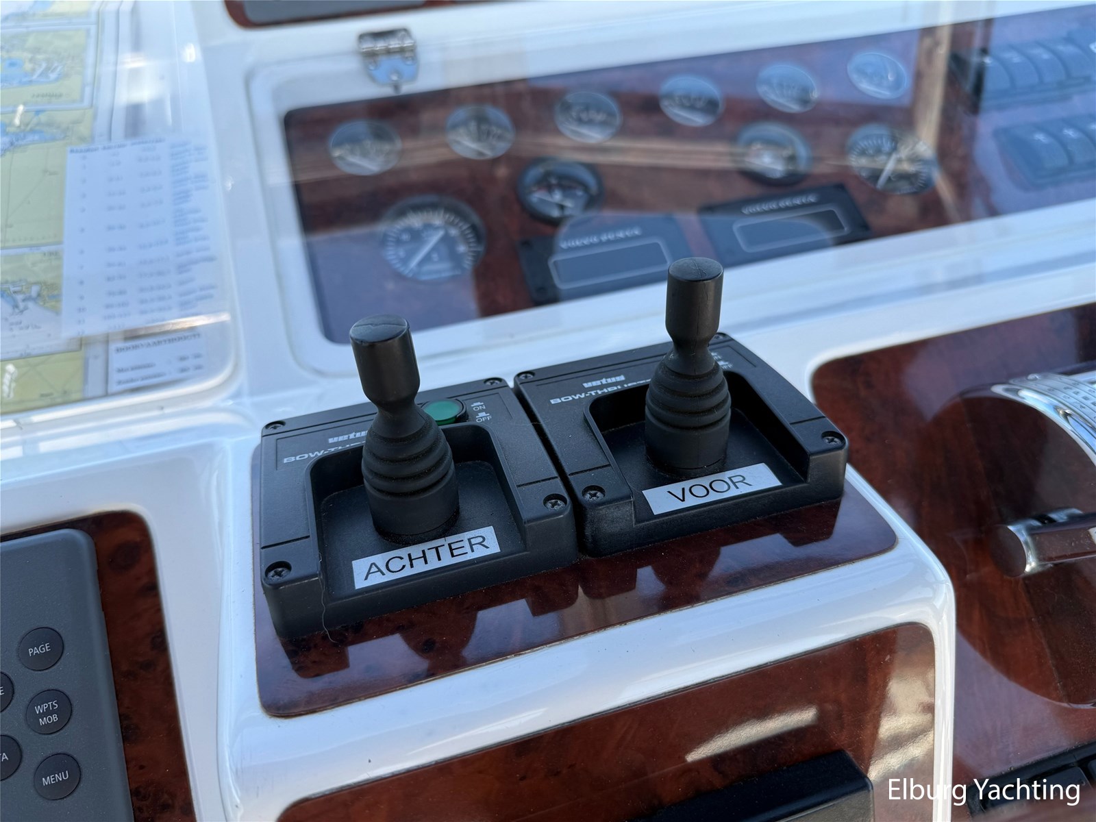 R.v.s. reling, biminitop over achterdek, geïntegreerde bank op achterdek, kunststof stootrand, Raytheon ST60 roerstandaanwijzer, Raytheon ST60 windmeter, elektrisch searchlight, 3 x dubbelarmige ruitenwissers, polyester radarbeugel, verstelbare stuurbank, Corian topbladen in keuken en toiletten, vaatwasser, vlucht- en ventilatieluiken, douche/toilet gescheiden in achterkajuit, r.v.s. fenderhouders, uitlaatslangen vernieuwd 2024, antifouling 2025, was- en droogcombinatie, verwarming bij stuurstand,, r.v.s. windscherm, houten vloer in keuken, blowers bij windscherm, voorkajuit heeft eigen ingang naar toilet, polyester verschansing, r.v.s. zijtrap in r.v.s. reling, ieder jaar servicebeurt, onderhoud is gelogd,, r.v.s. beugel voor bimini (ex. kap), nieuwe antraciet kuiptent, 12 x nieuwe verstuivers (2025), altijd in de winter verwarmd binnen gestaan, 2 x vuilwatertank (ongebruikt), accupakket is al volgt: service accu's ca. 2020 vernieuwd, 4 x start accu ( 2 x 2020 en 2 x 2024) 1 x generator accu. 2 x 2 boeg/hek. Victron Multiplus 24/3000/120, Victron Centaur voor boeg/hekaccu's.