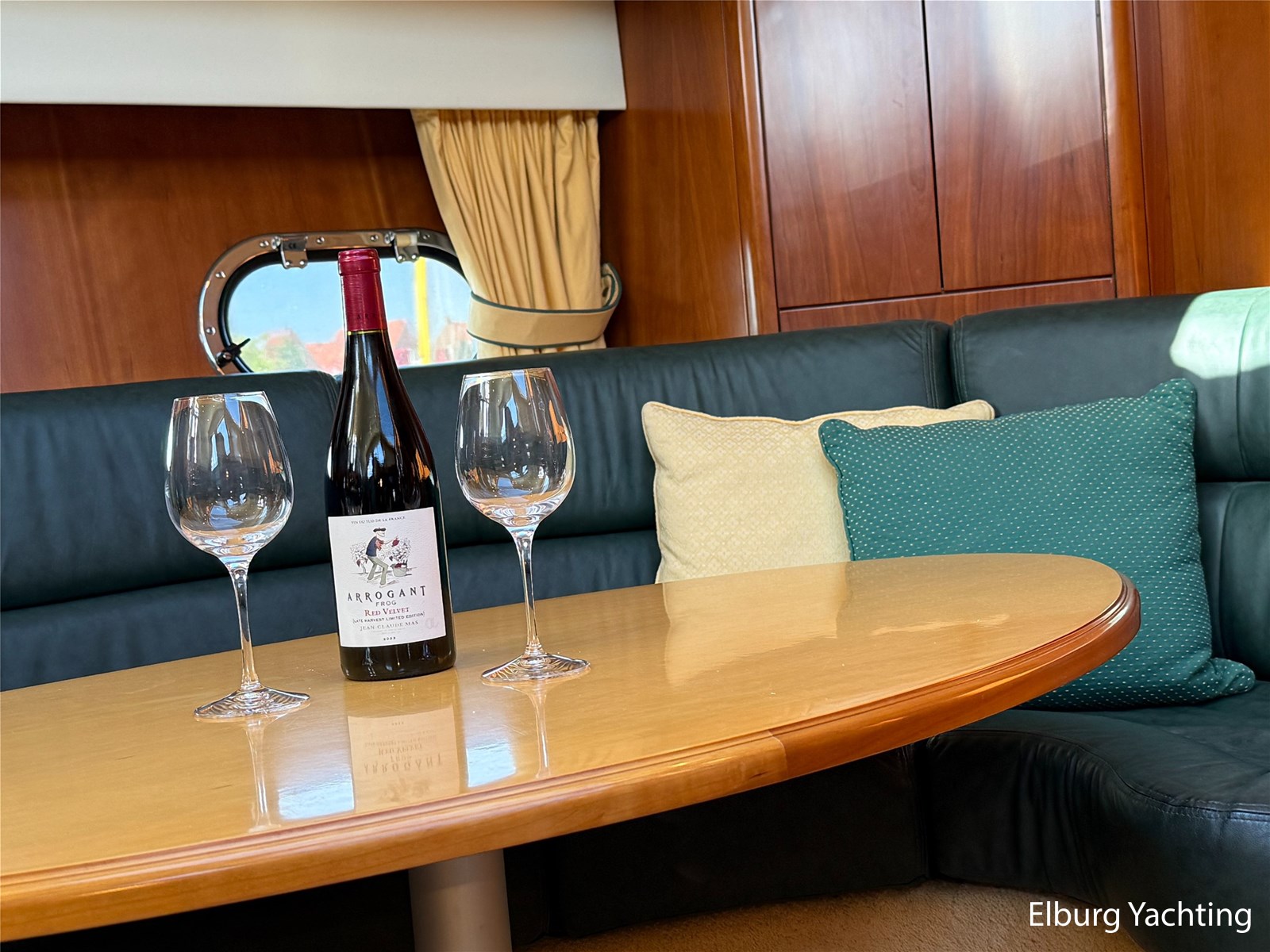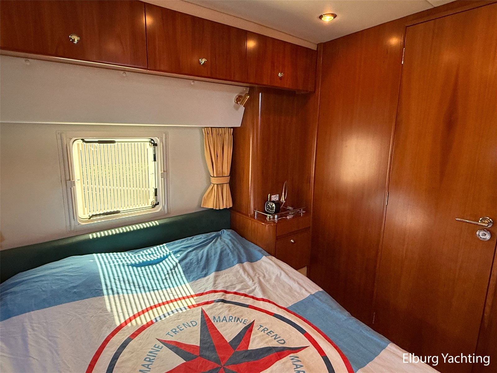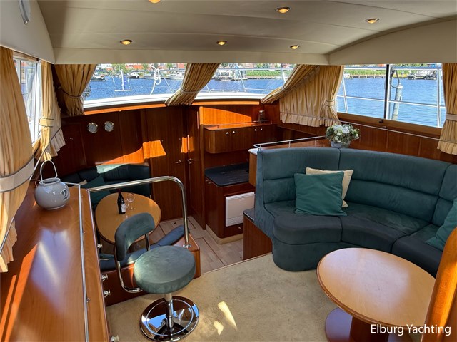R.v.s. reling, biminitop over achterdek, geïntegreerde bank op achterdek, kunststof stootrand, Raytheon ST60 roerstandaanwijzer, Raytheon ST60 windmeter, elektrisch searchlight, 3 x dubbelarmige ruitenwissers, polyester radarbeugel, verstelbare stuurbank, Corian topbladen in keuken en toiletten, vaatwasser, vlucht- en ventilatieluiken, douche/toilet gescheiden in achterkajuit, r.v.s. fenderhouders, uitlaatslangen vernieuwd 2024, antifouling 2025, was- en droogcombinatie, verwarming bij stuurstand,, r.v.s. windscherm, houten vloer in keuken, blowers bij windscherm, voorkajuit heeft eigen ingang naar toilet, polyester verschansing, r.v.s. zijtrap in r.v.s. reling, ieder jaar servicebeurt, onderhoud is gelogd,, r.v.s. beugel voor bimini (ex. kap), nieuwe antraciet kuiptent, 12 x nieuwe verstuivers (2025), altijd in de winter verwarmd binnen gestaan, 2 x vuilwatertank (ongebruikt), accupakket is al volgt: service accu's ca. 2020 vernieuwd, 4 x start accu ( 2 x 2020 en 2 x 2024) 1 x generator accu. 2 x 2 boeg/hek. Victron Multiplus 24/3000/120, Victron Centaur voor boeg/hekaccu's.
