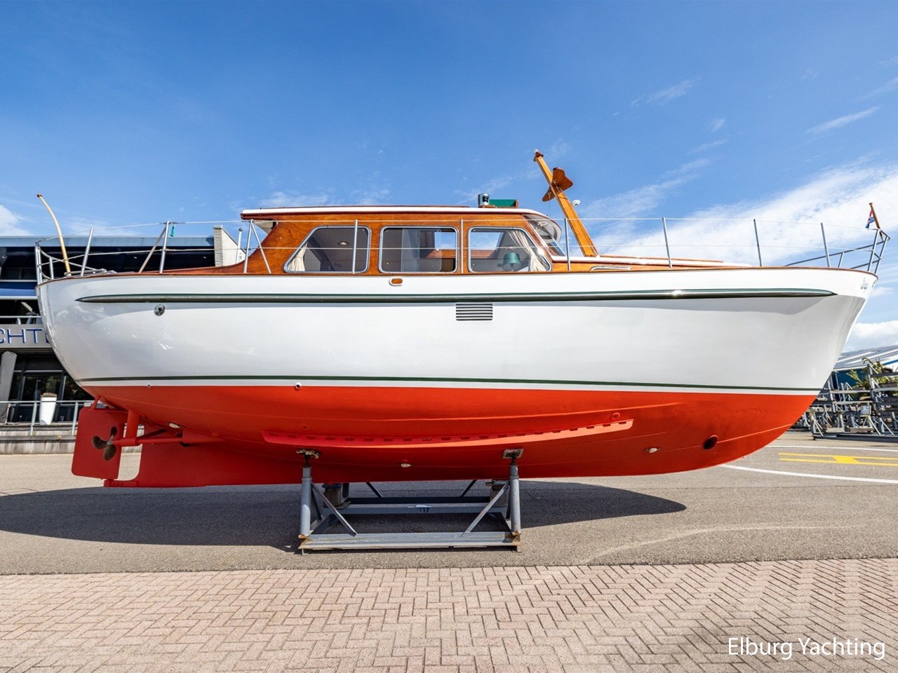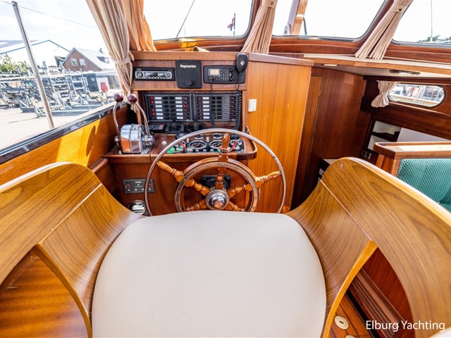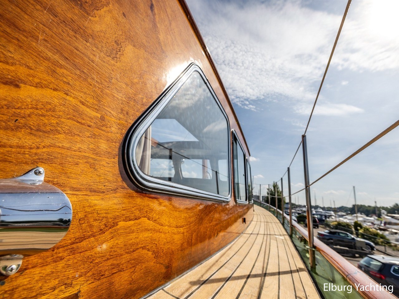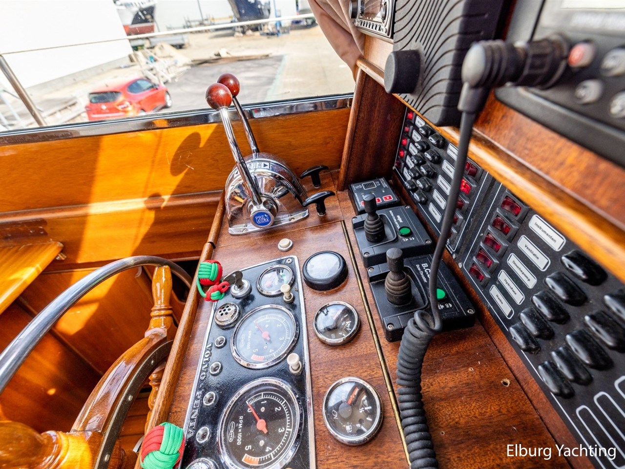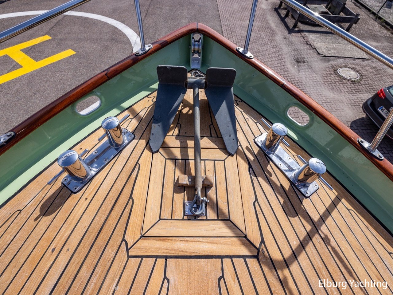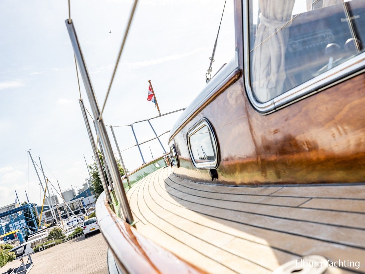 De Trewes Spitsgatkotter 12.00 is in 1968 ontworpen door de beroemde Naval Architect SM van der Meer en gebouwd door Van Dam scheepswerf in Aalsmeer. Het is een uniek, charmant en custom exemplaar met klassieke uitstraling. De open kuip en salon zijn door 2 openslaande deuren met elkaar verbonden, ruime open kuip beschikt over een U-vormige zitting, welke uitermate geschikt is om met gasten een heerlijke dag te genieten op het water, 2e stuurstand buiten is aanwezig, voorhut met 2 vaste kooien en royale hang/legkasten, ruime kombuis aan SB met ingebouwde Electrolux koelkast, r.v.s. aanrechtbak. Aan BB grote toiletruimte aanwezig met vaste wastafel. In salon aan SB ruime L-bank, barkast aan SB, dressoir met diverse kastjes en laden aan BB. Vloeren in voorhut, kombuis en salon afgewerkt met sierlijn teak. Securit glas in koperverchroomde profielen, vaste ramen in achterschot en deuren, middelste zijramen schuivend, 1 voorfront en 1 half klappend raam. Teak met gerubberde naden over stalen dek. Gehele opbouw van 20 mm. mahonie hechthout, daken van 3 x 7 mm Occumé hechthout gelamineerd. Groot schuifluik in salondak. stalen zelflozende kuipvloer, bekleed met teakhout met gerubberde naden. Kuipbanken en -randen geheel in massief mahonie. Kuip voorzien van volledige overdekte tent met zichtvensters. Het schip heeft in 2022 volledige renovatie van teakdek ondergaan, ruime hoge open kuip, 2e stuurstand, r.v.s. bolders, hoge dubbele reling, alle kitranden zijn vernieuwd 2022, klapbare teakhouten mast, ledverlichting door gehele boot, Victron Digital Multi Control, stroomsysteem, veel bergruimte. De doorvaarthoogte met geklapte mast is ca. 2,50m. Het schip afgelopen winterseizoenen binnen gelegen. Voor vragen en/of het maken van een afspraak bent u 7 dagen per week van harte welkom bij Elburg Yachting.