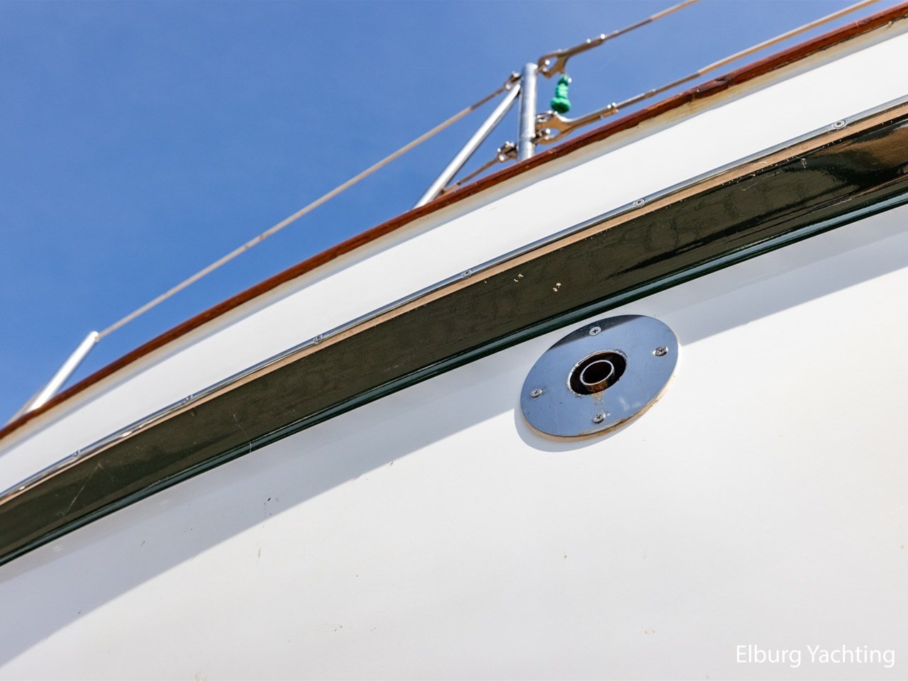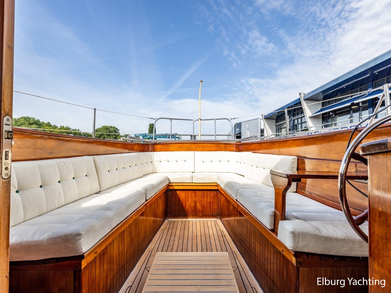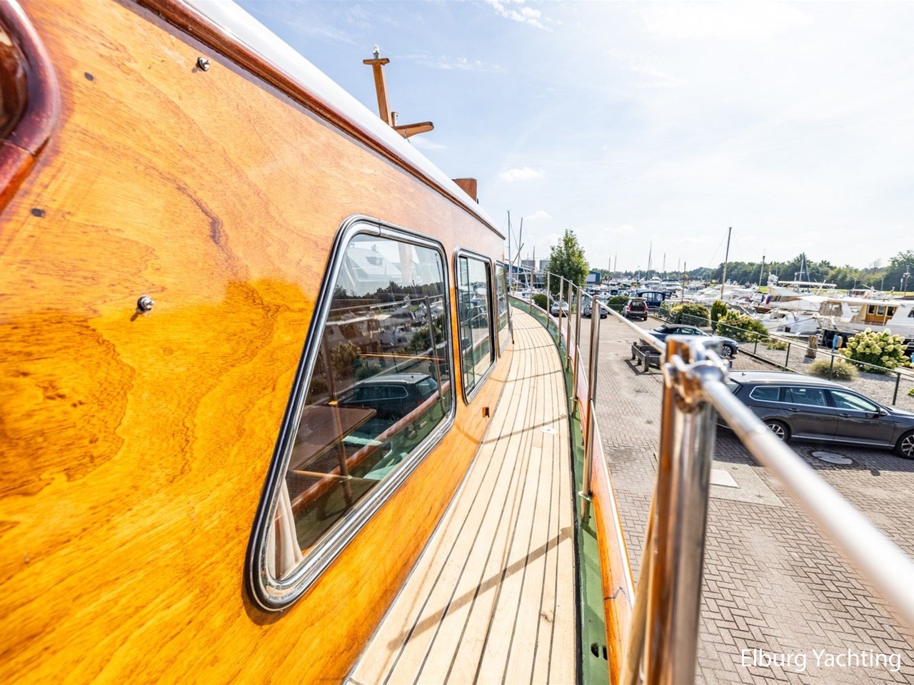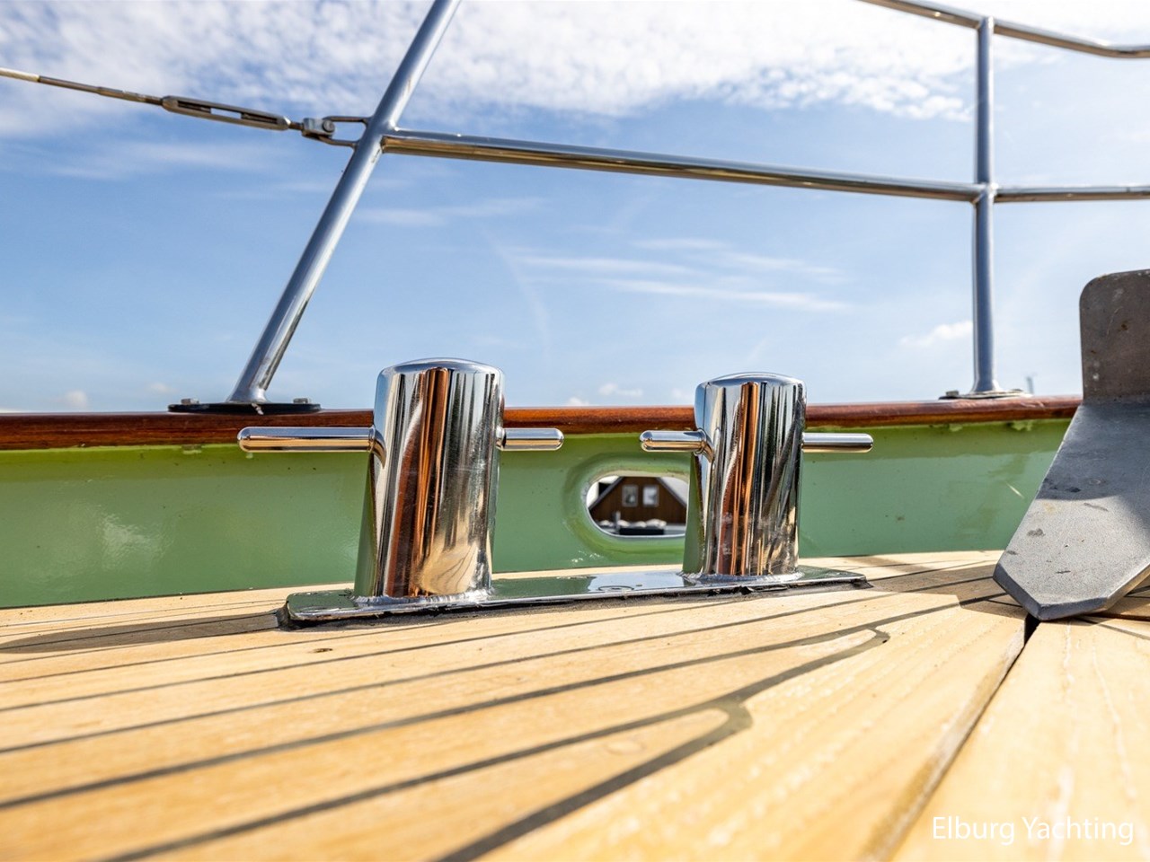 De Trewes Spitsgatkotter 12.00 is in 1968 ontworpen door de beroemde Naval Architect SM van der Meer en gebouwd door Van Dam scheepswerf in Aalsmeer. Het is een uniek, charmant en custom exemplaar met klassieke uitstraling. De open kuip en salon zijn door 2 openslaande deuren met elkaar verbonden, ruime open kuip beschikt over een U-vormige zitting, welke uitermate geschikt is om met gasten een heerlijke dag te genieten op het water, 2e stuurstand buiten is aanwezig, voorhut met 2 vaste kooien en royale hang/legkasten, ruime kombuis aan SB met ingebouwde Electrolux koelkast, r.v.s. aanrechtbak. Aan BB grote toiletruimte aanwezig met vaste wastafel. In salon aan SB ruime L-bank, barkast aan SB, dressoir met diverse kastjes en laden aan BB. Vloeren in voorhut, kombuis en salon afgewerkt met sierlijn teak. Securit glas in koperverchroomde profielen, vaste ramen in achterschot en deuren, middelste zijramen schuivend, 1 voorfront en 1 half klappend raam. Teak met gerubberde naden over stalen dek. Gehele opbouw van 20 mm. mahonie hechthout, daken van 3 x 7 mm Occumé hechthout gelamineerd. Groot schuifluik in salondak. stalen zelflozende kuipvloer, bekleed met teakhout met gerubberde naden. Kuipbanken en -randen geheel in massief mahonie. Kuip voorzien van volledige overdekte tent met zichtvensters. Het schip heeft in 2022 volledige renovatie van teakdek ondergaan, ruime hoge open kuip, 2e stuurstand, r.v.s. bolders, hoge dubbele reling, alle kitranden zijn vernieuwd 2022, klapbare teakhouten mast, ledverlichting door gehele boot, Victron Digital Multi Control, stroomsysteem, veel bergruimte. De doorvaarthoogte met geklapte mast is ca. 2,50m. Het schip afgelopen winterseizoenen binnen gelegen. Voor vragen en/of het maken van een afspraak bent u 7 dagen per week van harte welkom bij Elburg Yachting.