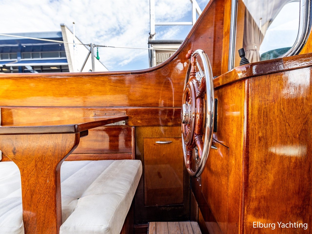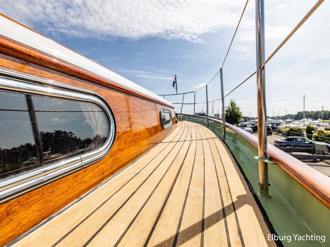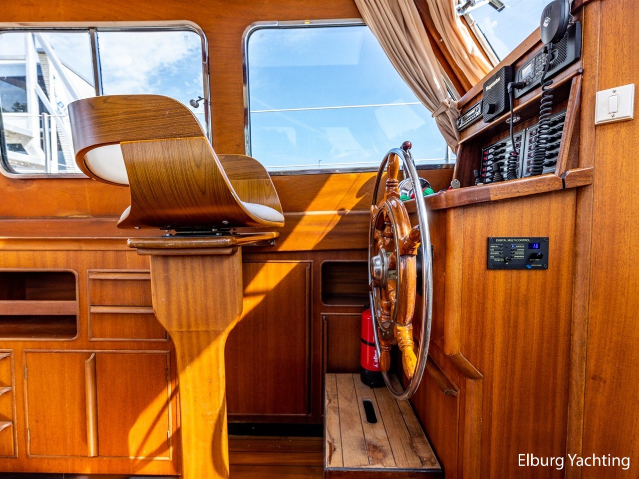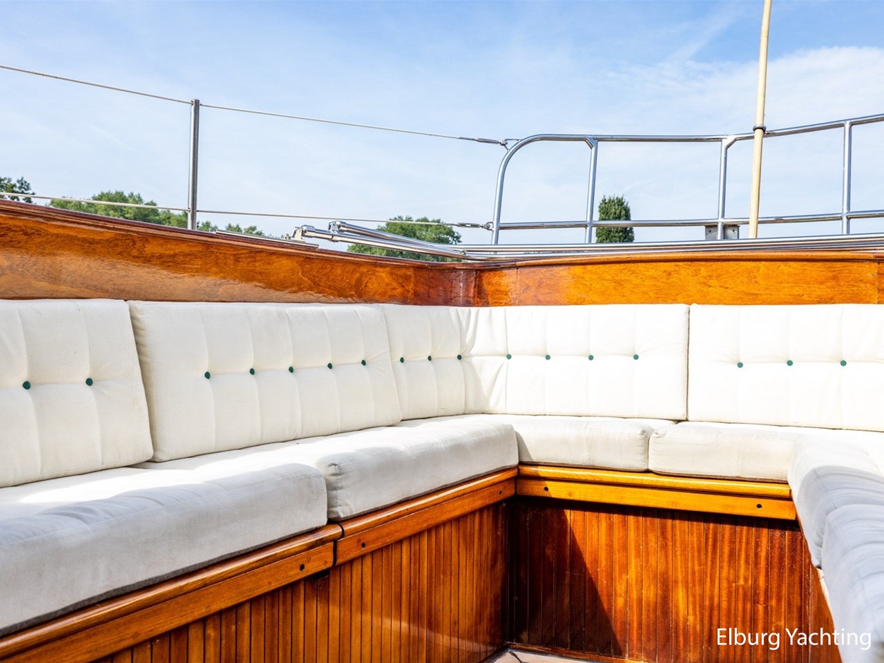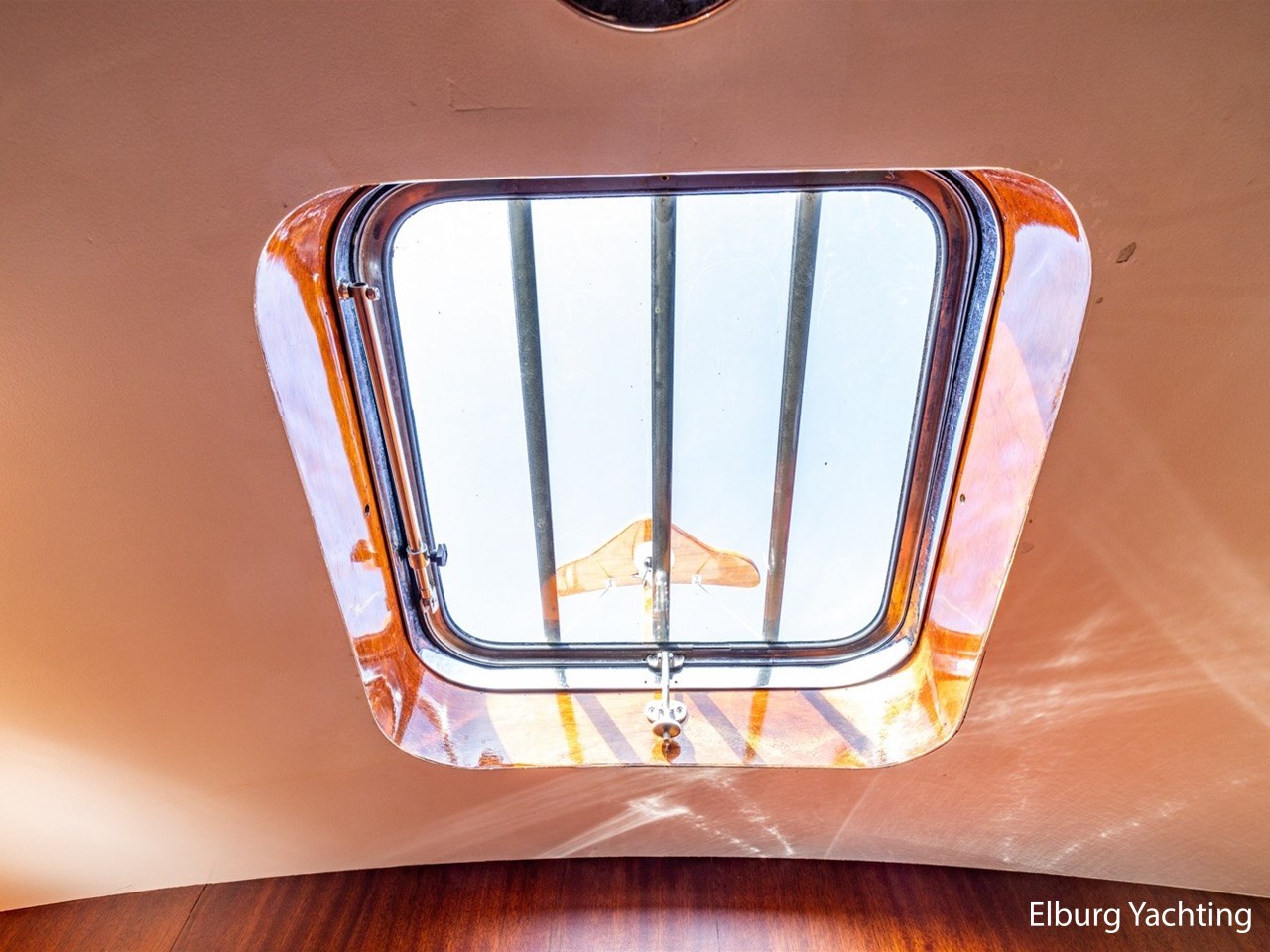 De Trewes Spitsgatkotter 12.00 is in 1968 ontworpen door de beroemde Naval Architect SM van der Meer en gebouwd door Van Dam scheepswerf in Aalsmeer. Het is een uniek, charmant en custom exemplaar met klassieke uitstraling. De open kuip en salon zijn door 2 openslaande deuren met elkaar verbonden, ruime open kuip beschikt over een U-vormige zitting, welke uitermate geschikt is om met gasten een heerlijke dag te genieten op het water, 2e stuurstand buiten is aanwezig, voorhut met 2 vaste kooien en royale hang/legkasten, ruime kombuis aan SB met ingebouwde Electrolux koelkast, r.v.s. aanrechtbak. Aan BB grote toiletruimte aanwezig met vaste wastafel. In salon aan SB ruime L-bank, barkast aan SB, dressoir met diverse kastjes en laden aan BB. Vloeren in voorhut, kombuis en salon afgewerkt met sierlijn teak. Securit glas in koperverchroomde profielen, vaste ramen in achterschot en deuren, middelste zijramen schuivend, 1 voorfront en 1 half klappend raam. Teak met gerubberde naden over stalen dek. Gehele opbouw van 20 mm. mahonie hechthout, daken van 3 x 7 mm Occumé hechthout gelamineerd. Groot schuifluik in salondak. stalen zelflozende kuipvloer, bekleed met teakhout met gerubberde naden. Kuipbanken en -randen geheel in massief mahonie. Kuip voorzien van volledige overdekte tent met zichtvensters. Het schip heeft in 2022 volledige renovatie van teakdek ondergaan, ruime hoge open kuip, 2e stuurstand, r.v.s. bolders, hoge dubbele reling, alle kitranden zijn vernieuwd 2022, klapbare teakhouten mast, ledverlichting door gehele boot, Victron Digital Multi Control, stroomsysteem, veel bergruimte. De doorvaarthoogte met geklapte mast is ca. 2,50m. Het schip afgelopen winterseizoenen binnen gelegen. Voor vragen en/of het maken van een afspraak bent u 7 dagen per week van harte welkom bij Elburg Yachting.