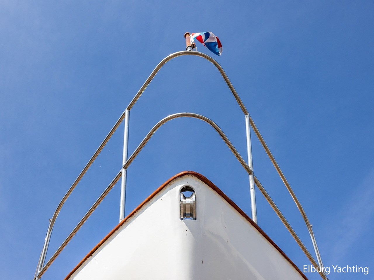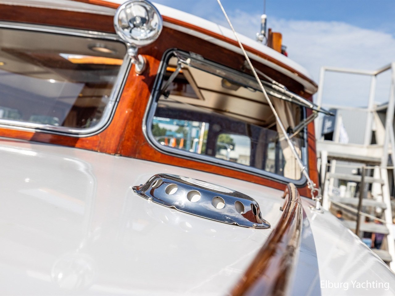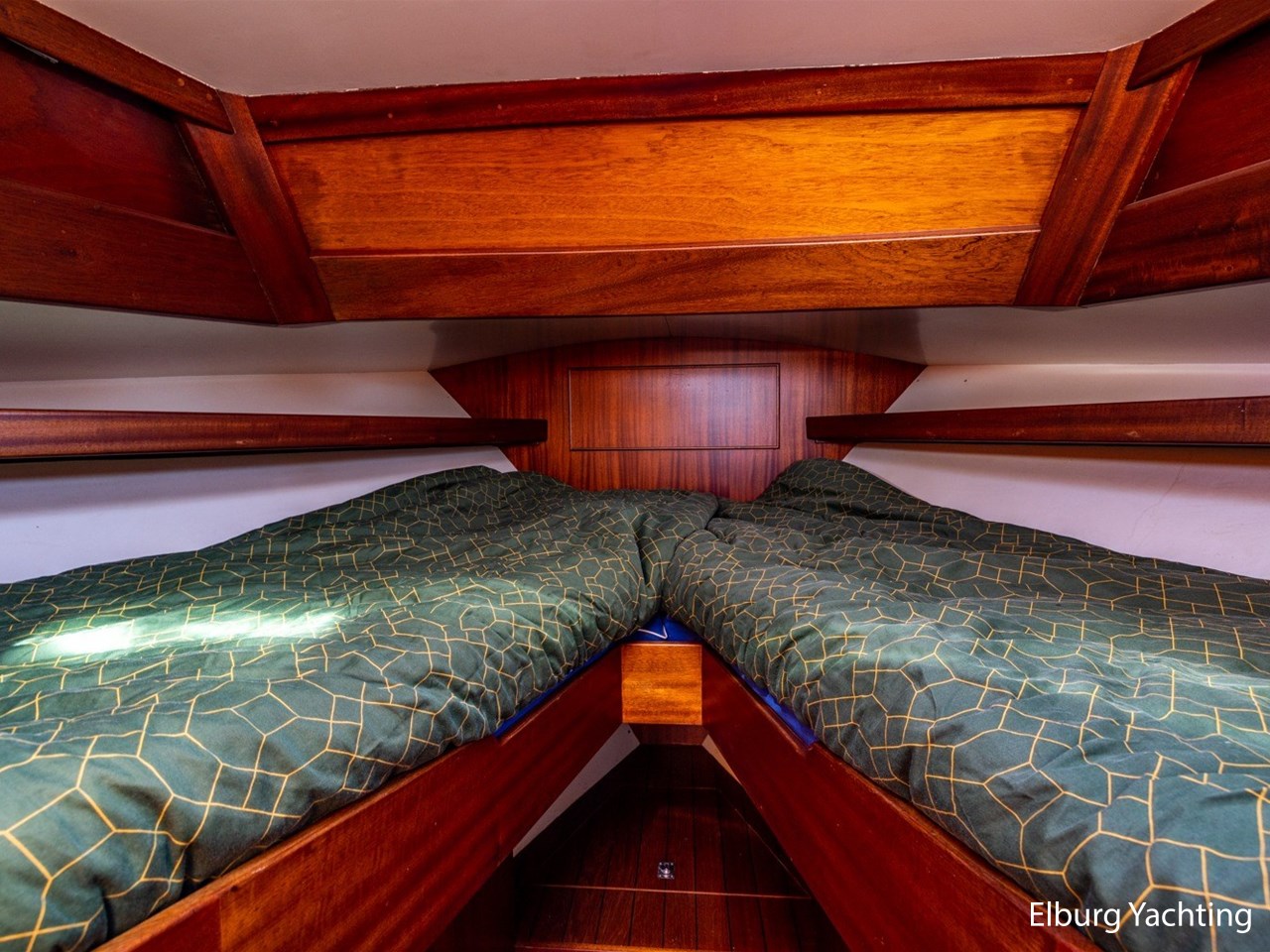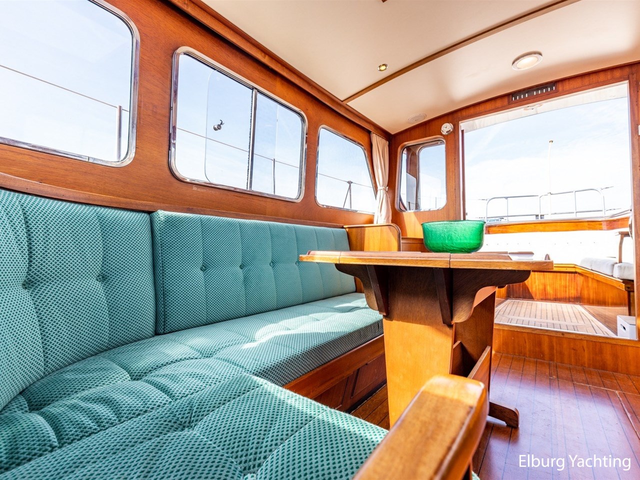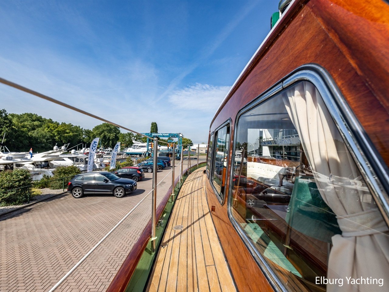De Trewes Spitsgatkotter 12.00 is in 1968 ontworpen door de beroemde Naval Architect SM van der Meer en gebouwd door Van Dam scheepswerf in Aalsmeer. Het is een uniek, charmant en custom exemplaar met klassieke uitstraling. De open kuip en salon zijn door 2 openslaande deuren met elkaar verbonden, ruime open kuip beschikt over een U-vormige zitting, welke uitermate geschikt is om met gasten een heerlijke dag te genieten op het water, 2e stuurstand buiten is aanwezig, voorhut met 2 vaste kooien en royale hang/legkasten, ruime kombuis aan SB met ingebouwde Electrolux koelkast, r.v.s. aanrechtbak. Aan BB grote toiletruimte aanwezig met vaste wastafel. In salon aan SB ruime L-bank, barkast aan SB, dressoir met diverse kastjes en laden aan BB. Vloeren in voorhut, kombuis en salon afgewerkt met sierlijn teak. Securit glas in koperverchroomde profielen, vaste ramen in achterschot en deuren, middelste zijramen schuivend, 1 voorfront en 1 half klappend raam. Teak met gerubberde naden over stalen dek. Gehele opbouw van 20 mm. mahonie hechthout, daken van 3 x 7 mm Occumé hechthout gelamineerd. Groot schuifluik in salondak. stalen zelflozende kuipvloer, bekleed met teakhout met gerubberde naden. Kuipbanken en -randen geheel in massief mahonie. Kuip voorzien van volledige overdekte tent met zichtvensters. Het schip heeft in 2022 volledige renovatie van teakdek ondergaan, ruime hoge open kuip, 2e stuurstand, r.v.s. bolders, hoge dubbele reling, alle kitranden zijn vernieuwd 2022, klapbare teakhouten mast, ledverlichting door gehele boot, Victron Digital Multi Control, stroomsysteem, veel bergruimte. De doorvaarthoogte met geklapte mast is ca. 2,50m. Het schip afgelopen winterseizoenen binnen gelegen. Voor vragen en/of het maken van een afspraak bent u 7 dagen per week van harte welkom bij Elburg Yachting.