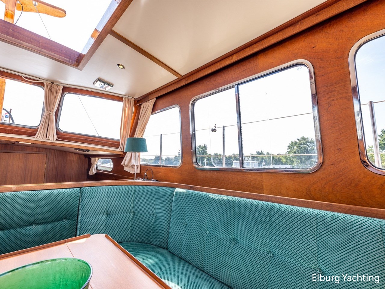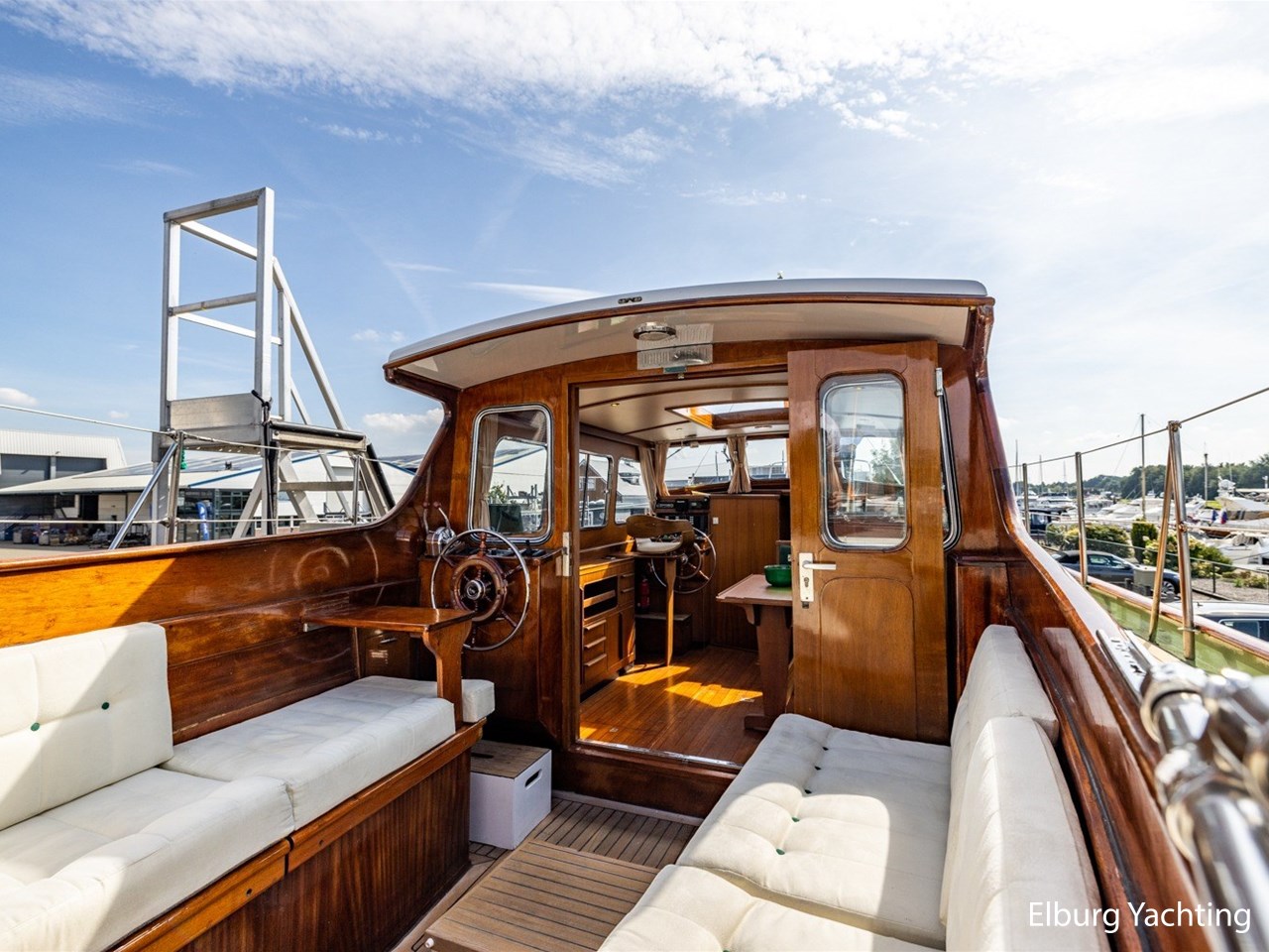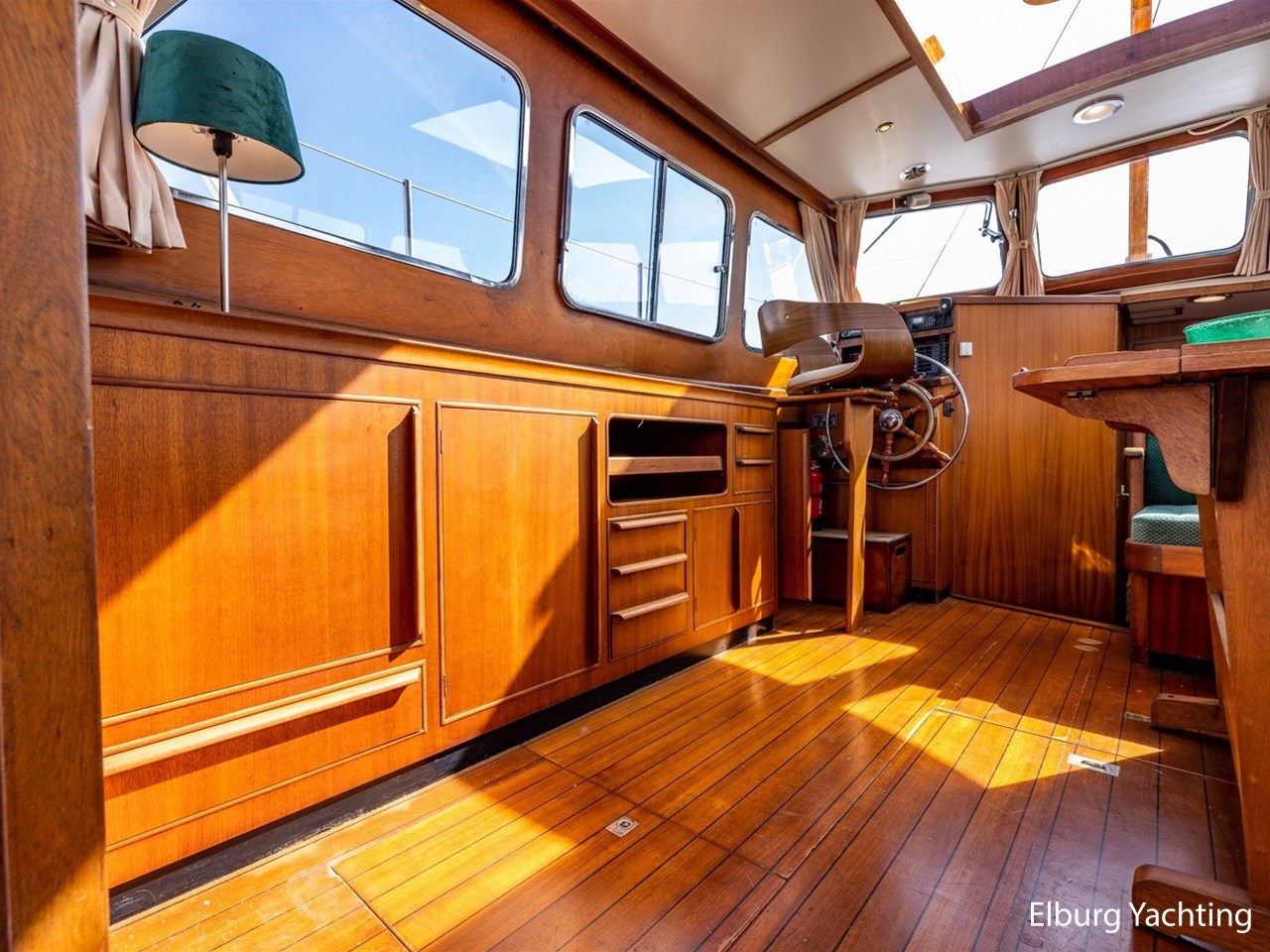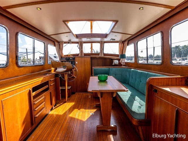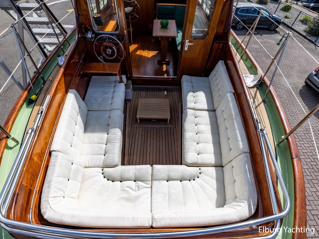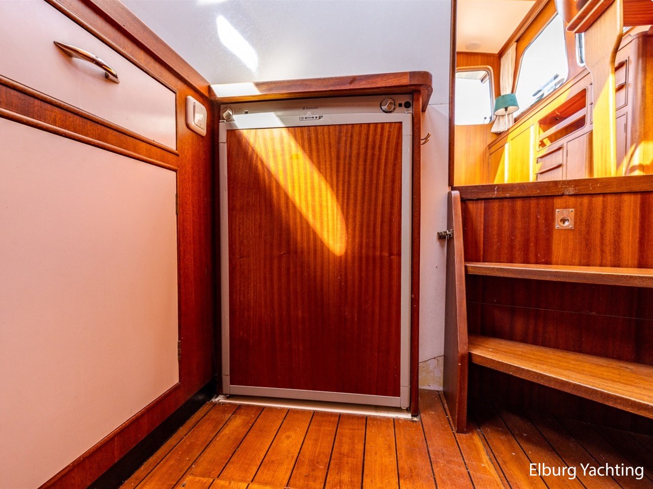 De Trewes Spitsgatkotter 12.00 is in 1968 ontworpen door de beroemde Naval Architect SM van der Meer en gebouwd door Van Dam scheepswerf in Aalsmeer. Het is een uniek, charmant en custom exemplaar met klassieke uitstraling. De open kuip en salon zijn door 2 openslaande deuren met elkaar verbonden, ruime open kuip beschikt over een U-vormige zitting, welke uitermate geschikt is om met gasten een heerlijke dag te genieten op het water, 2e stuurstand buiten is aanwezig, voorhut met 2 vaste kooien en royale hang/legkasten, ruime kombuis aan SB met ingebouwde Electrolux koelkast, r.v.s. aanrechtbak. Aan BB grote toiletruimte aanwezig met vaste wastafel. In salon aan SB ruime L-bank, barkast aan SB, dressoir met diverse kastjes en laden aan BB. Vloeren in voorhut, kombuis en salon afgewerkt met sierlijn teak. Securit glas in koperverchroomde profielen, vaste ramen in achterschot en deuren, middelste zijramen schuivend, 1 voorfront en 1 half klappend raam. Teak met gerubberde naden over stalen dek. Gehele opbouw van 20 mm. mahonie hechthout, daken van 3 x 7 mm Occumé hechthout gelamineerd. Groot schuifluik in salondak. stalen zelflozende kuipvloer, bekleed met teakhout met gerubberde naden. Kuipbanken en -randen geheel in massief mahonie. Kuip voorzien van volledige overdekte tent met zichtvensters. Het schip heeft in 2022 volledige renovatie van teakdek ondergaan, ruime hoge open kuip, 2e stuurstand, r.v.s. bolders, hoge dubbele reling, alle kitranden zijn vernieuwd 2022, klapbare teakhouten mast, ledverlichting door gehele boot, Victron Digital Multi Control, stroomsysteem, veel bergruimte. De doorvaarthoogte met geklapte mast is ca. 2,50m. Het schip afgelopen winterseizoenen binnen gelegen. Voor vragen en/of het maken van een afspraak bent u 7 dagen per week van harte welkom bij Elburg Yachting.