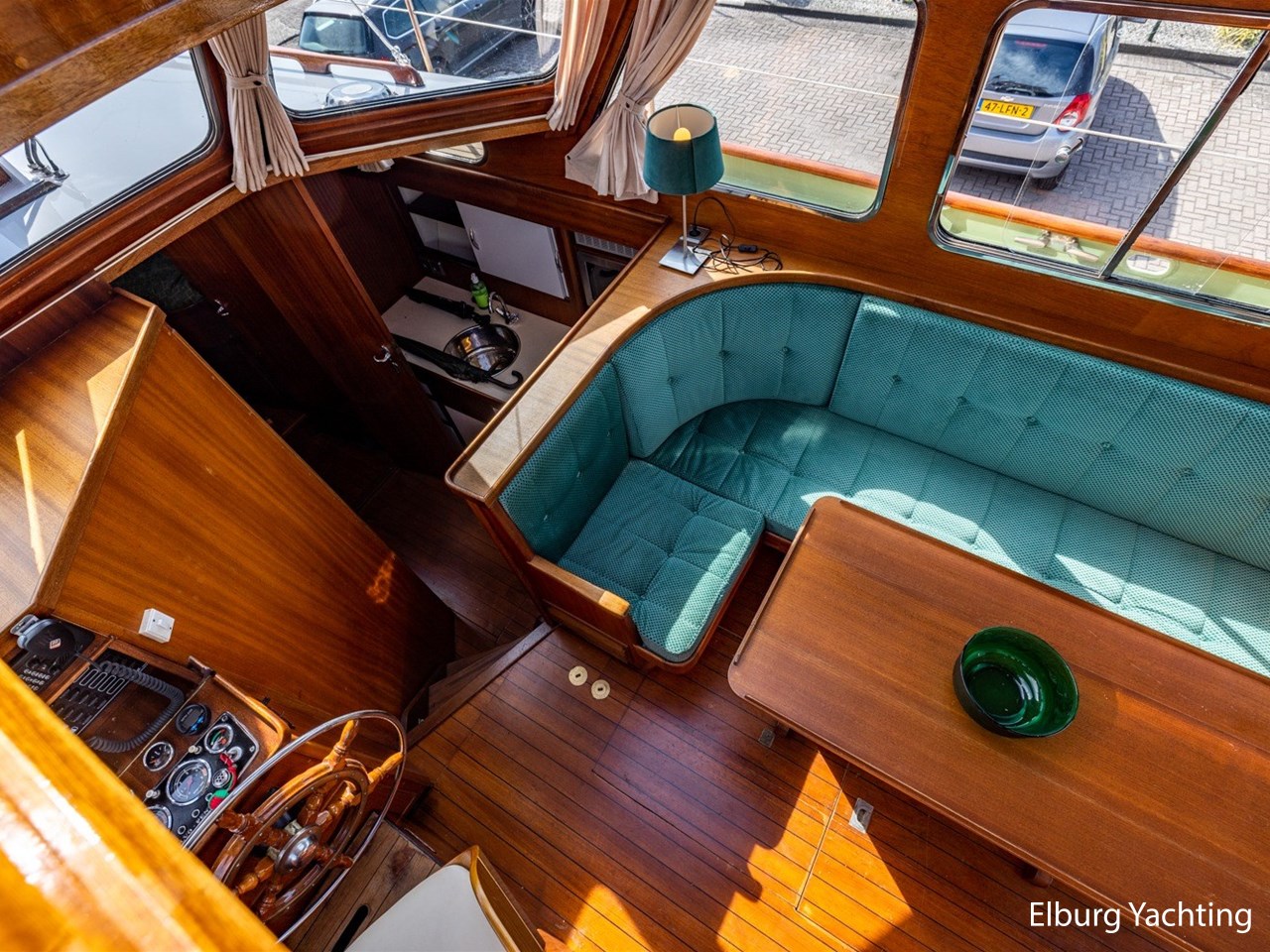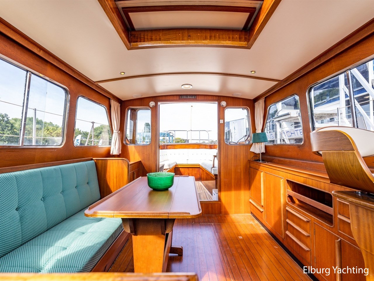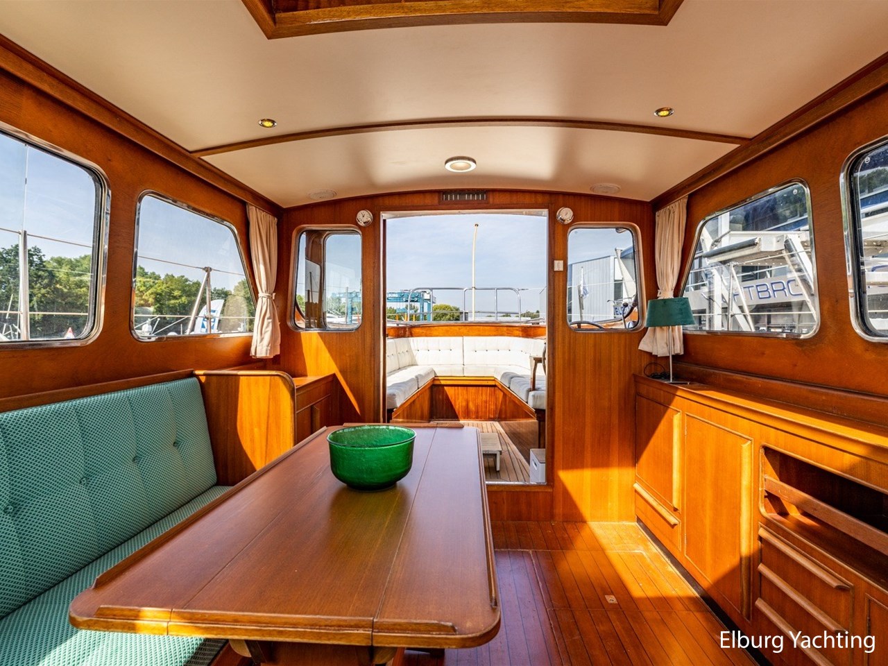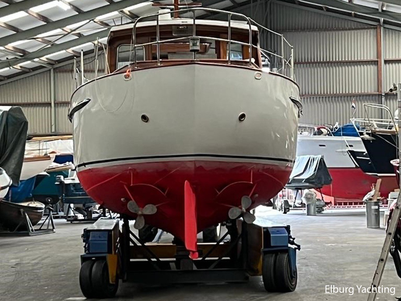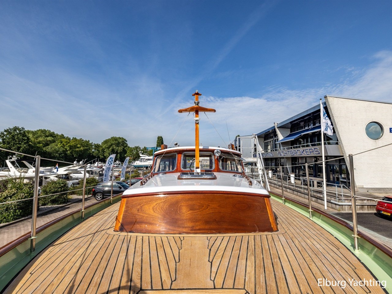 De Trewes Spitsgatkotter 12.00 is in 1968 ontworpen door de beroemde Naval Architect SM van der Meer en gebouwd door Van Dam scheepswerf in Aalsmeer. Het is een uniek, charmant en custom exemplaar met klassieke uitstraling. De open kuip en salon zijn door 2 openslaande deuren met elkaar verbonden, ruime open kuip beschikt over een U-vormige zitting, welke uitermate geschikt is om met gasten een heerlijke dag te genieten op het water, 2e stuurstand buiten is aanwezig, voorhut met 2 vaste kooien en royale hang/legkasten, ruime kombuis aan SB met ingebouwde Electrolux koelkast, r.v.s. aanrechtbak. Aan BB grote toiletruimte aanwezig met vaste wastafel. In salon aan SB ruime L-bank, barkast aan SB, dressoir met diverse kastjes en laden aan BB. Vloeren in voorhut, kombuis en salon afgewerkt met sierlijn teak. Securit glas in koperverchroomde profielen, vaste ramen in achterschot en deuren, middelste zijramen schuivend, 1 voorfront en 1 half klappend raam. Teak met gerubberde naden over stalen dek. Gehele opbouw van 20 mm. mahonie hechthout, daken van 3 x 7 mm Occumé hechthout gelamineerd. Groot schuifluik in salondak. stalen zelflozende kuipvloer, bekleed met teakhout met gerubberde naden. Kuipbanken en -randen geheel in massief mahonie. Kuip voorzien van volledige overdekte tent met zichtvensters. Het schip heeft in 2022 volledige renovatie van teakdek ondergaan, ruime hoge open kuip, 2e stuurstand, r.v.s. bolders, hoge dubbele reling, alle kitranden zijn vernieuwd 2022, klapbare teakhouten mast, ledverlichting door gehele boot, Victron Digital Multi Control, stroomsysteem, veel bergruimte. De doorvaarthoogte met geklapte mast is ca. 2,50m. Het schip afgelopen winterseizoenen binnen gelegen. Voor vragen en/of het maken van een afspraak bent u 7 dagen per week van harte welkom bij Elburg Yachting.