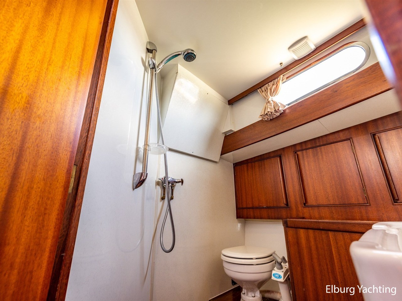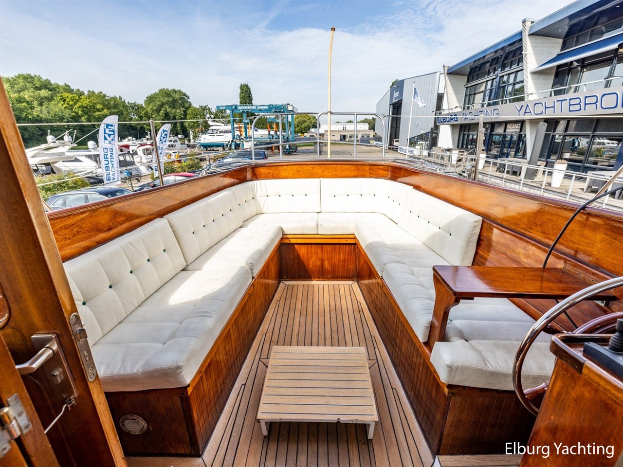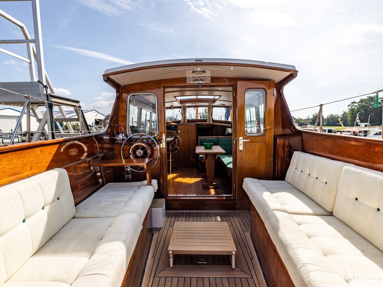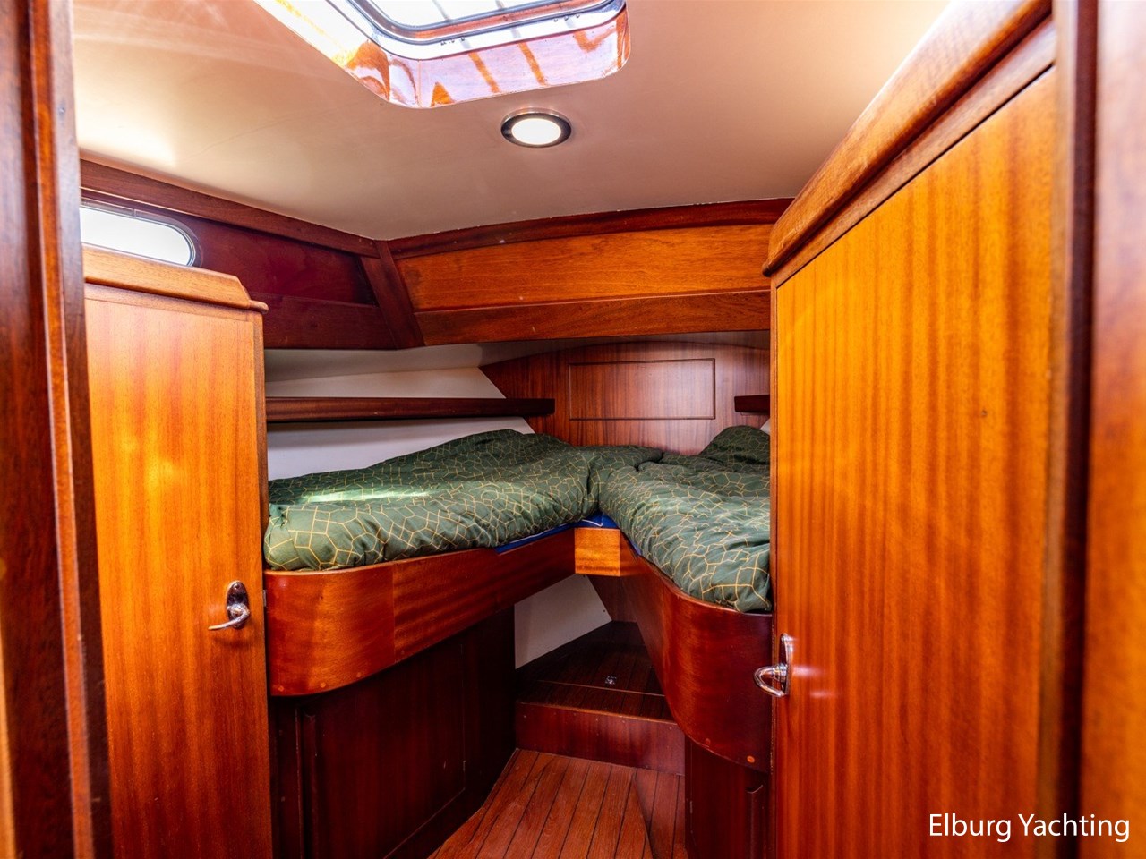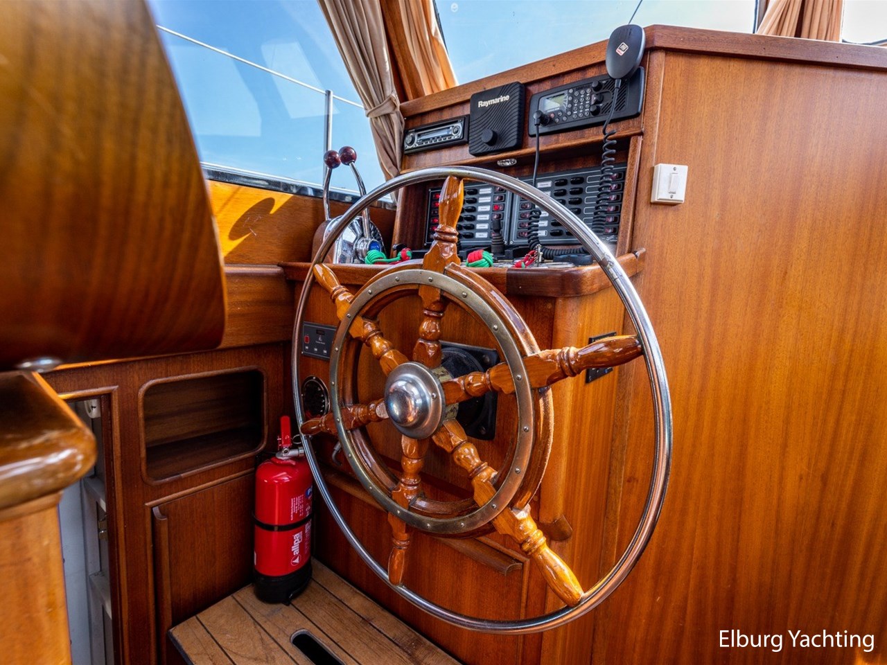 De Trewes Spitsgatkotter 12.00 is in 1968 ontworpen door de beroemde Naval Architect SM van der Meer en gebouwd door Van Dam scheepswerf in Aalsmeer. Het is een uniek, charmant en custom exemplaar met klassieke uitstraling. De open kuip en salon zijn door 2 openslaande deuren met elkaar verbonden, ruime open kuip beschikt over een U-vormige zitting, welke uitermate geschikt is om met gasten een heerlijke dag te genieten op het water, 2e stuurstand buiten is aanwezig, voorhut met 2 vaste kooien en royale hang/legkasten, ruime kombuis aan SB met ingebouwde Electrolux koelkast, r.v.s. aanrechtbak. Aan BB grote toiletruimte aanwezig met vaste wastafel. In salon aan SB ruime L-bank, barkast aan SB, dressoir met diverse kastjes en laden aan BB. Vloeren in voorhut, kombuis en salon afgewerkt met sierlijn teak. Securit glas in koperverchroomde profielen, vaste ramen in achterschot en deuren, middelste zijramen schuivend, 1 voorfront en 1 half klappend raam. Teak met gerubberde naden over stalen dek. Gehele opbouw van 20 mm. mahonie hechthout, daken van 3 x 7 mm Occumé hechthout gelamineerd. Groot schuifluik in salondak. stalen zelflozende kuipvloer, bekleed met teakhout met gerubberde naden. Kuipbanken en -randen geheel in massief mahonie. Kuip voorzien van volledige overdekte tent met zichtvensters. Het schip heeft in 2022 volledige renovatie van teakdek ondergaan, ruime hoge open kuip, 2e stuurstand, r.v.s. bolders, hoge dubbele reling, alle kitranden zijn vernieuwd 2022, klapbare teakhouten mast, ledverlichting door gehele boot, Victron Digital Multi Control, stroomsysteem, veel bergruimte. De doorvaarthoogte met geklapte mast is ca. 2,50m. Het schip afgelopen winterseizoenen binnen gelegen. Voor vragen en/of het maken van een afspraak bent u 7 dagen per week van harte welkom bij Elburg Yachting.