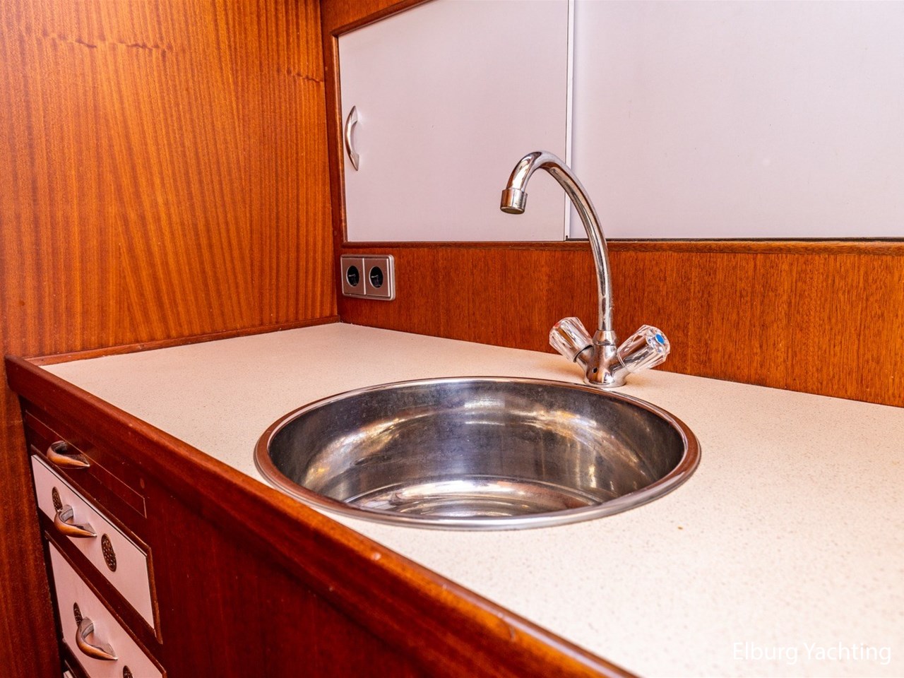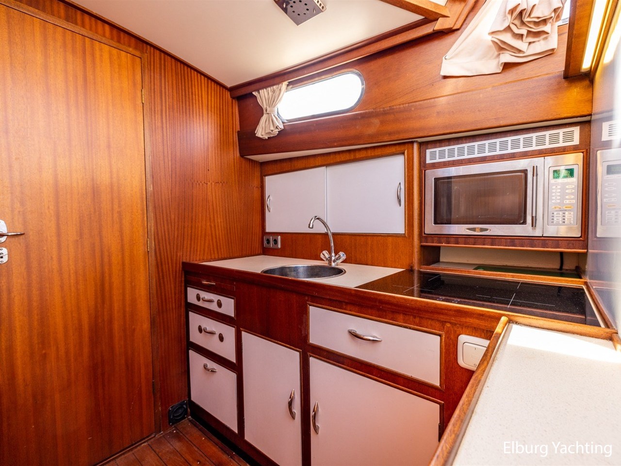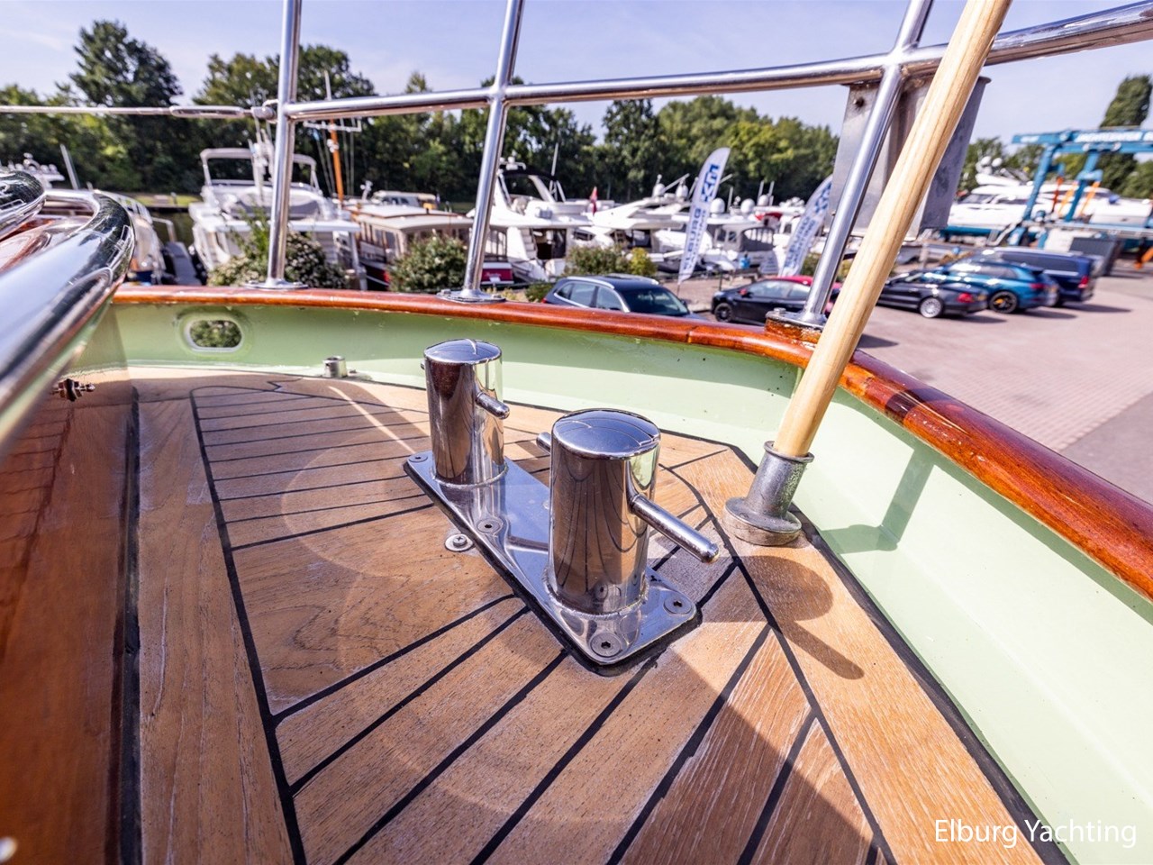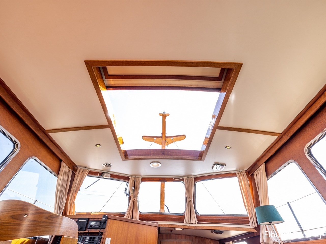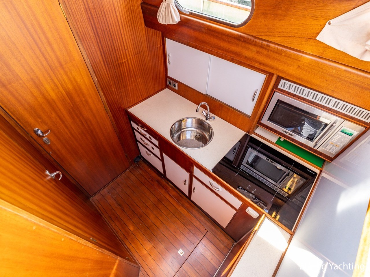 De Trewes Spitsgatkotter 12.00 is in 1968 ontworpen door de beroemde Naval Architect SM van der Meer en gebouwd door Van Dam scheepswerf in Aalsmeer. Het is een uniek, charmant en custom exemplaar met klassieke uitstraling. De open kuip en salon zijn door 2 openslaande deuren met elkaar verbonden, ruime open kuip beschikt over een U-vormige zitting, welke uitermate geschikt is om met gasten een heerlijke dag te genieten op het water, 2e stuurstand buiten is aanwezig, voorhut met 2 vaste kooien en royale hang/legkasten, ruime kombuis aan SB met ingebouwde Electrolux koelkast, r.v.s. aanrechtbak. Aan BB grote toiletruimte aanwezig met vaste wastafel. In salon aan SB ruime L-bank, barkast aan SB, dressoir met diverse kastjes en laden aan BB. Vloeren in voorhut, kombuis en salon afgewerkt met sierlijn teak. Securit glas in koperverchroomde profielen, vaste ramen in achterschot en deuren, middelste zijramen schuivend, 1 voorfront en 1 half klappend raam. Teak met gerubberde naden over stalen dek. Gehele opbouw van 20 mm. mahonie hechthout, daken van 3 x 7 mm Occumé hechthout gelamineerd. Groot schuifluik in salondak. stalen zelflozende kuipvloer, bekleed met teakhout met gerubberde naden. Kuipbanken en -randen geheel in massief mahonie. Kuip voorzien van volledige overdekte tent met zichtvensters. Het schip heeft in 2022 volledige renovatie van teakdek ondergaan, ruime hoge open kuip, 2e stuurstand, r.v.s. bolders, hoge dubbele reling, alle kitranden zijn vernieuwd 2022, klapbare teakhouten mast, ledverlichting door gehele boot, Victron Digital Multi Control, stroomsysteem, veel bergruimte. De doorvaarthoogte met geklapte mast is ca. 2,50m. Het schip afgelopen winterseizoenen binnen gelegen. Voor vragen en/of het maken van een afspraak bent u 7 dagen per week van harte welkom bij Elburg Yachting.