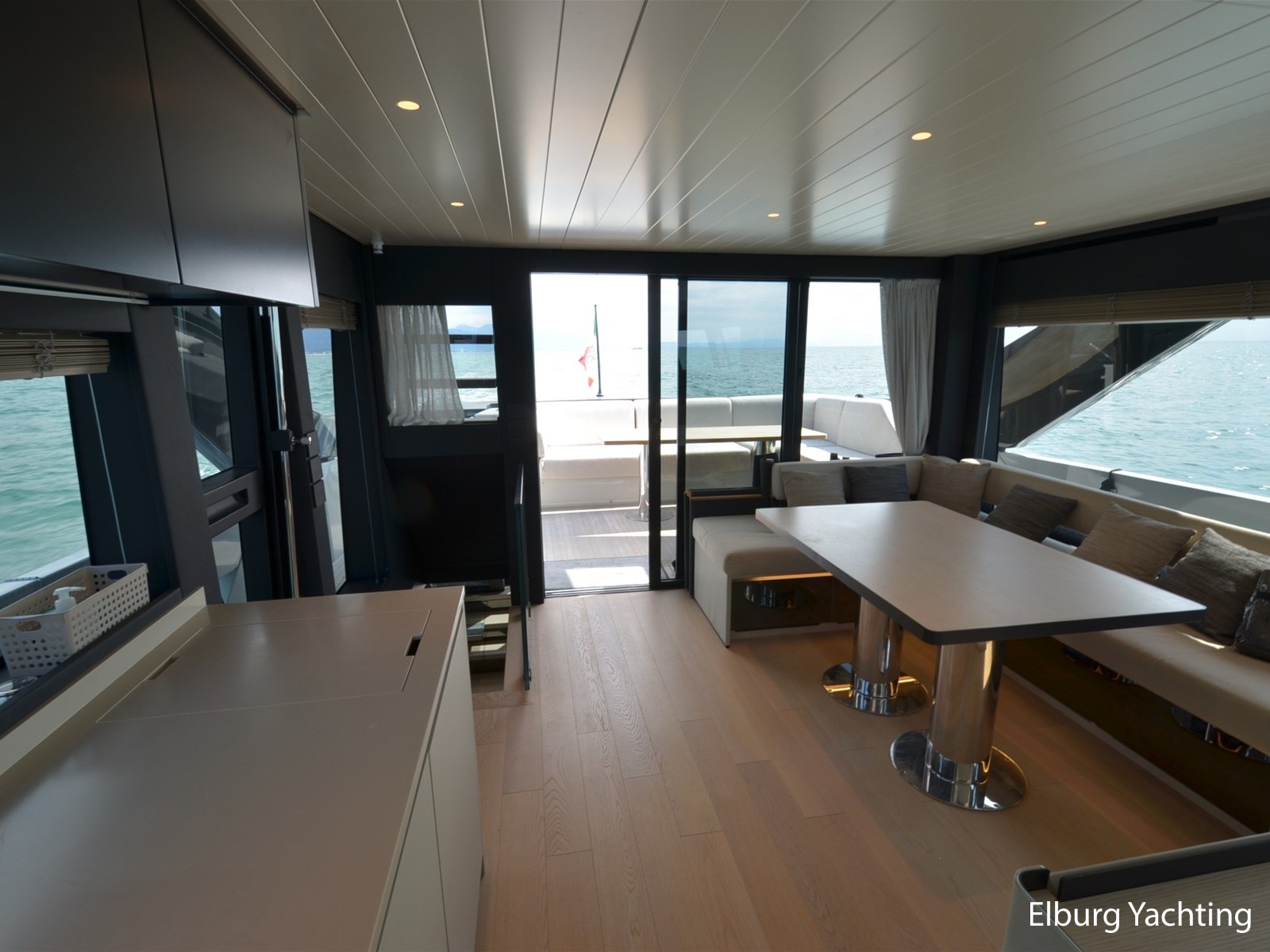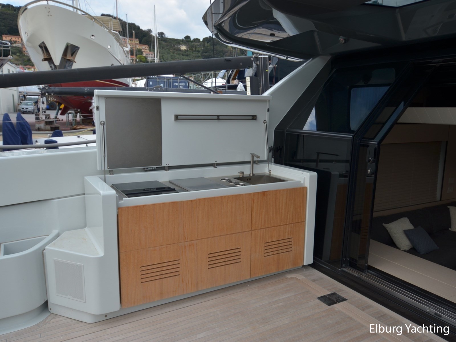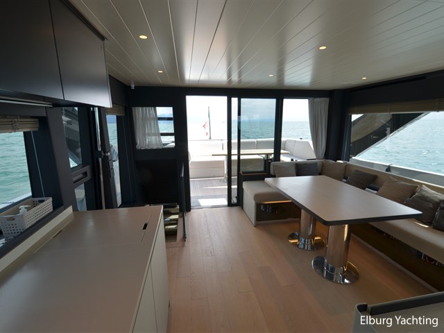 eigenaars- en gastenbadkamers, voor de buitenbekleding is gebruik gemaakt van Premium Roda stoffen kussens, zonneschermen met carbon stokken, hydraulisch liftsysteem voor tewaterlating van tender, pantograaf loopplank, Seakeeper 18 gyroscopische stabilisator, sun deck kussens met verstelbare rugleuningen, inklapbare carbon douche achterdek, opgewaardeerde bolders, vernieuwde keuken met verschuifbare voorraadmanden, combimagnetron, custom built laden met verschuifbare op bovendek , extra kastruimte en customized salon meubilair, VIP cabine garderoberek, eigenaars-suite met vergrote wastafel, customized garderobe, crew-area met grotere wc, de derde hut heeft verschuifbare bedden, er is direct toegang tot de royale eigenaarshut. Ultra UA60 anker, Garmin Panoptix PS60 sonar, Surround View, Flir M364 nachtzicht camera, geavanceerde Wi-Fi met 6 toegangspunten & Starlink, Garmin afstandsbediening in de crewcabine, auto-start generator systeem. Het bewakingssysteem bestaat uit 4 vaste camera`s (2 in de machinekamer,1 in het stuurhuis en 1 bij de ankerkluis), watermaker Idromar MC4J ( 210Lt per hour , 5000 lt per day). Dit jacht biedt comfort en is gereed voor het nieuwe vaarseizoen.