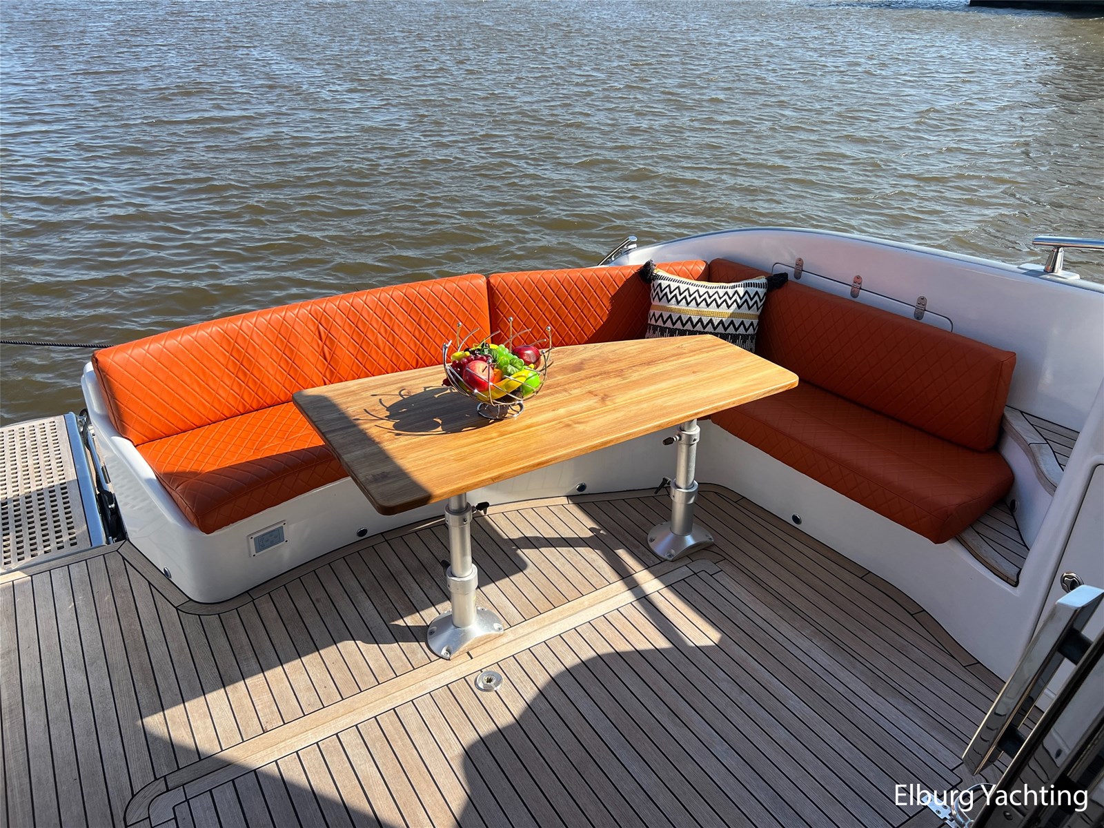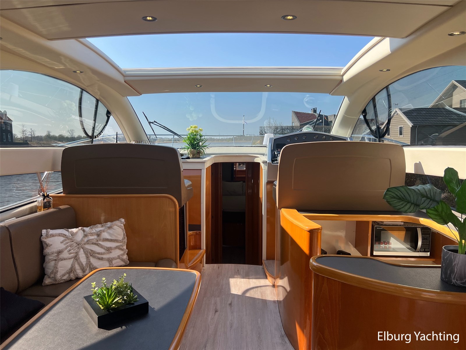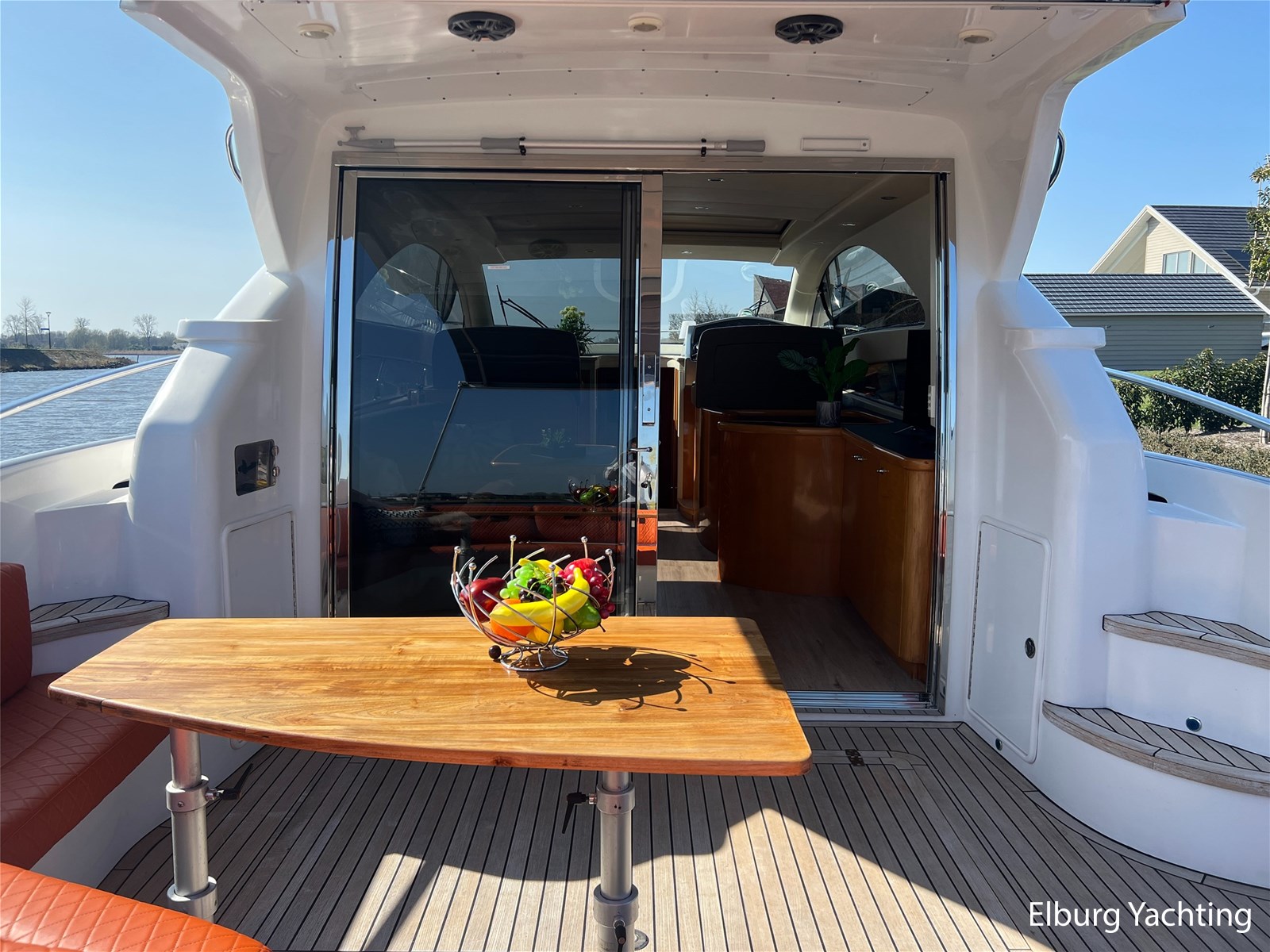 Deze Genesis 50 HT is een bijzondere verschijning op het water. Door haar mooi getekende profiel is het jacht zeer mooi in proportie. Het schip beschikt over een vaste r.v.s. deur waardoor de salon gemakkelijk is af te sluiten. Daarnaast biedt dit de mogelijkheid om de salon, en het achterdek als een groot geheel bij elkaar te voegen. Dit schip wordt verder geleverd met o.a: vernieuwde Raymarine navigatie apparatuur (2023), verlichting aan boord veranderd naar LED (2024), salonbank welke om te bouwen is naar een 2 persoons bed, Hydronautica afstandsbediening (2024), motorservice (2025), nieuwe kussen set met Bentley stiksels in kuip en op zonnedek (2024), Miele ijskast met vriesvak (2024), Bose geluidsinstallatie, onderwaterverlichting, vrije doorloop naar zwemplatform, 2 x zwemtrap, hydraulisch machinekamer luik, Bennet trimtabs, laminaat vloer, groot schuifdak in salon, grote gebogen voorruit wat zorgt voor veel lichtinval, luifel om uit de zon in de kuip te kunnen zitten.