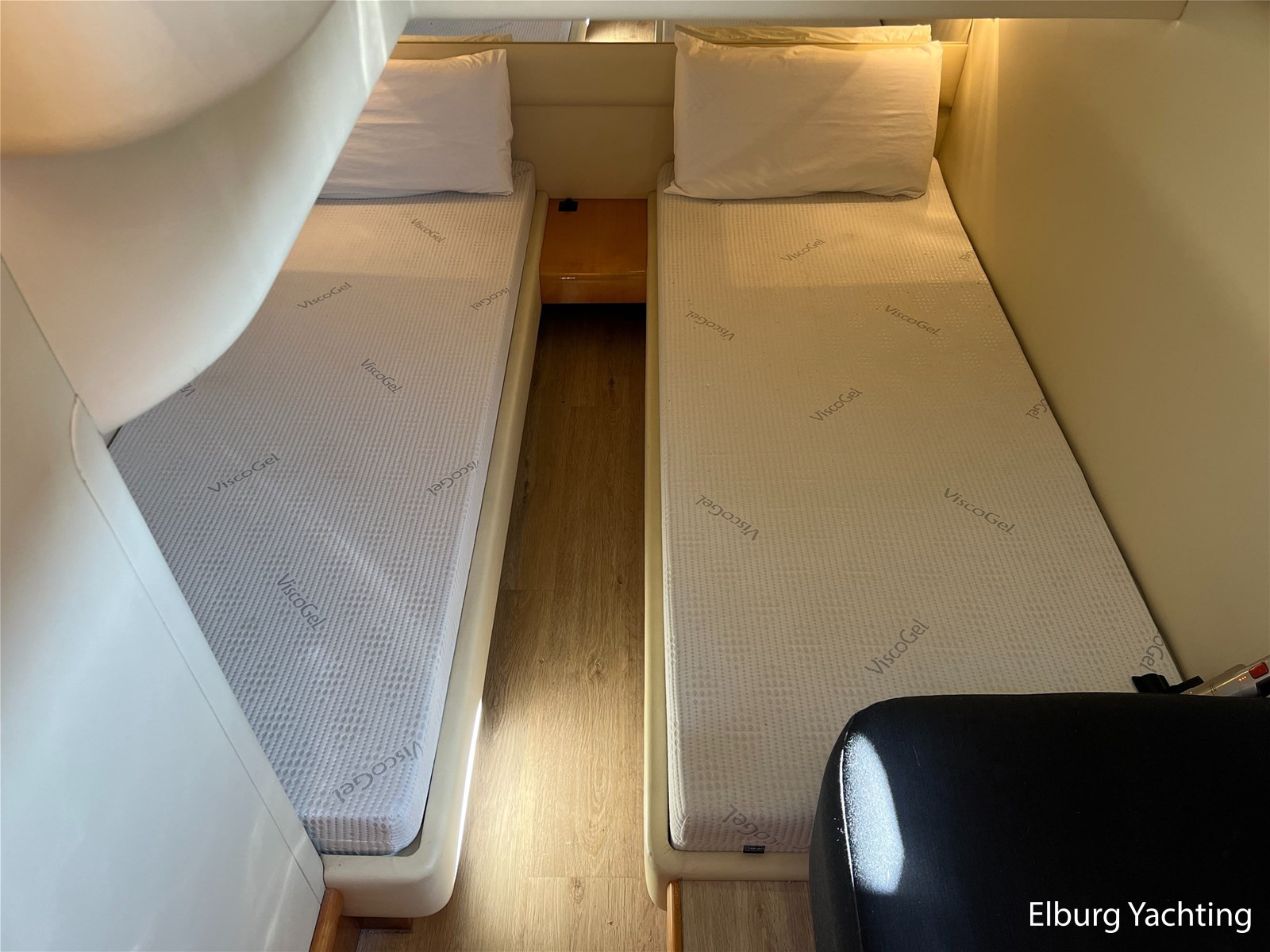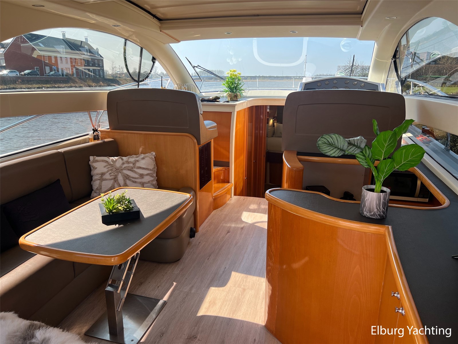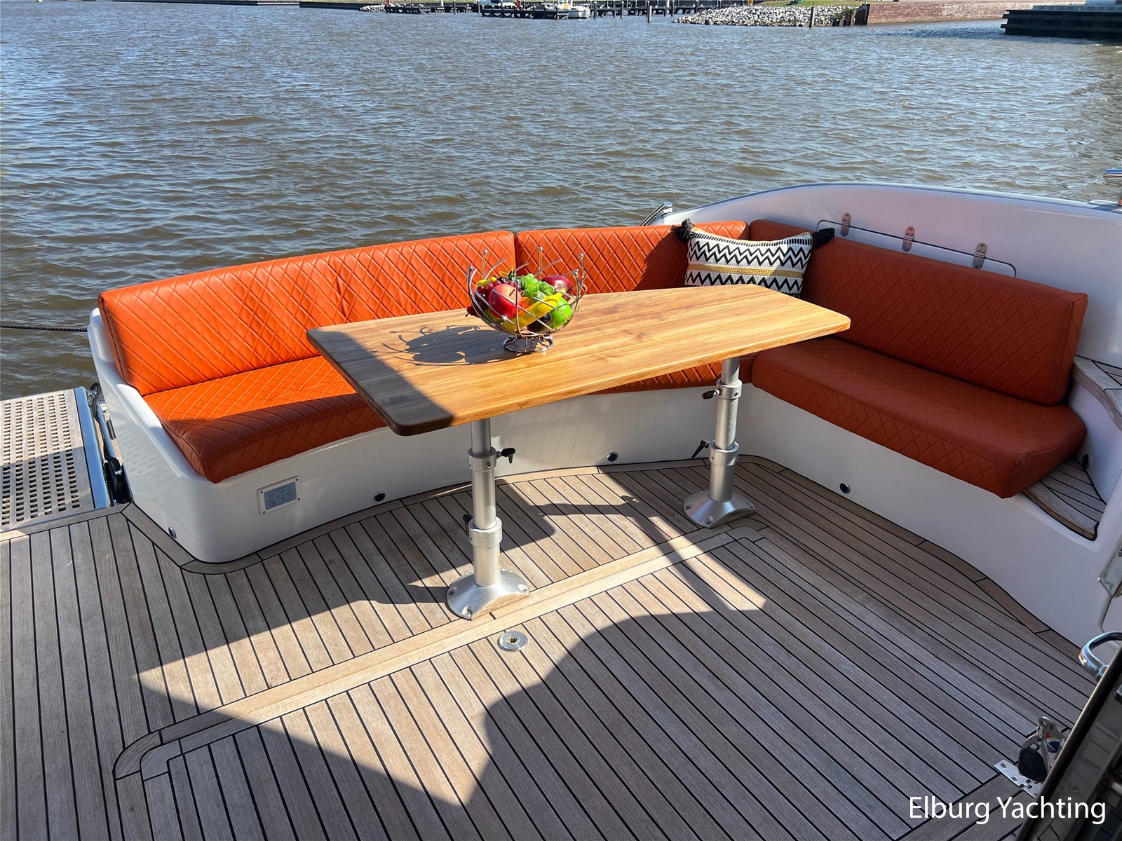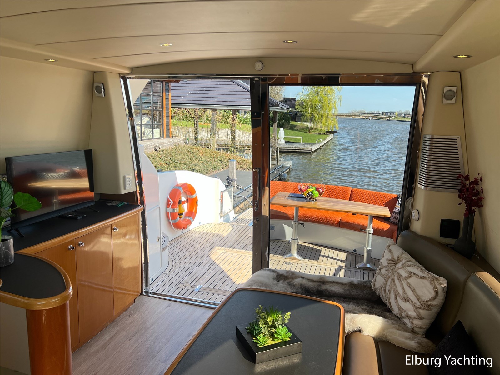 Deze Genesis 50 HT is een bijzondere verschijning op het water. Door haar mooi getekende profiel is het jacht zeer mooi in proportie. Het schip beschikt over een vaste r.v.s. deur waardoor de salon gemakkelijk is af te sluiten. Daarnaast biedt dit de mogelijkheid om de salon, en het achterdek als een groot geheel bij elkaar te voegen. Dit schip wordt verder geleverd met o.a: vernieuwde Raymarine navigatie apparatuur (2023), verlichting aan boord veranderd naar LED (2024), salonbank welke om te bouwen is naar een 2 persoons bed, Hydronautica afstandsbediening (2024), motorservice (2025), nieuwe kussen set met Bentley stiksels in kuip en op zonnedek (2024), Miele ijskast met vriesvak (2024), Bose geluidsinstallatie, onderwaterverlichting, vrije doorloop naar zwemplatform, 2 x zwemtrap, hydraulisch machinekamer luik, Bennet trimtabs, laminaat vloer, groot schuifdak in salon, grote gebogen voorruit wat zorgt voor veel lichtinval, luifel om uit de zon in de kuip te kunnen zitten.