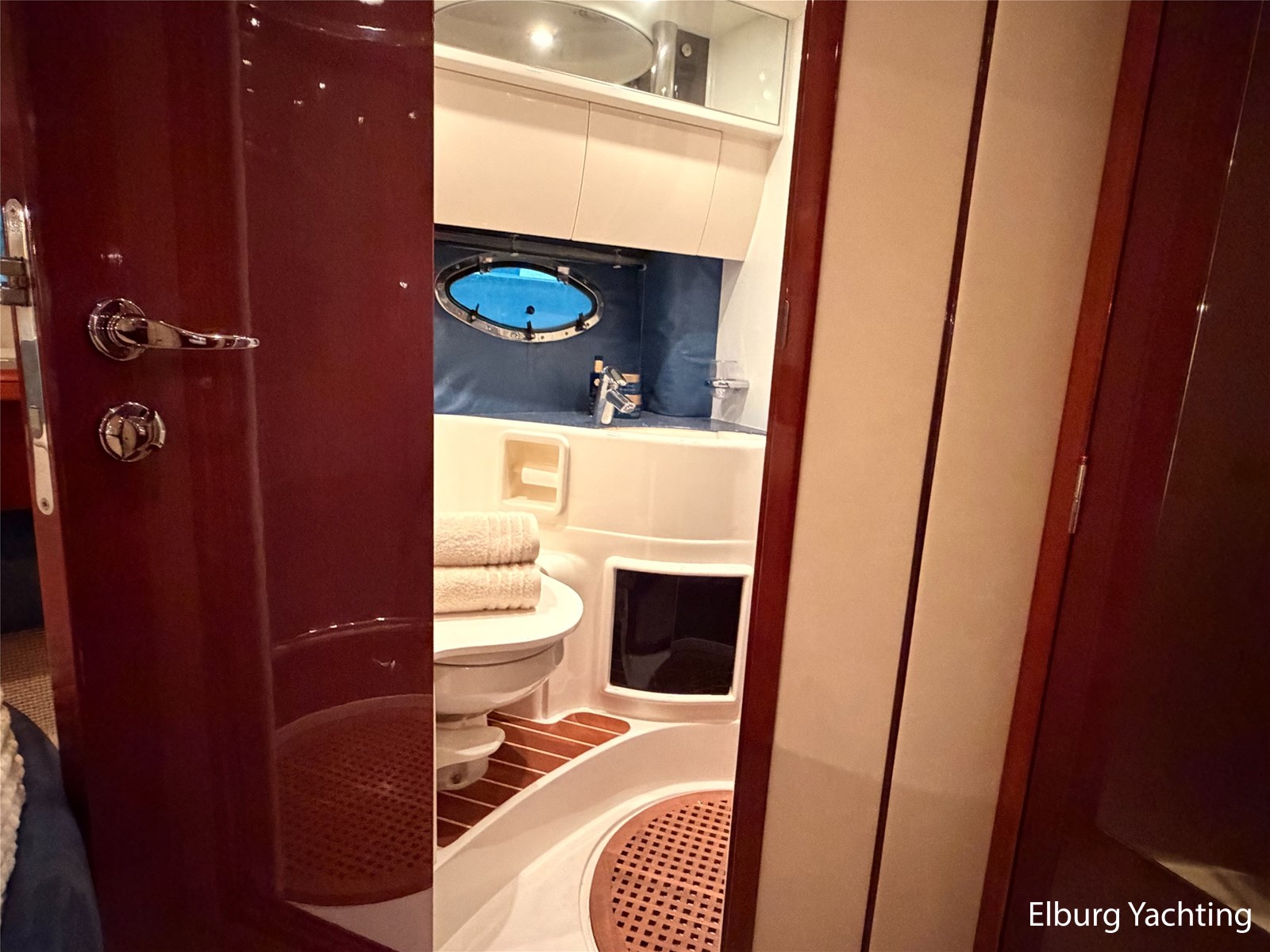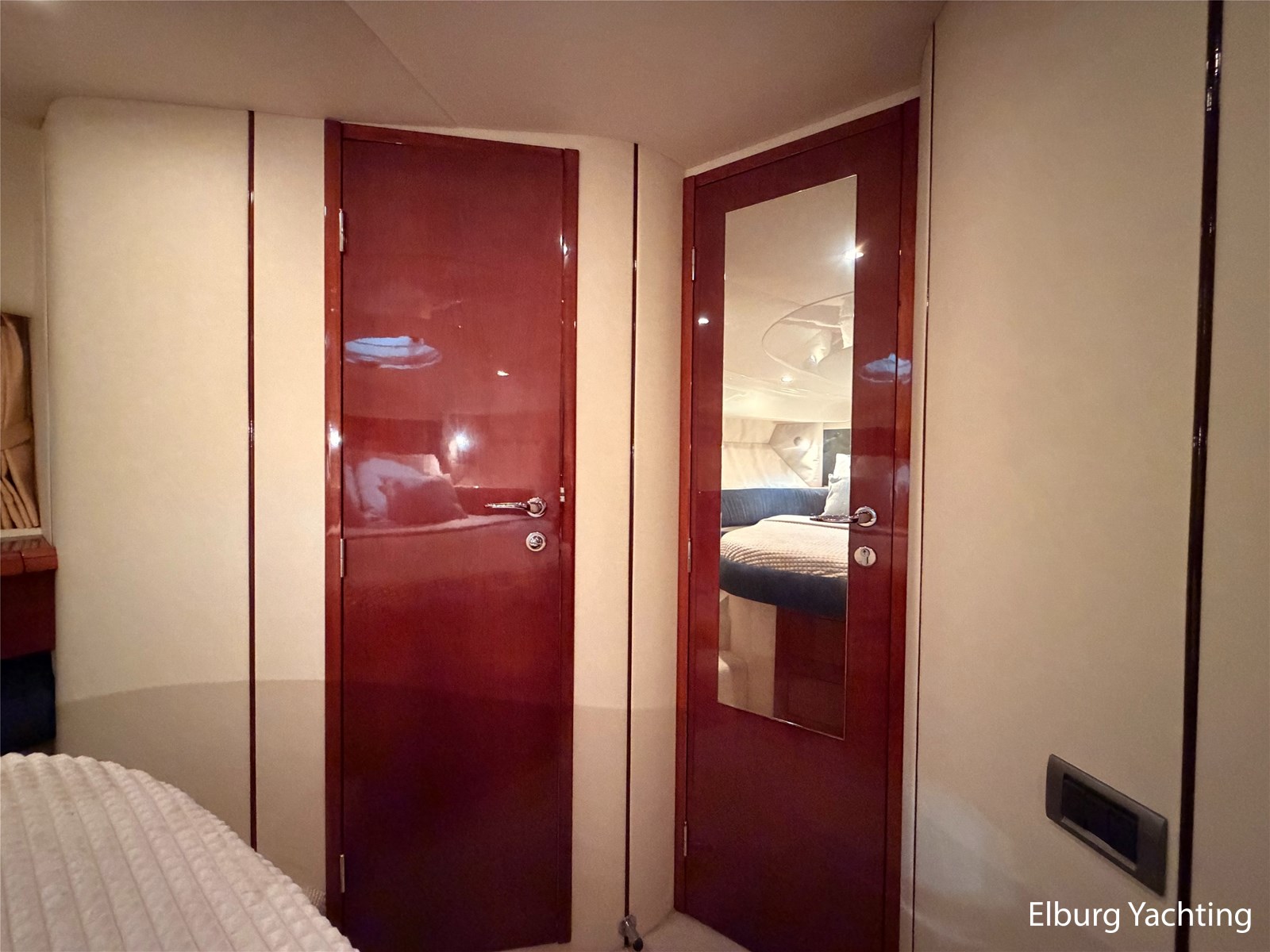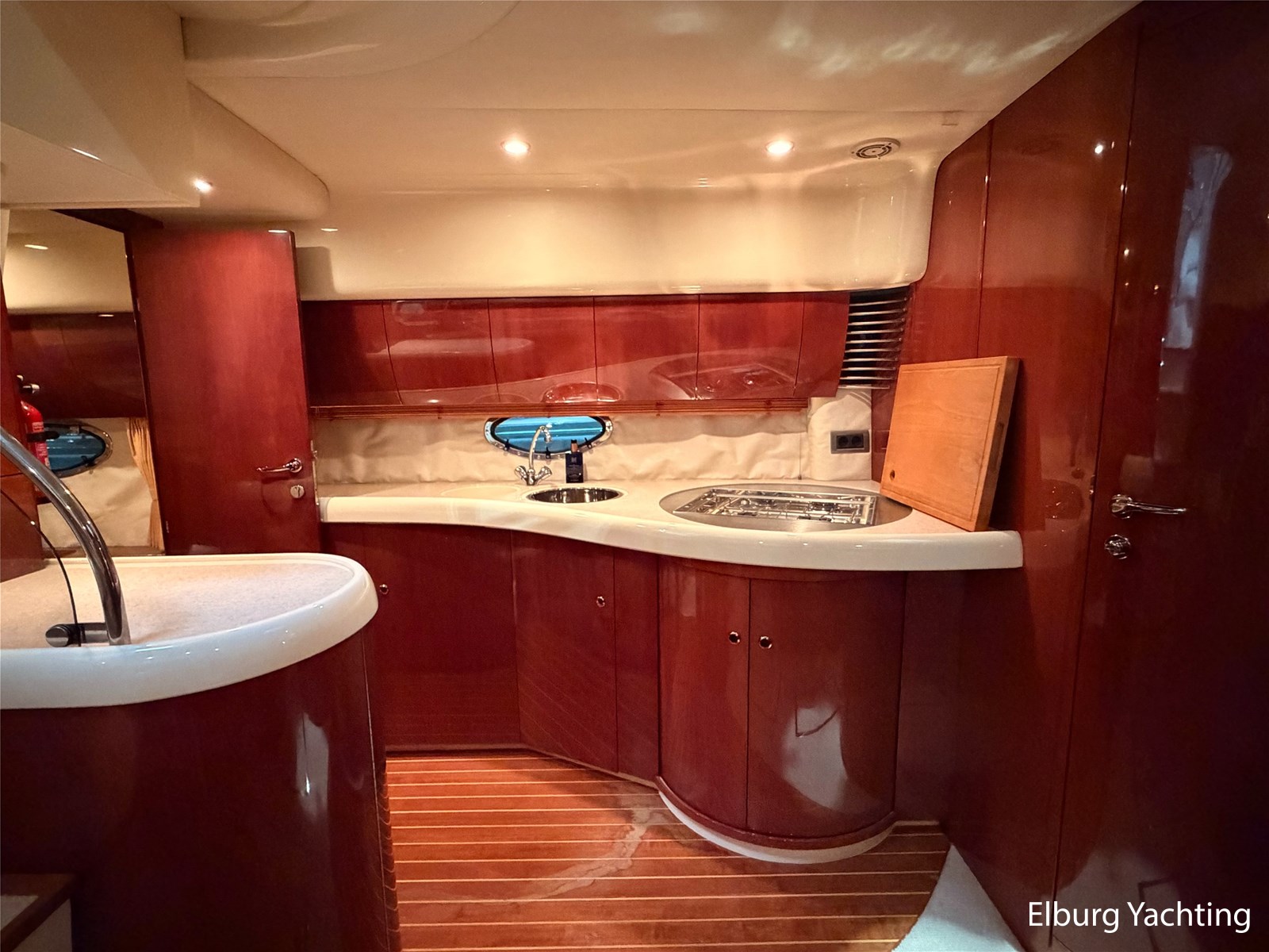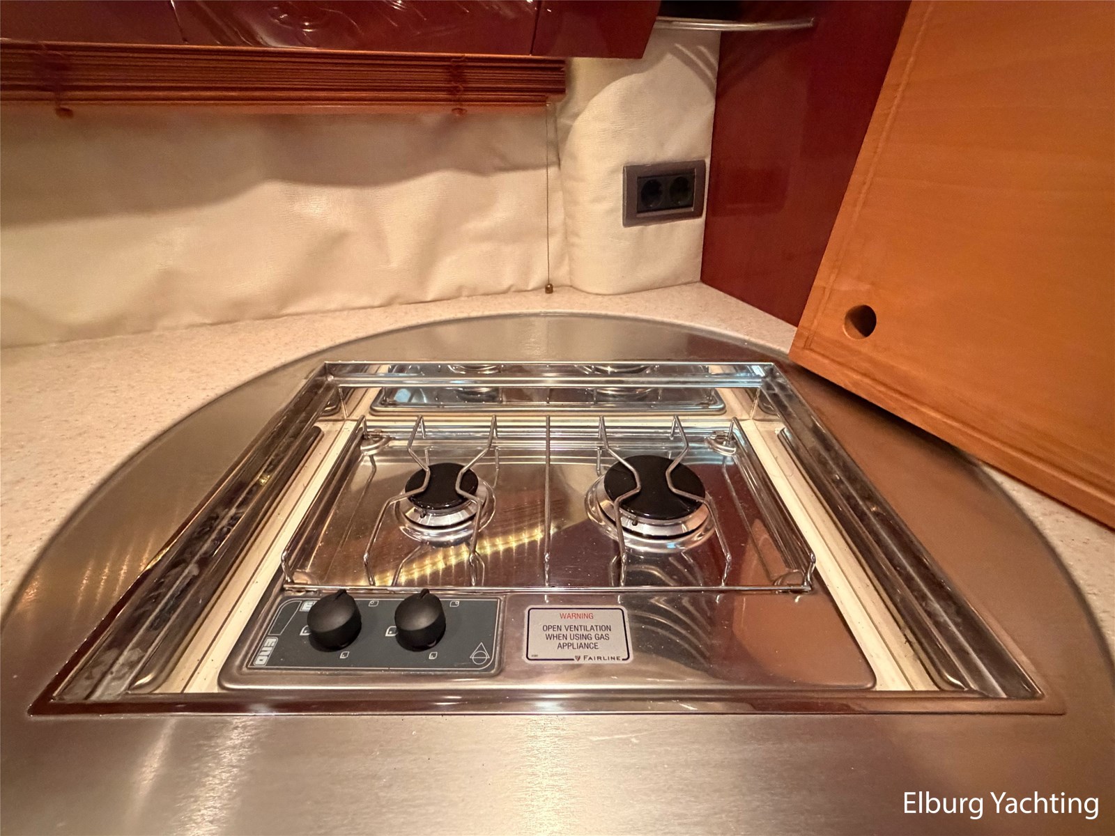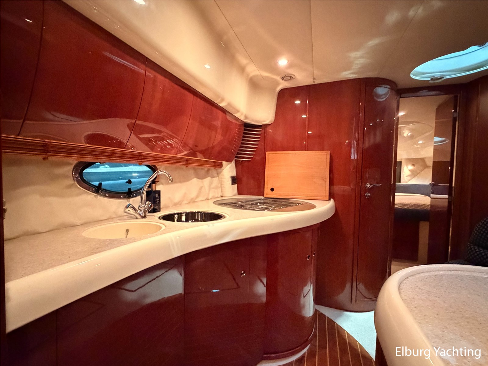 The Fairline Targa 43 is a true all-rounder in terms of its practical layout both above and below decks, but also with its sailing characteristics, this ship feels at home on many waters. This Fairline Targa 43 is propulsed by two powerful Volvo Penta engines with 480hp each and a solid transmission by propeller shafts. In the transom of the ship is a dinghy garage integrated with an electrically operated hatch. There is also a retractable Opacmare gangway available. The cockpit has leather cushions and a wetbar with sink/fridge/grill. The helm has a 2-person pilot bench. Below deck is a U-shaped dinette table situated with an open kitchen. In the bow you will find the owner's cabin with a 2-person French bed and private bathroom (toilet/shower) en-suite. The second toilet/shower is located centrally in the boat and can also be used as the day toilet. The guest cabin is found amidships and has a 2 x single bed. The engine room is accessible through the open cockpit. This Fairline Targa 43 is equipped with: Full tent around cockpit with extricable parts, removable sun bed on foredeck and aft deck, screens for portholes, trim tabs, multiple storage options in the open cockpit and aft under the sun bed. Complete upholstery in the open cockpit + sunbed renewed in 2022. Teak deck in the open cockpit and on bathing platform renewed in 2022. Maintenance on both main engines carried out in 11/2023.