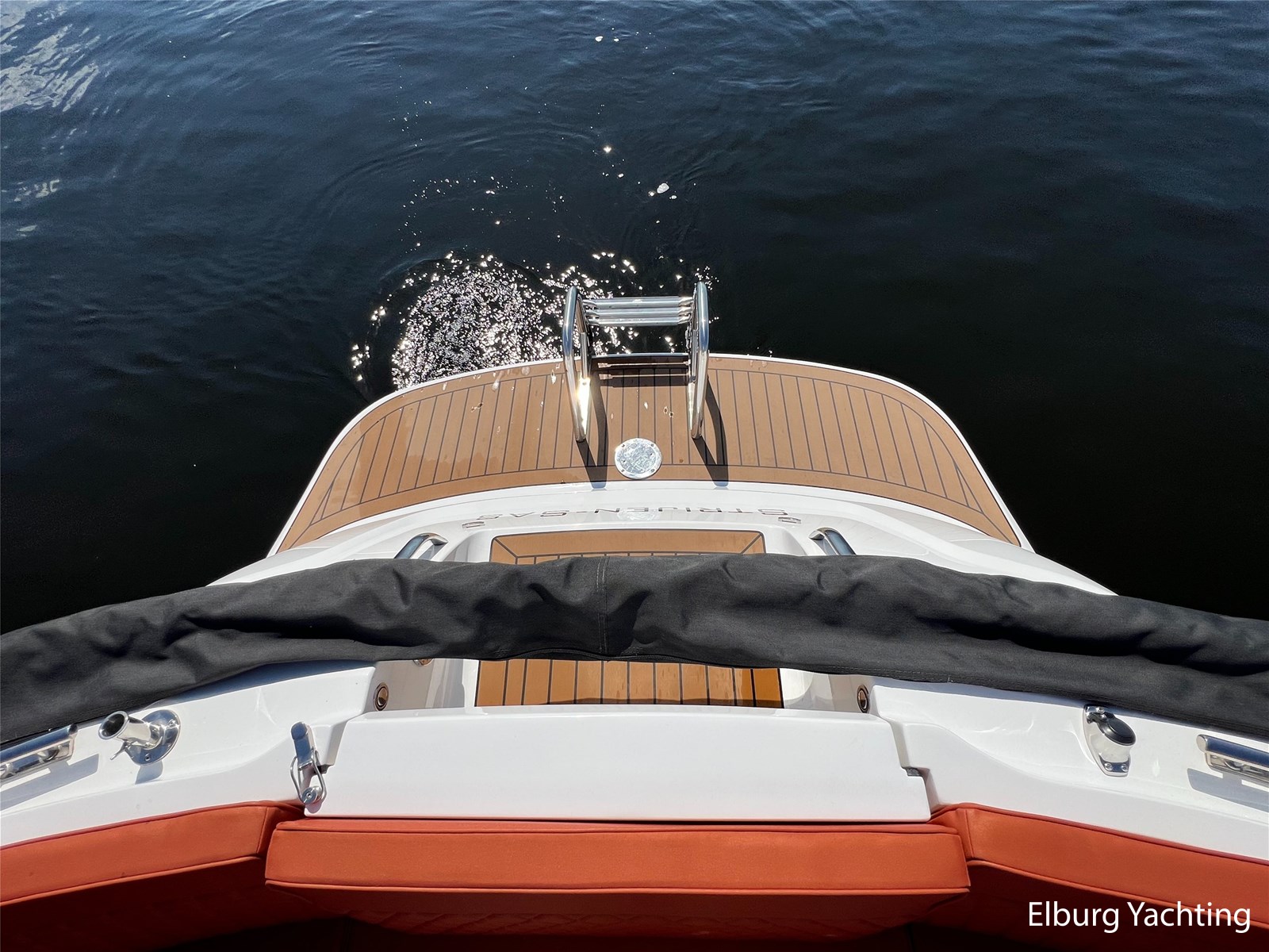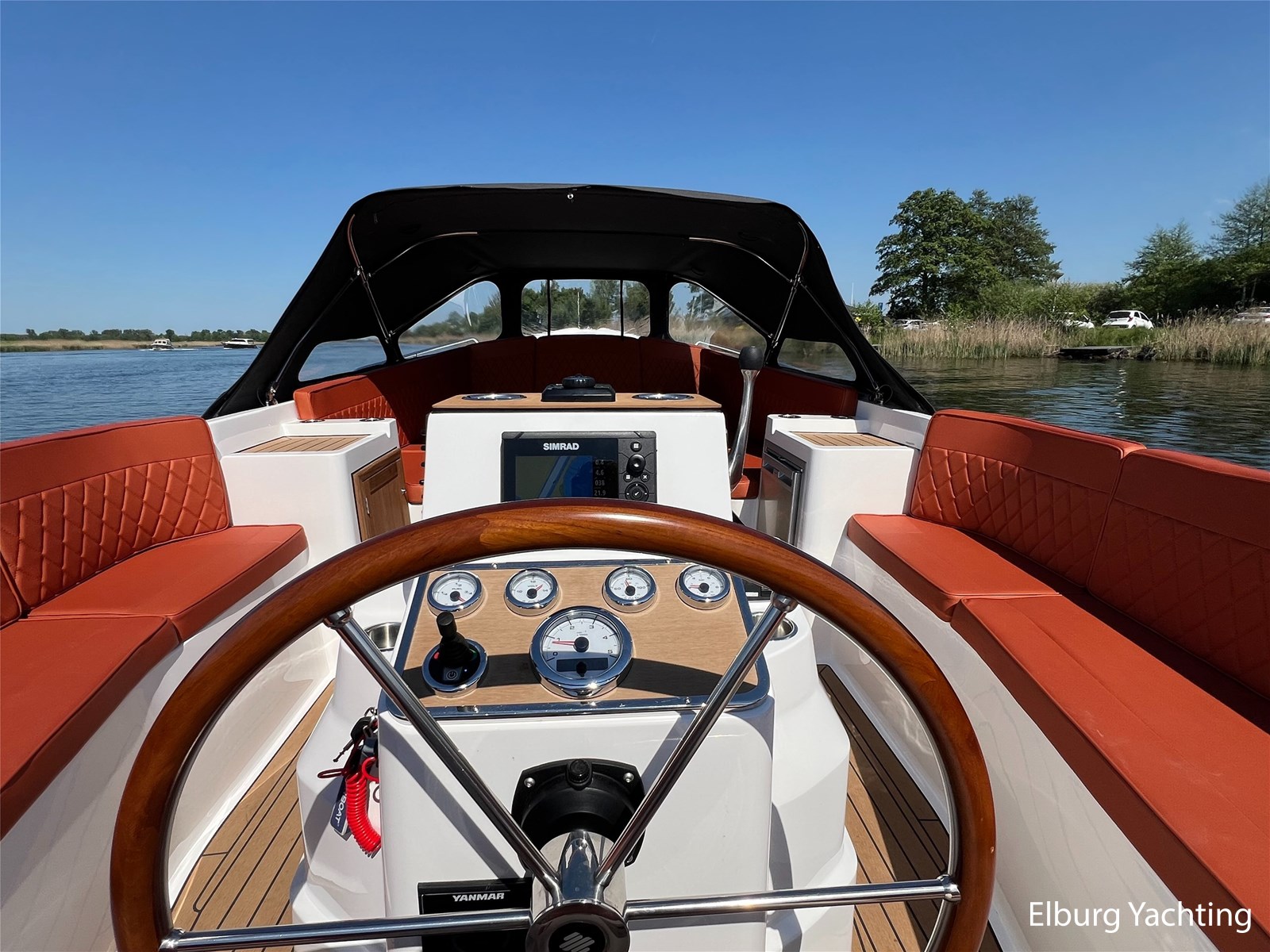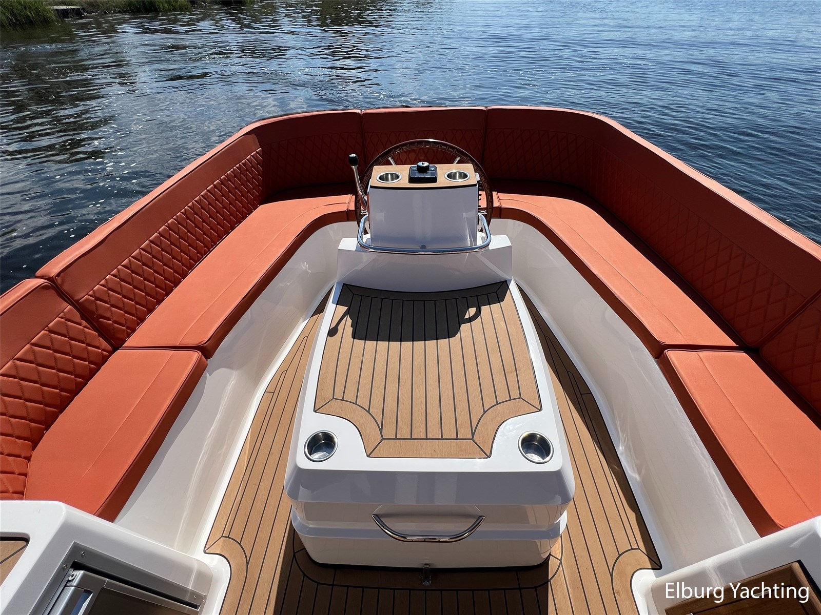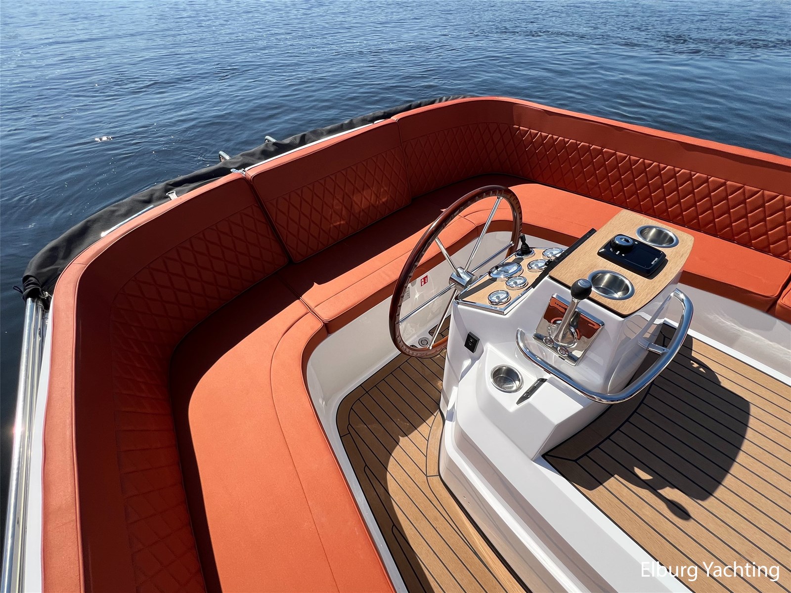 Deze prachtige Interboat Intender 780 wordt aangeboden door haar eerste eigenaar die haar wegens tijdgebrek verkoopt. Deze sportieve sloep wordt aangedreven door de krachtigste dieselvariant: De Yanmar 4 cylinder 170pk met slechts ca. 80 draaiuren. Deze intender is onder andere voorzien van een elektrische boegschroef, een bimini-top, zwemplateau met brede zwemtrap en beugels, voor en achter voorzien van een ruime rondzit welke aan de voorzijde dichtgelegd kan worden waardoor een slaapplek gerealiseerd wordt. Verder is de sloep voorzien van een Jabsco pomptoilet in afgesloten ruimte, Esthec op het dek, de vloer, de instap en op de motorkist, vergroot zonnebed, kuiptafel, r.v.s. bekerhouders, koelkast met vriesvak, buiskap met afdekzeil (volledig af te dichten), een Zipwake Trimcontrol systeem en ten behoeve van de navigatie is deze Intender uitgerust met een Simrad Cruise 5 plotter.