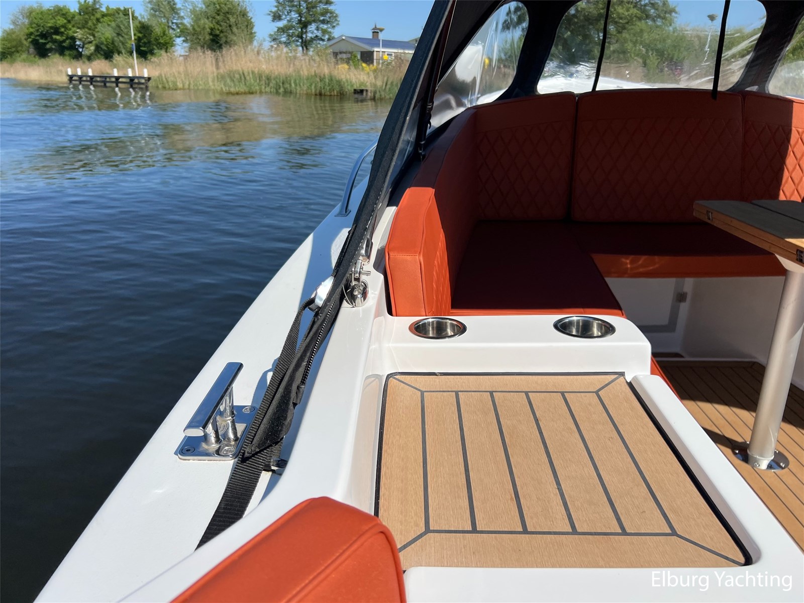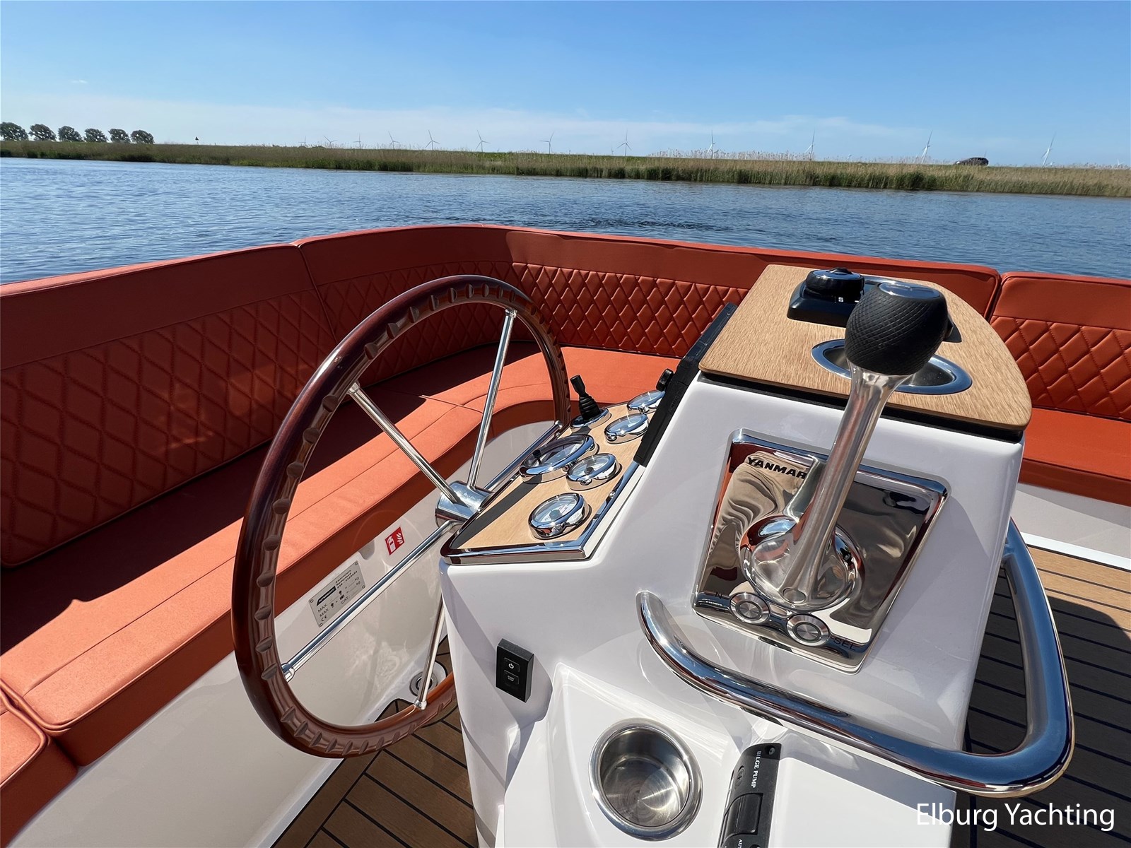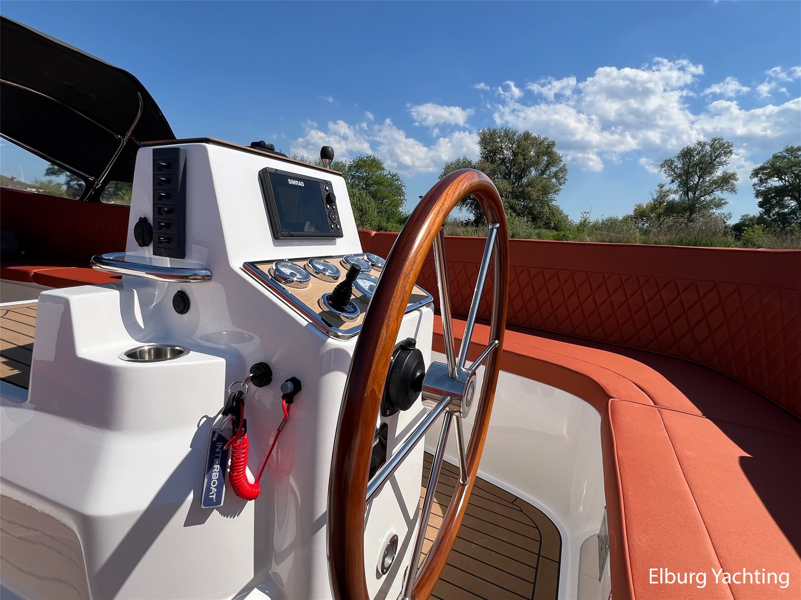 Deze prachtige Interboat Intender 780 wordt aangeboden door haar eerste eigenaar die haar wegens tijdgebrek verkoopt. Deze sportieve sloep wordt aangedreven door de krachtigste dieselvariant: De Yanmar 4 cylinder 170pk met slechts ca. 80 draaiuren. Deze intender is onder andere voorzien van een elektrische boegschroef, een bimini-top, zwemplateau met brede zwemtrap en beugels, voor en achter voorzien van een ruime rondzit welke aan de voorzijde dichtgelegd kan worden waardoor een slaapplek gerealiseerd wordt. Verder is de sloep voorzien van een Jabsco pomptoilet in afgesloten ruimte, Esthec op het dek, de vloer, de instap en op de motorkist, vergroot zonnebed, kuiptafel, r.v.s. bekerhouders, koelkast met vriesvak, buiskap met afdekzeil (volledig af te dichten), een Zipwake Trimcontrol systeem en ten behoeve van de navigatie is deze Intender uitgerust met een Simrad Cruise 5 plotter.