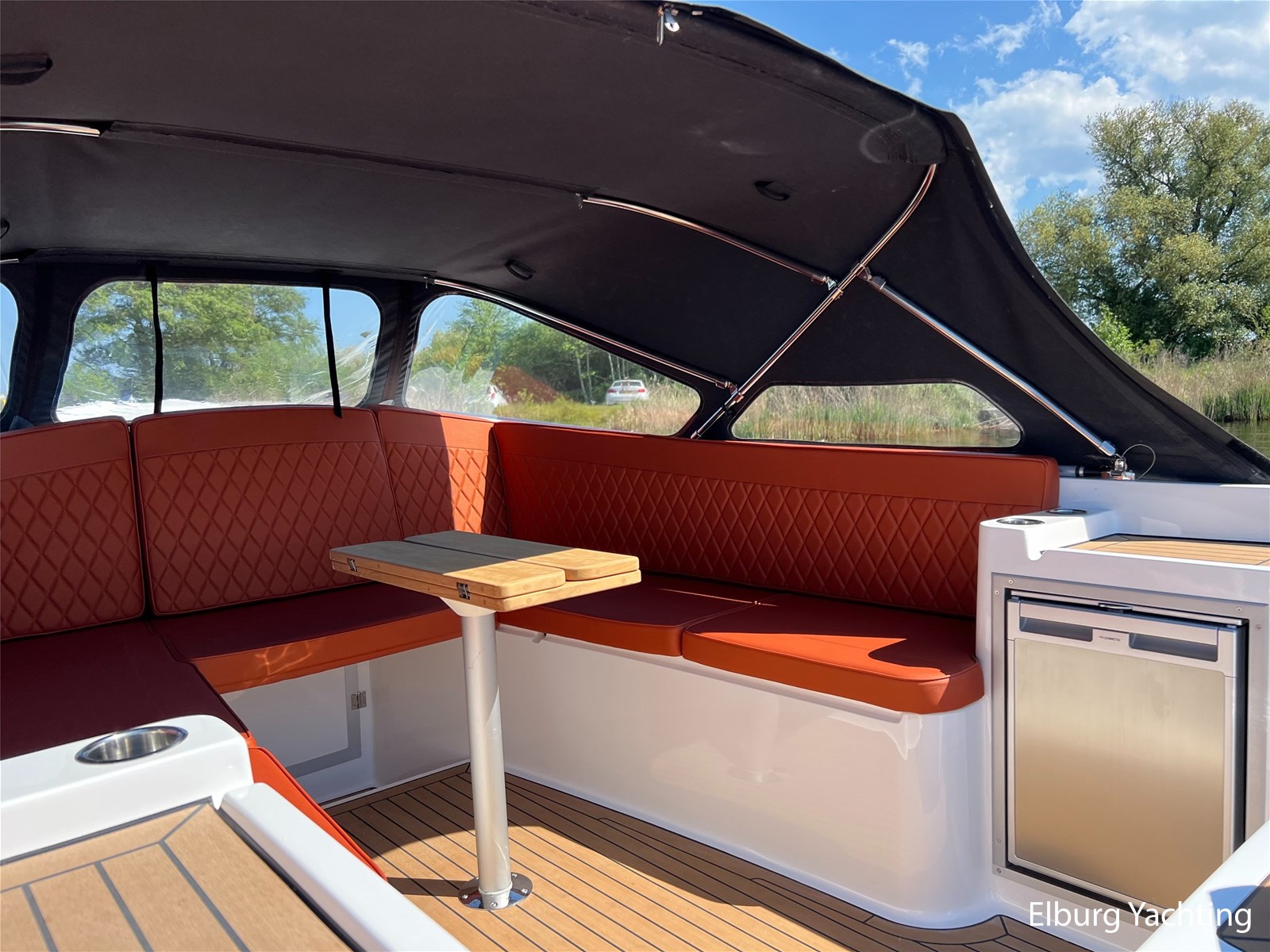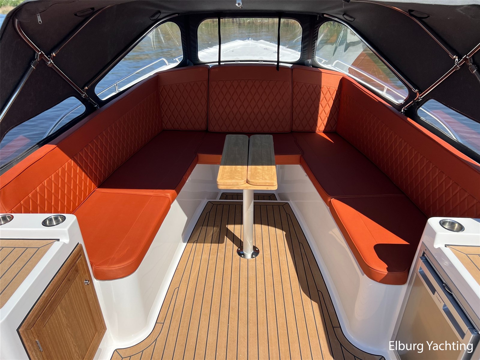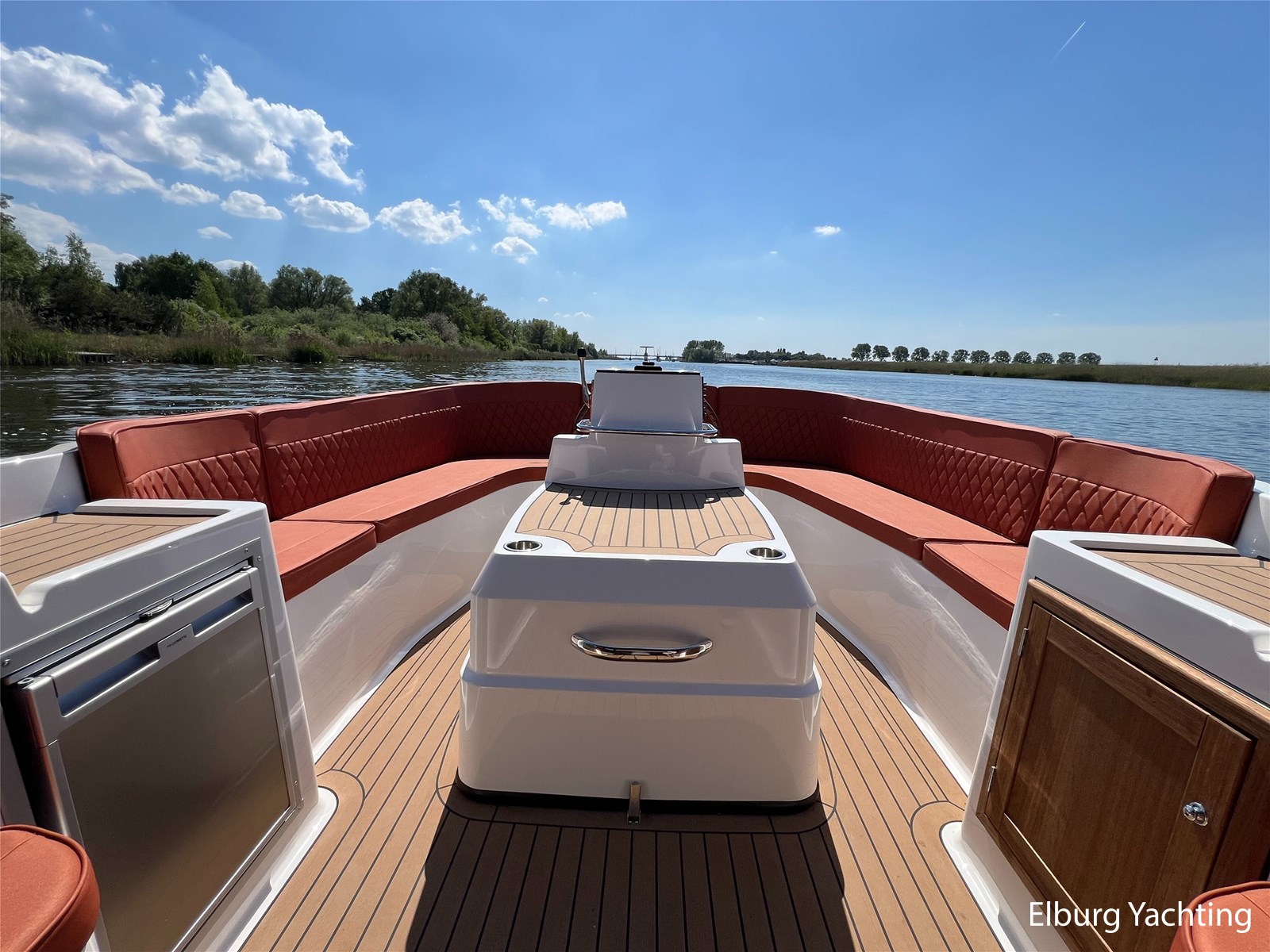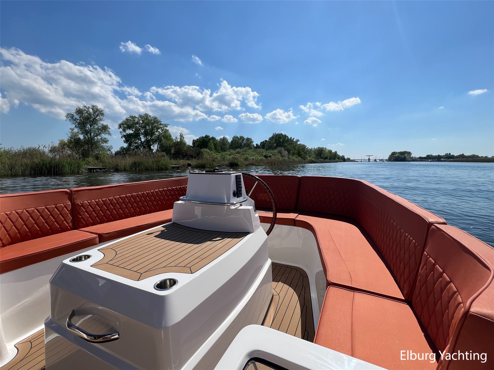 Deze prachtige Interboat Intender 780 wordt aangeboden door haar eerste eigenaar die haar wegens tijdgebrek verkoopt. Deze sportieve sloep wordt aangedreven door de krachtigste dieselvariant: De Yanmar 4 cylinder 170pk met slechts ca. 80 draaiuren. Deze intender is onder andere voorzien van een elektrische boegschroef, een bimini-top, zwemplateau met brede zwemtrap en beugels, voor en achter voorzien van een ruime rondzit welke aan de voorzijde dichtgelegd kan worden waardoor een slaapplek gerealiseerd wordt. Verder is de sloep voorzien van een Jabsco pomptoilet in afgesloten ruimte, Esthec op het dek, de vloer, de instap en op de motorkist, vergroot zonnebed, kuiptafel, r.v.s. bekerhouders, koelkast met vriesvak, buiskap met afdekzeil (volledig af te dichten), een Zipwake Trimcontrol systeem en ten behoeve van de navigatie is deze Intender uitgerust met een Simrad Cruise 5 plotter.