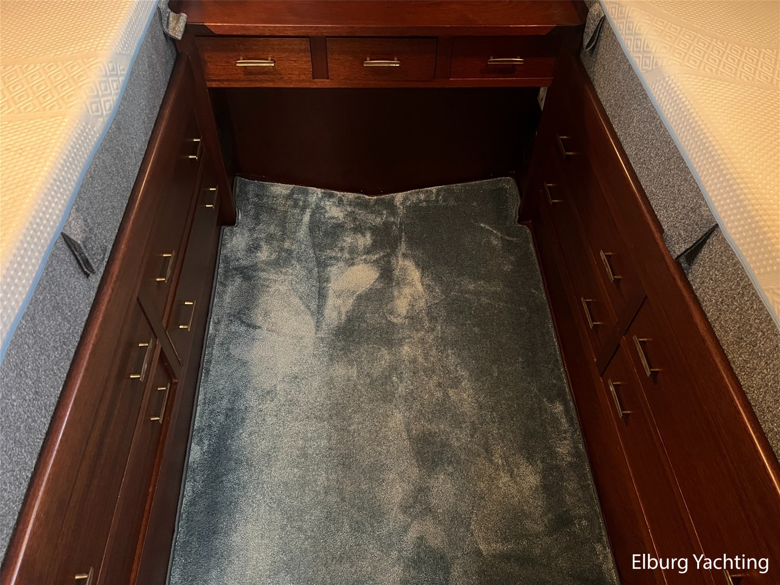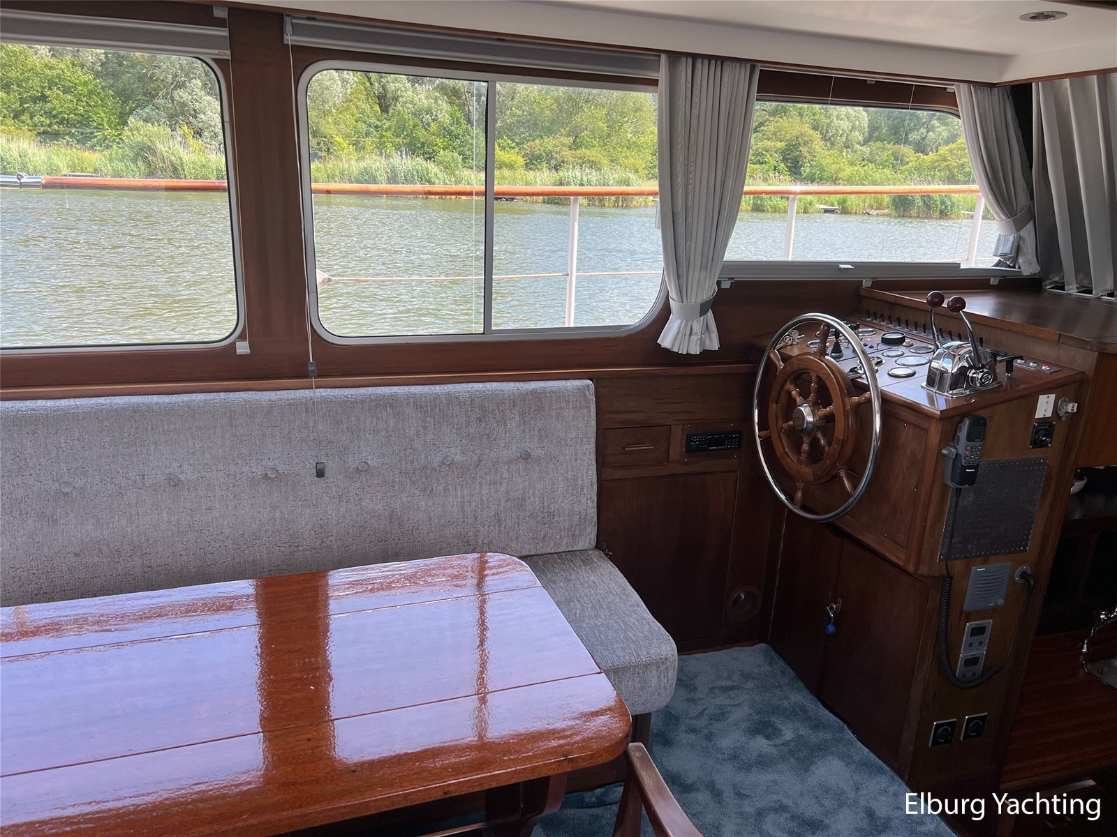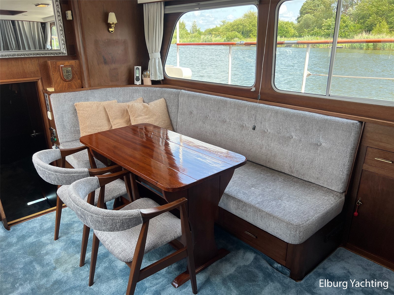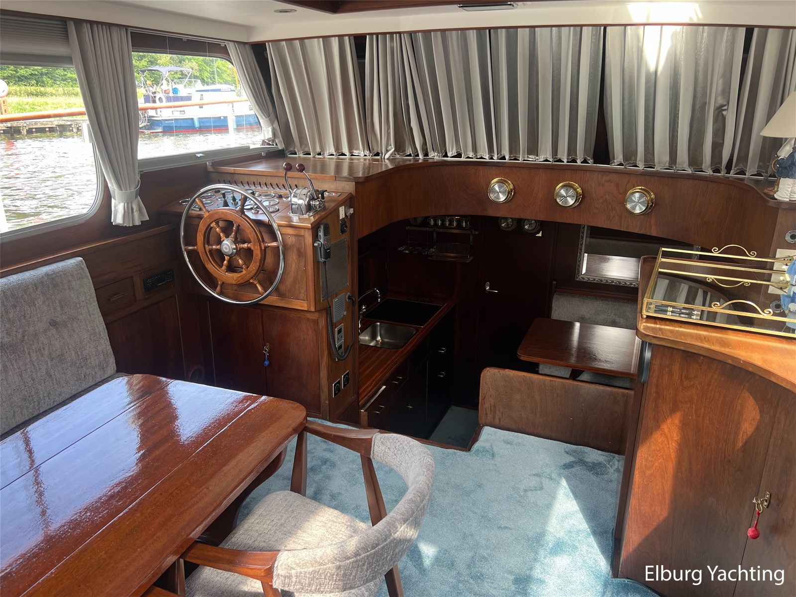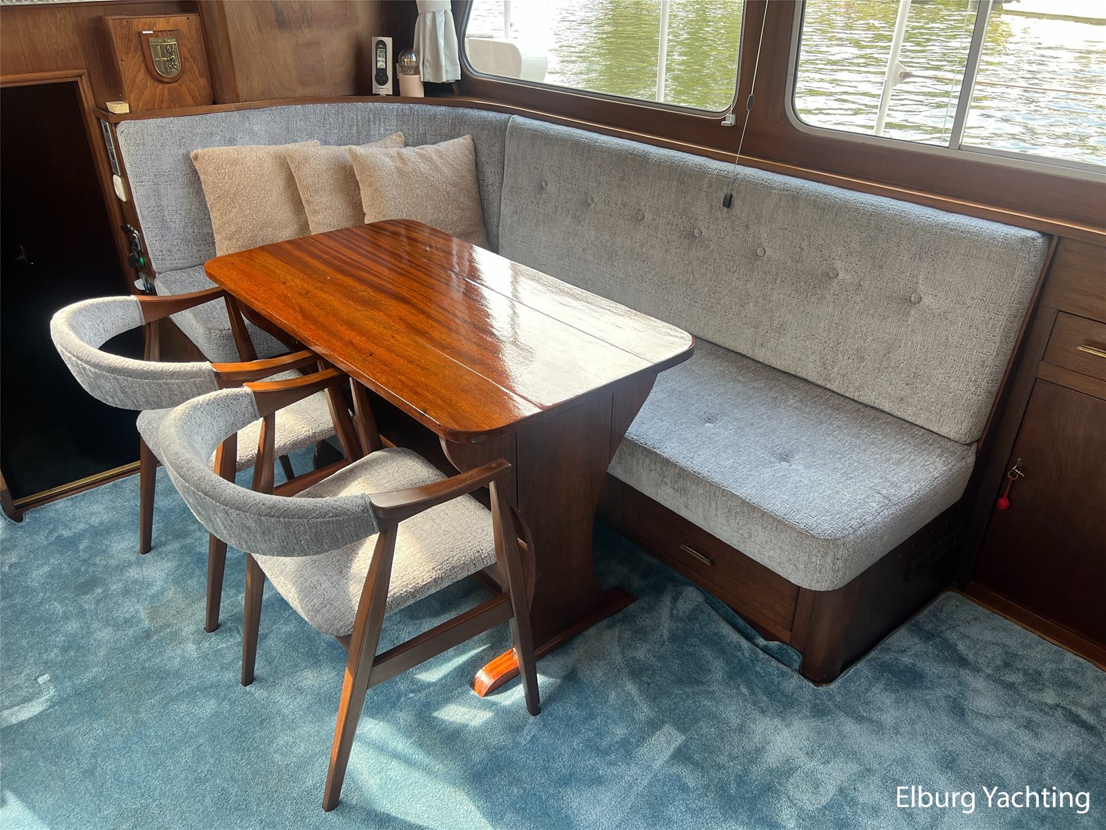 - Teak interieur met tapijt door het gehele schip