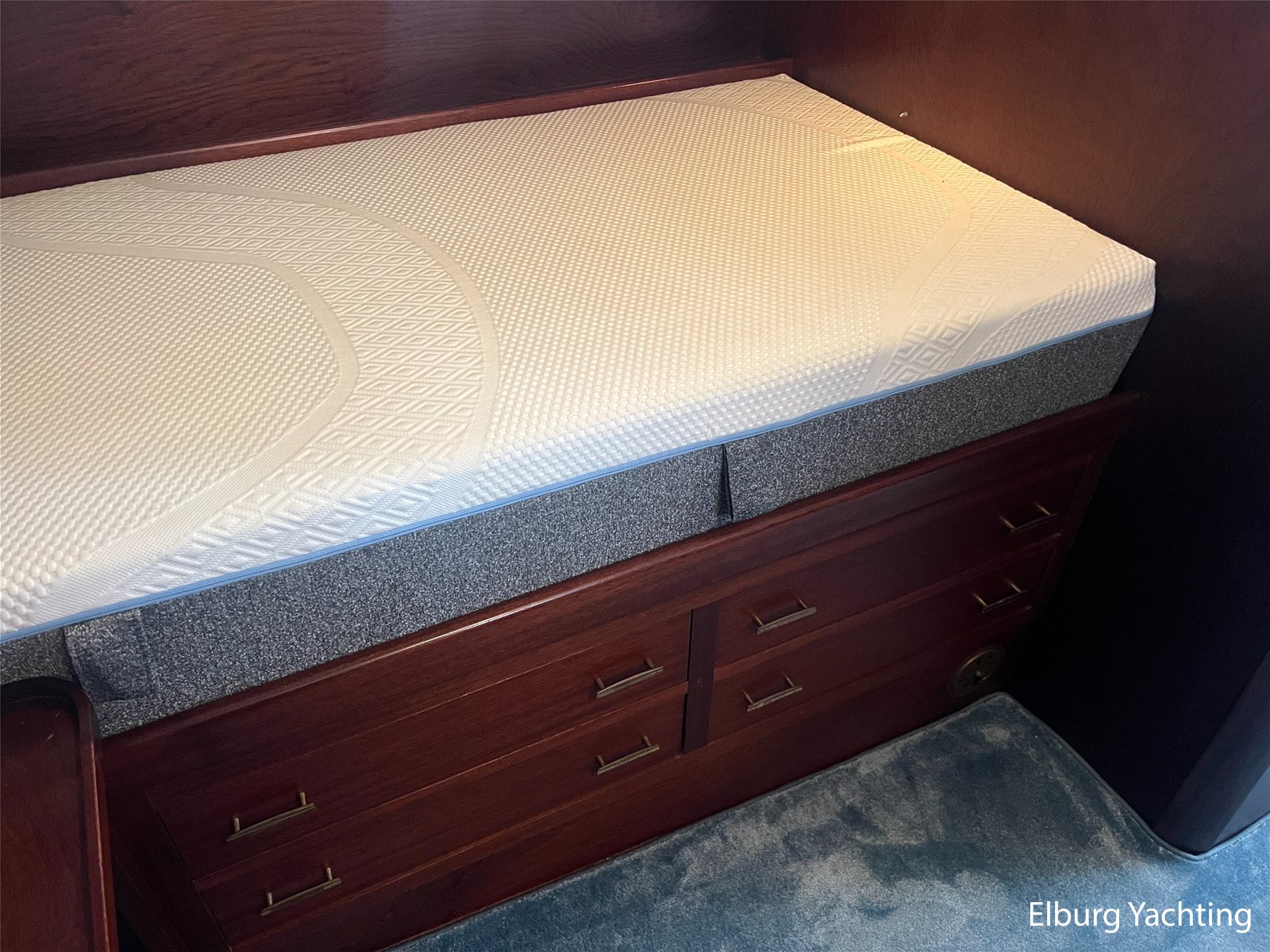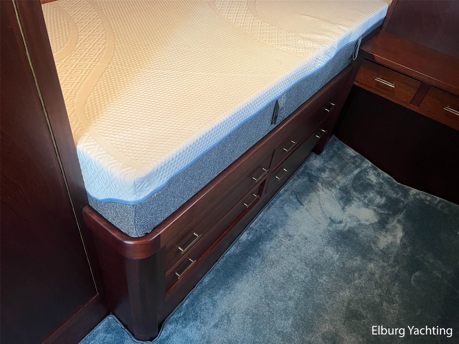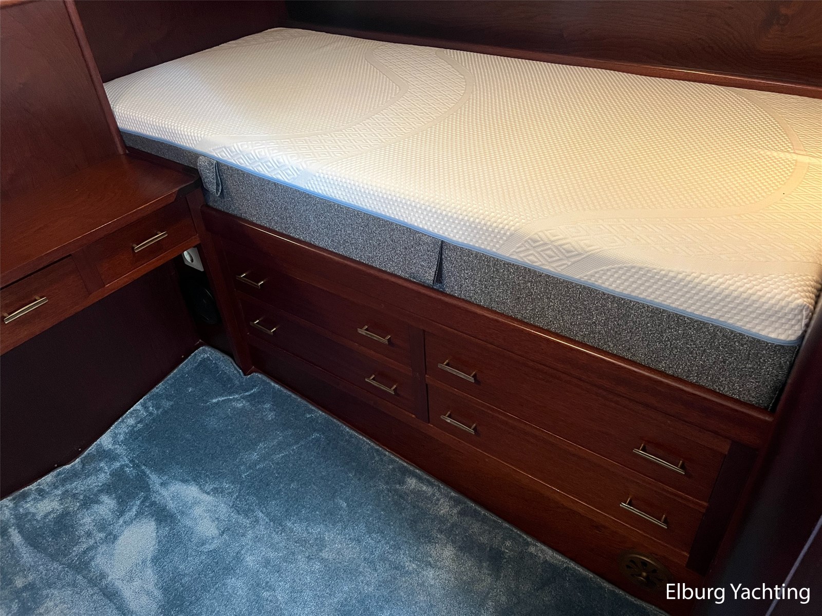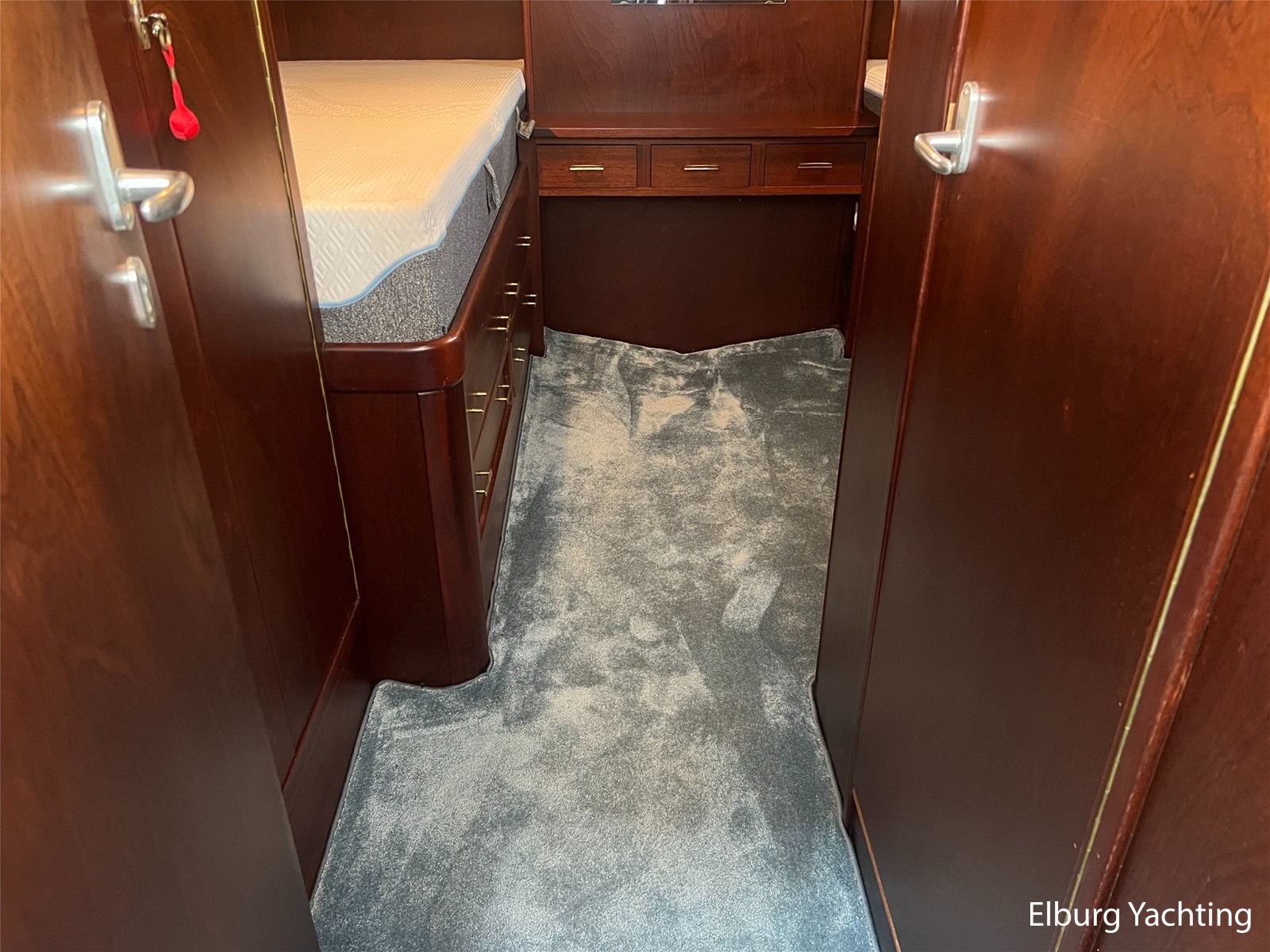 - Teak interieur met tapijt door het gehele schip