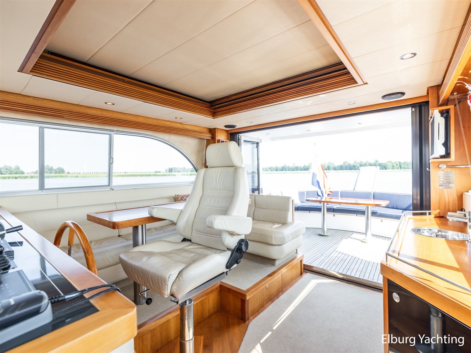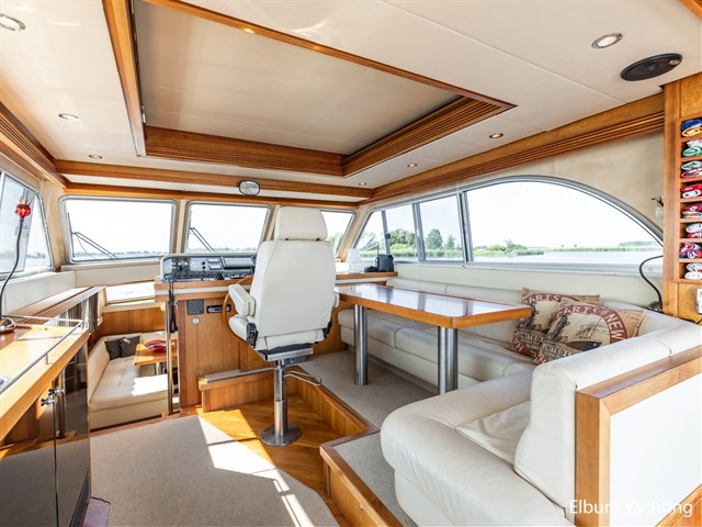 De stuurhut is bovendien zeer compleet uitgerust: onder andere met Autopilot, radar, kaartplotter, camerasysteem, elektrisch zoeklicht, boeg- en hekschroef met afstandsbediening, ruitenwissers met intervalstand, marifoon en andere accessoires. Alles is aanwezig voor ontspannen én veilig varen, ongeacht het vaargebied.