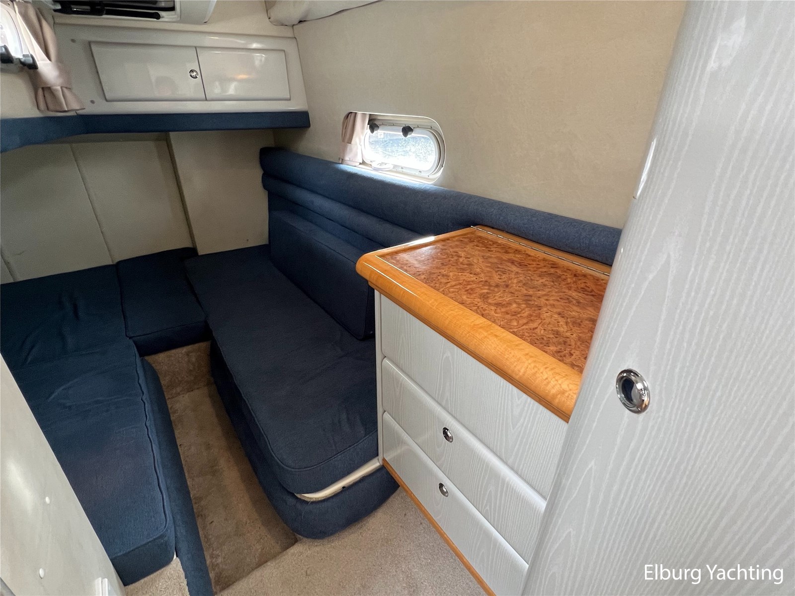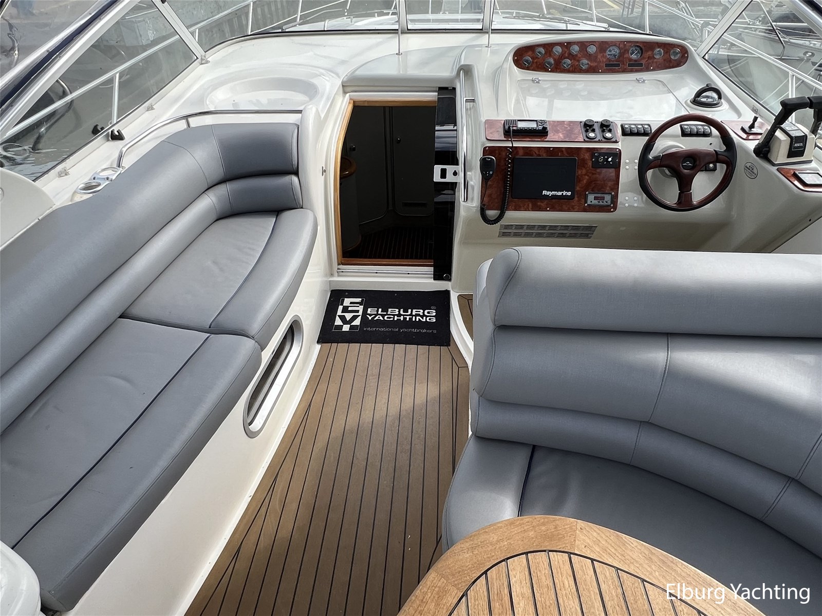 Deze Sealine S37 van 1996 is een snelvarend motorjacht met een royale leefruimte op dekniveau en comfortabele salon benedendeks. In de open kuip is een U-vormige vaste bank gesitueerd met afneembare kussens. De kuiptafel is te verlagen zodat er een groot ligbed gecreëerd kan worden. Tegenover bevind zich een buitenkoelkast met spoelbak (warm/koud). De stuurstand heeft een 2-persoons vaarbank van waaruit het instrumentarium goed te overzien is. De volledige kuip is voorzien van onderhoudsarm kunststof teakdek. Het schip heeft een twee hutten indeling, de eigenaarshut in het voorschip is voorzien van een 2-persoons frans bed en een 2-persoons gastenhut midscheeps. In de afgelopen jaren is er veel geïnvesteerd in het schip in service en verbeteringen aan boord. De laatste vernieuwingen zijn in 2023 met o.a. vernieuwde teakvloer in salon, bekleding binnen + buiten, meerdere 230V WCD type F, vloerbedekking en gordijnen, kuiptent, onderhoud aan de motoren en Z-drives uitgevoerd. Deze Sealine S37 is uitgevoerd met: verlichting in open kuip, veel r.v.s. details aan dek, dubbele vaarstoel, volledige tent rondom open kuip met uitritsbare delen, lederen bekleding in kuip, zonnebed op het voordek, wetbar in kuip met koelkast en spoelbak, geïntegreerde bekerhouders, inklapbare tafel bij rondzit buiten zodat deze is om te bouwen tot zonnebed, TV in salon (2023), Sony radio (2023), inklapbare/afneembare gangway op het zwemplateau.