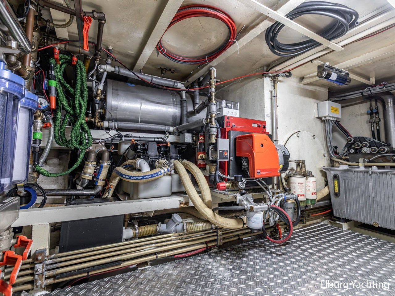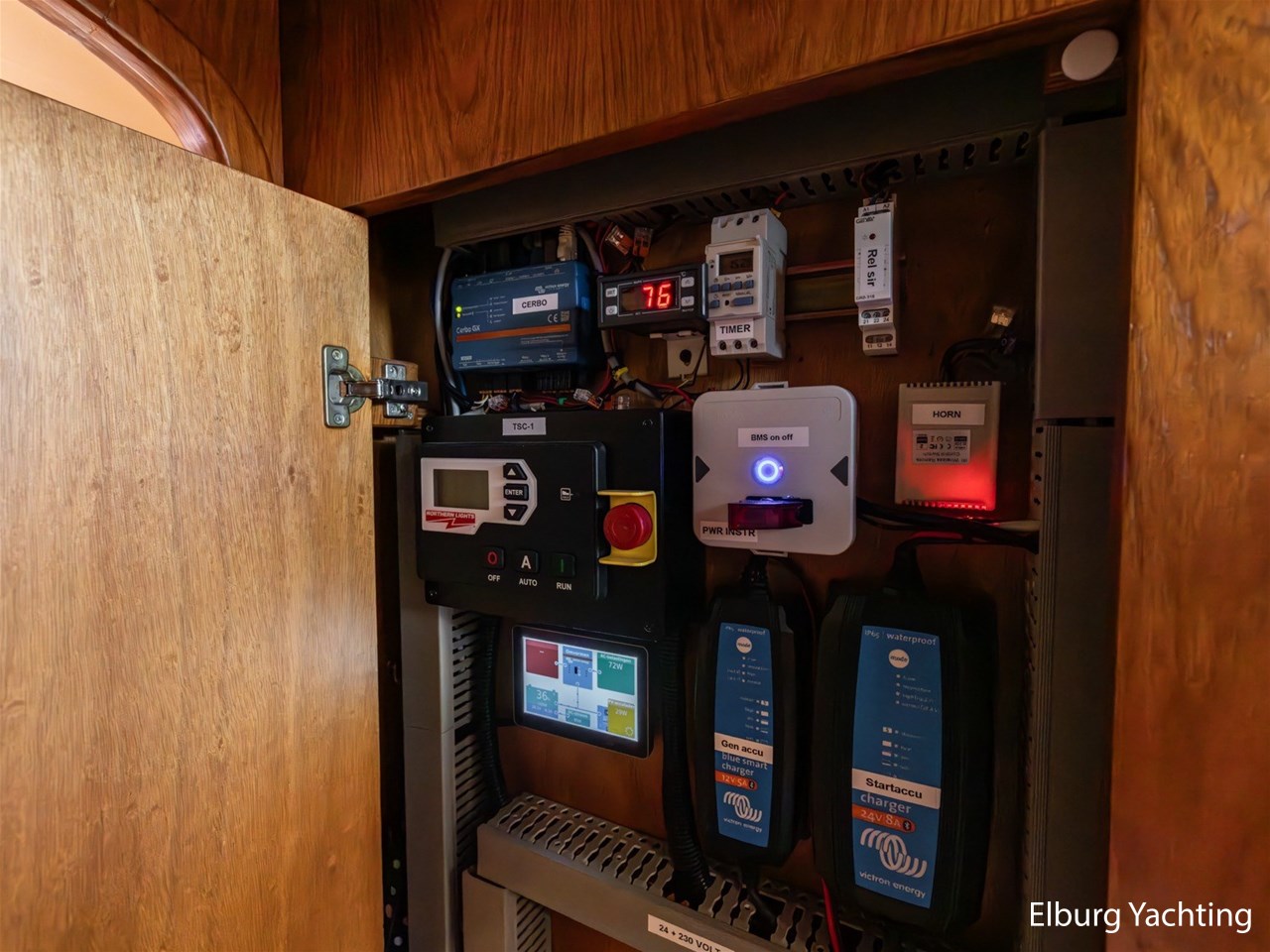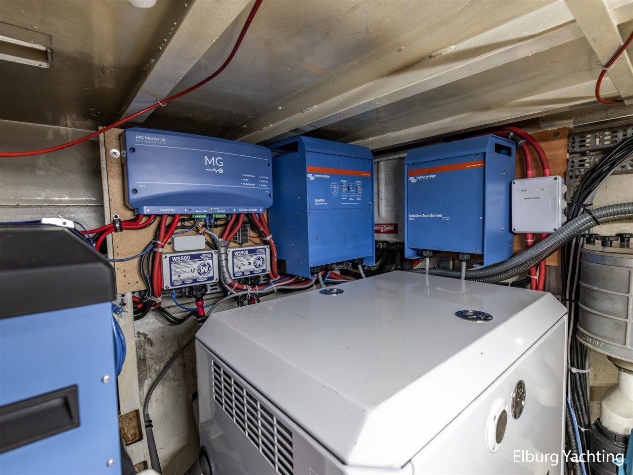 - Kabola HR300 kachel, verwarming d.m.v. radiatoren door het gehele schip met ventilatoren in dinette en bij de stuurstand + Climma airconditioning in salon en eigenaarshut voor koelen of verwarmen
