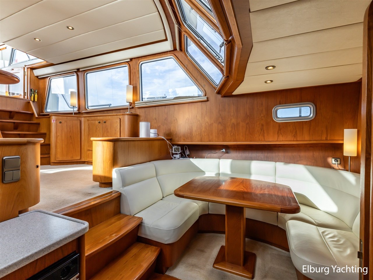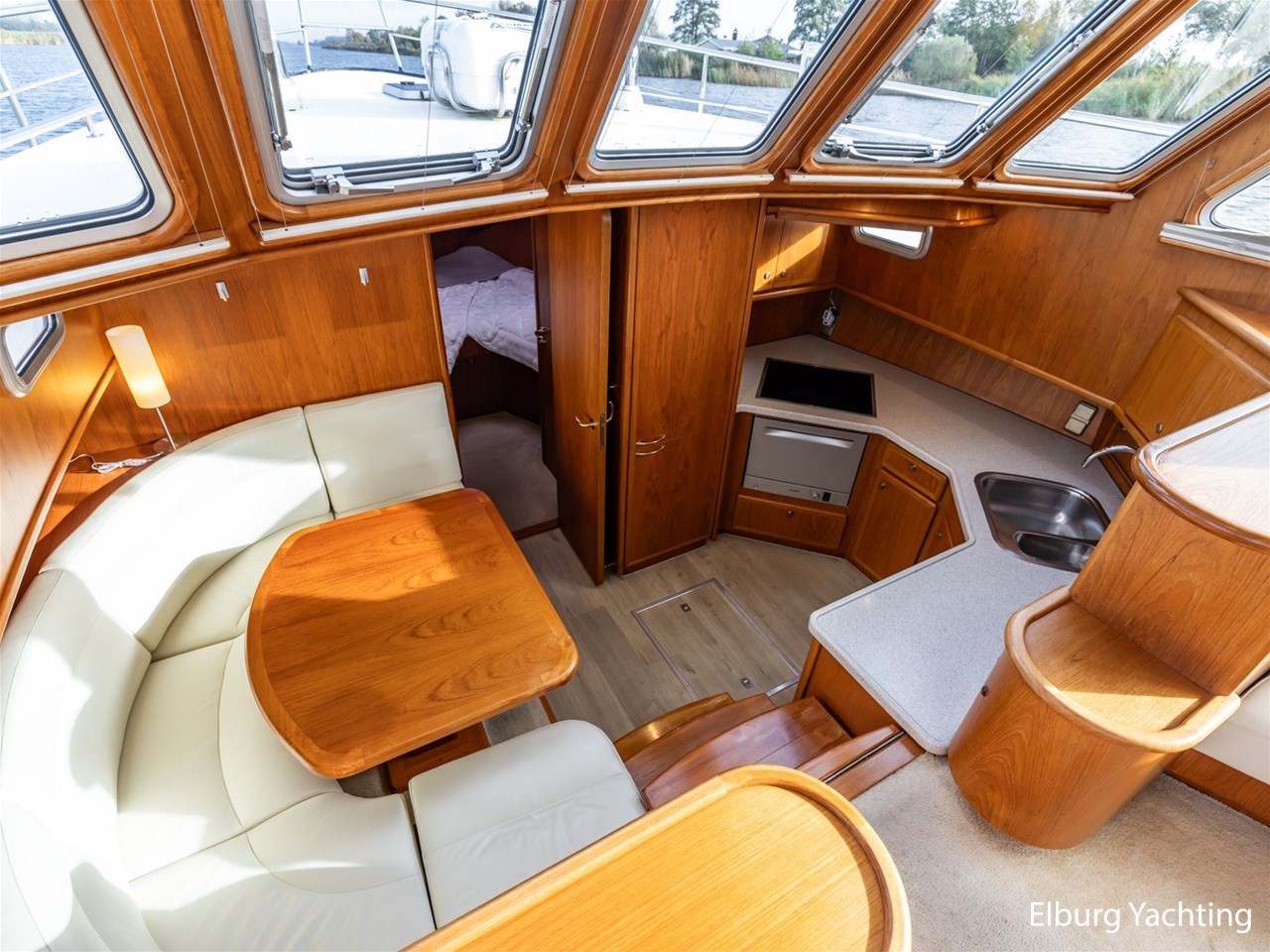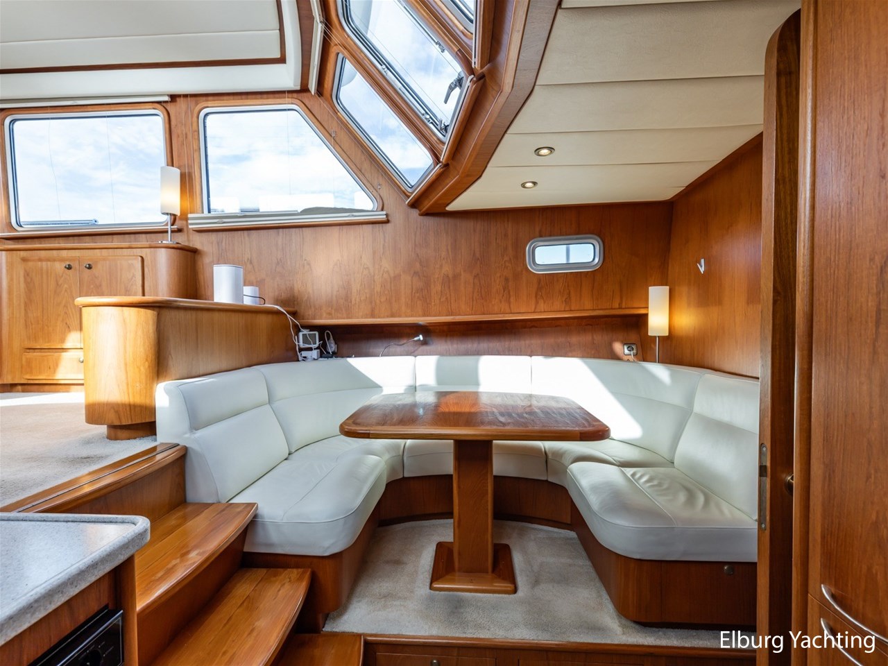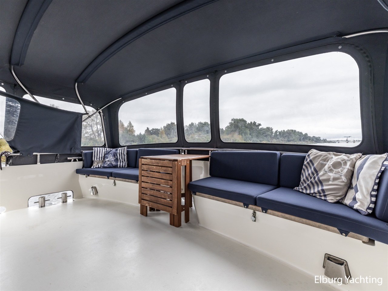 - Hoogwaardig teak scheepsinterieur met lederen bekleding op de binnen banken