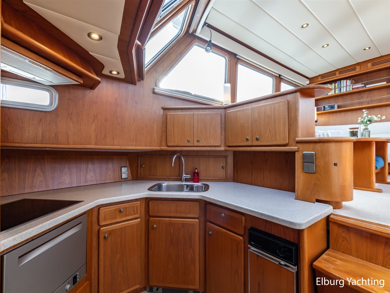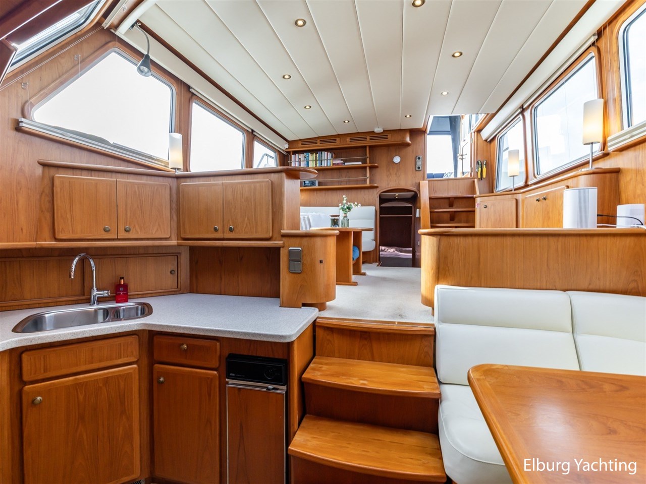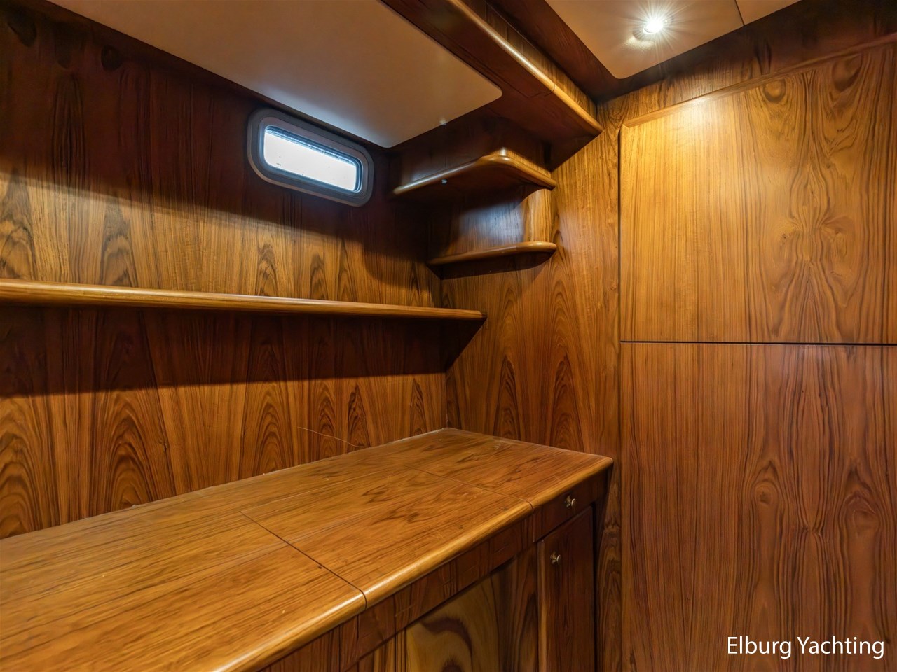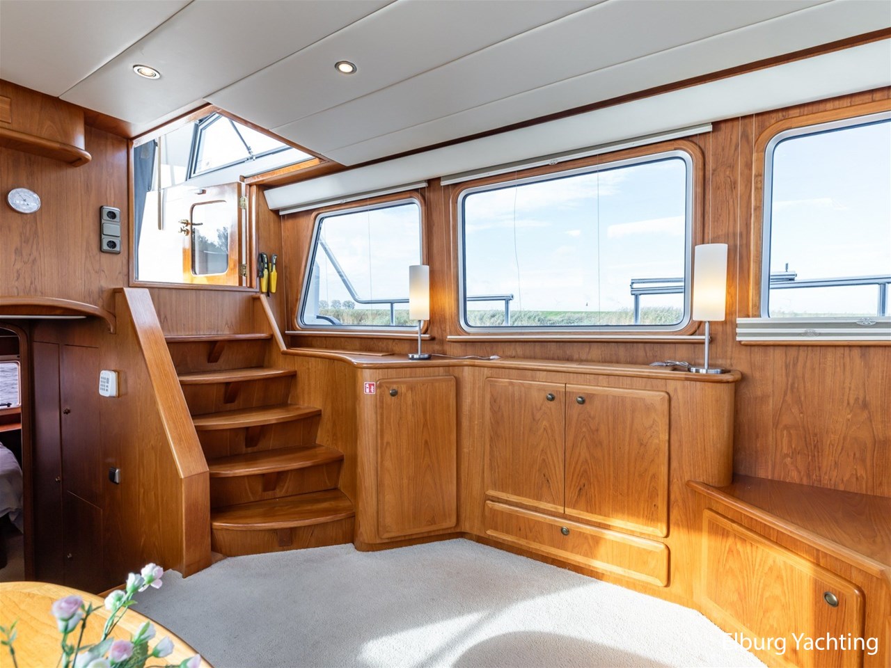 - Hoogwaardig teak scheepsinterieur met lederen bekleding op de binnen banken