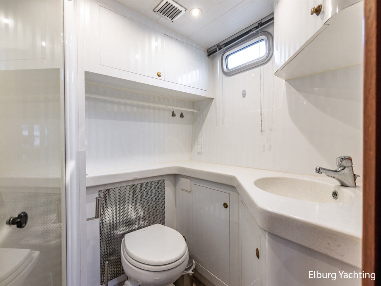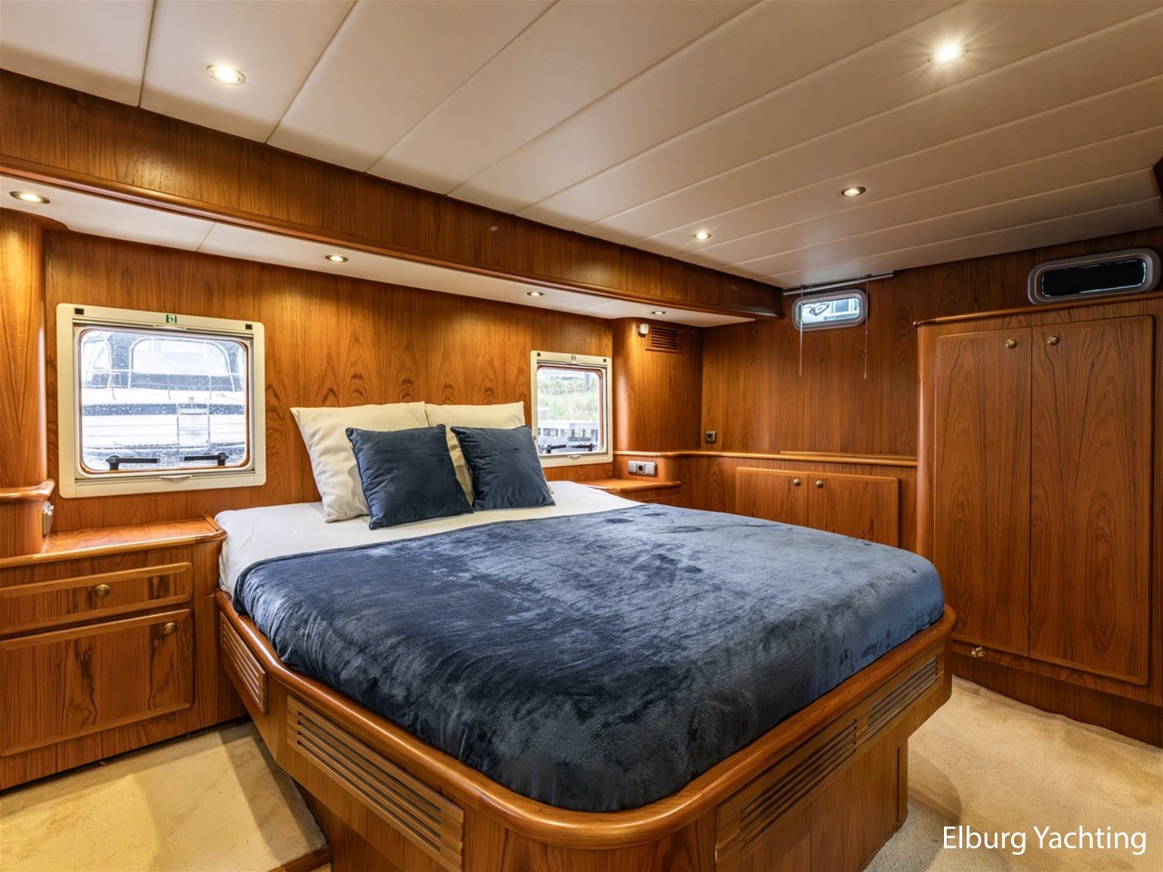 Zeer hoogwaardig gebouwde rondspant gejoggelde spiegelkotter van jachtwerf Het Oude Maasje in Waspik met het ontwerp van Vripack Design. Het schip is van bouwjaar 2005 en is eind 2006 in de vaart genomen. Het houtwerk in het interieur is in goede staat en de details laten laat nog echt vakwerk zien. De machinekamer met alle techniek is goed toegankelijk. Het geluid van de aandrijving tijdens het varen is minimaal door een goede isolering. De uitrusting is zeer compleet om zowel lange vaartochten op zee te maken evenals binnen door Franse kanalen te varen. Het schip is ook uitermate geschikt voor permanente bewoning vanwege zijn uitstekende isolatie, dubbel glas, airco, warmwater CV en boiler. Het schip is door de eigenaar tot in detail onderhouden doormiddel van gepland periodiek onderhoudsschema. Recent onderhoud en doorgevoerde vernieuwingen zijn een opnieuw gespoten romp (2025), antifouling (2025), een nieuw toilet achter (2024), nieuwe verstuivers (2023), nieuwe schroefasafdichtingen (2023), een nieuw Lithium accupakket (2022), vernieuwde Raymarine navigatieapparatuur (2021), plaatsing van een aggregaat (2020).