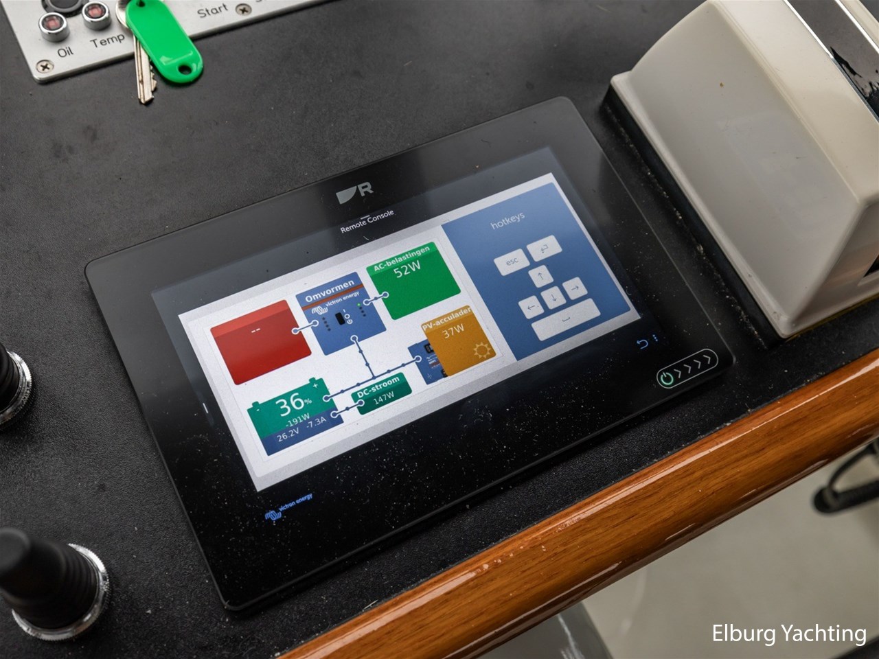 Deze Vripack Spiegelkotter 14.50 is voorzien van: Volledige tent over achterdek en stuurstand, verwarming bij de stuurstand, hydraulisch klapbare radarbeugel (min. doorvaarthoogte 3,20 m), buitenverlichting, vaste meevaarstoel, 3 x 2-armige ruitenwissers met intervalautomaat, degelijke ovale r.v.s. reling rondom + vaste verschansing, 1 x TV in salon + 1 x TV in achterhut, Bosch vaatwasser (2022), AIS klasse B, Victron Cerbo met mogelijkheid tot uitlezen op telefoon, plissé gordijnen, zonnepanelen 3 x 240Wp met Victron MPPT solaromvormer, vaste banken op achterdek met daarin bergruimte, blinds rondom salonramen, alle verlichting uitgevoerd in LED, Bosch was-droog combi aan boord.