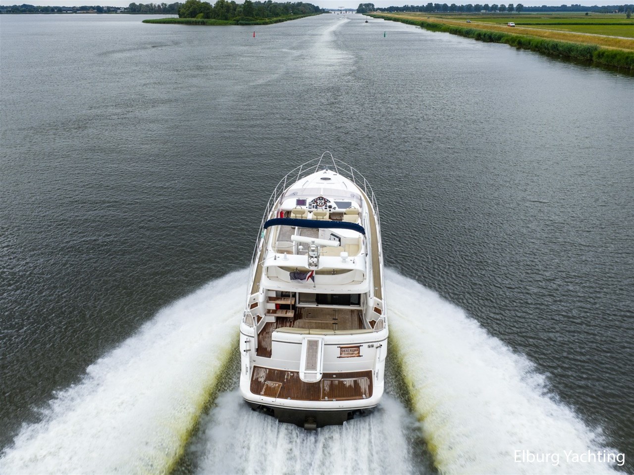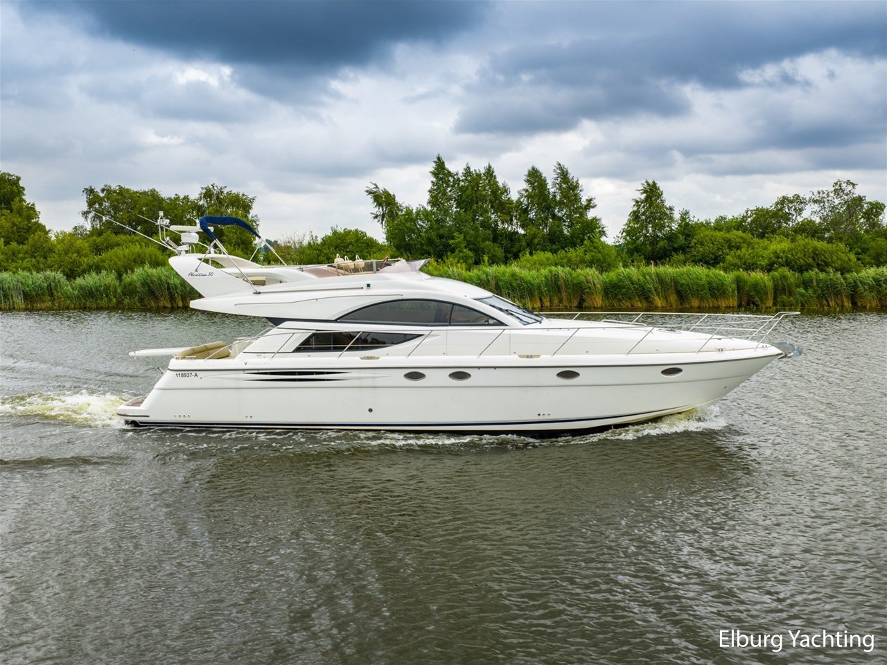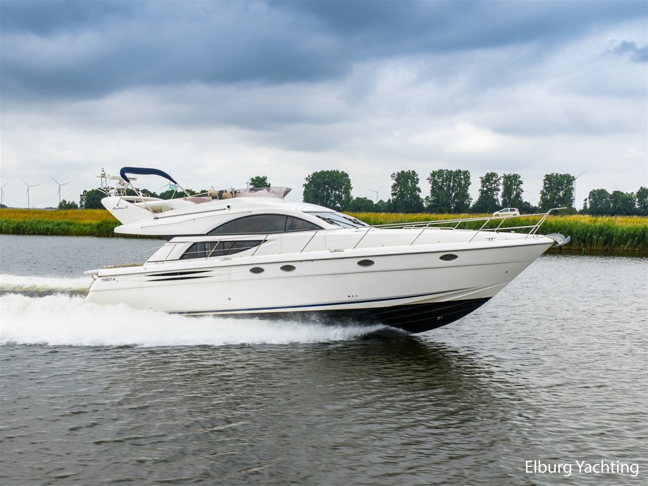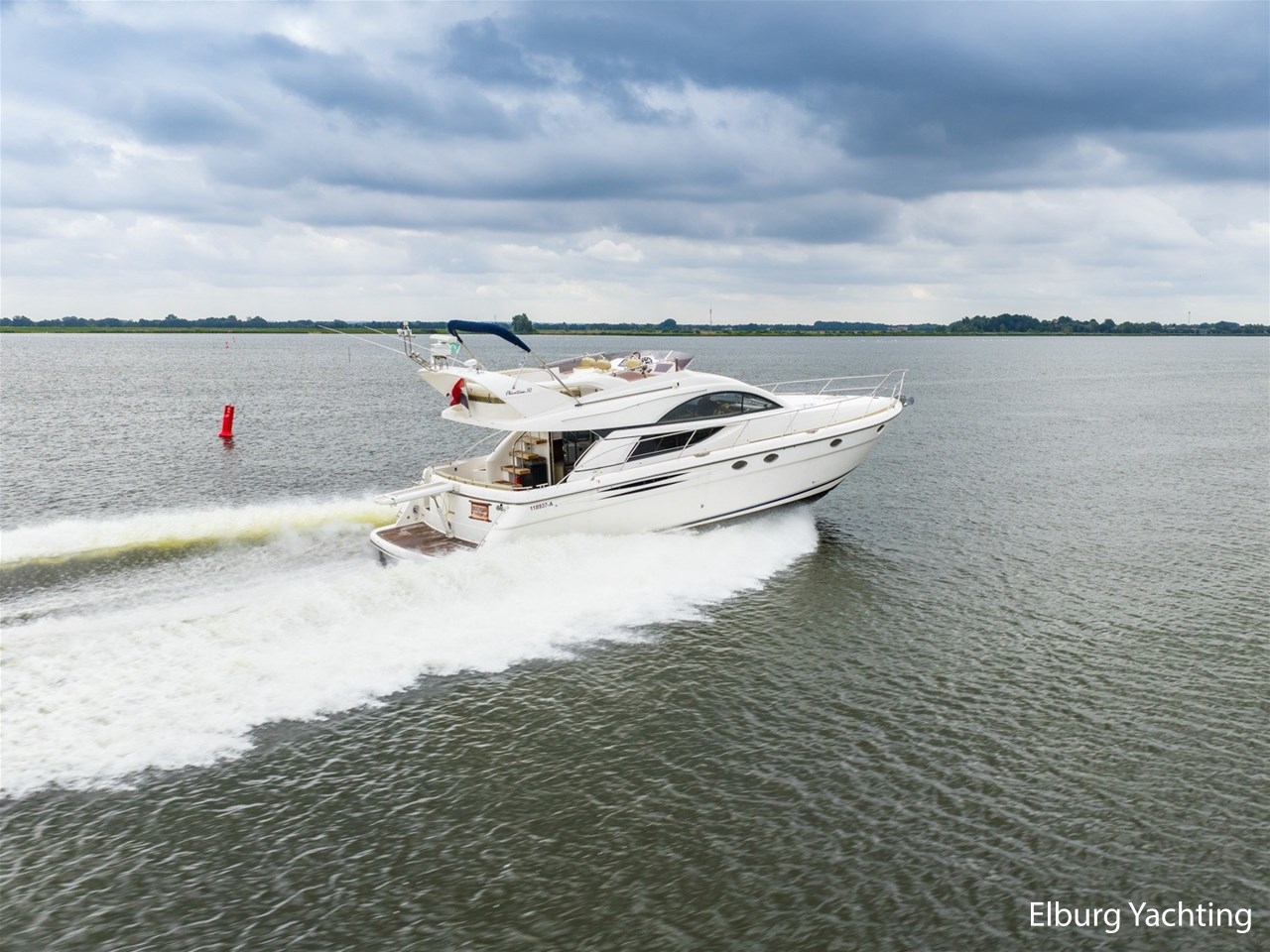 Verfijnd en elegant, de Fairline Phantom 50 biedt ultiem comfort gecombineerd met sportieve prestaties. Volgens haar ontwerper, Bernard Olesinski, de best varende romp ooit door hem getekend. Het schip biedt met drie volwaardige hutten een slaapplaats voor zes opvarenden, + 1 x crew cabin. Deze Fairline Phantom 50 is zeer compleet uitgerust met o.a.: Vaste zitbank in open kuip met bijbehorende kussens, stoffering buiten (kussens flybridge, kussens open kuip en zonnebed voorschip) vernieuwd 2023, nieuw matras eigenaarshut 2024, open kuip en salon gelijkvloers, r.v.s. schuifdeur naar salon, "luie" trap naar flybridge, U-vormige dinette op flybridge ook te gebruiken als zonnebed, 2 x vaarstoel bij binnen stuurstand en op flybridge, biminitop, buitenverlichting (blauw), 2 x TV (streaming via SIM met databundel) Zanussi wasmachine, toegang machinekamer vanuit de open kuip met ruime berging, keuken op hoogte in salon, horren voor patrijspoorten, crewcabin met eigen entree via open kuip, trim tabs, ligkussens op voordek, zonneschermen rondom salonramen, volledige afsluitbare kuiptent (2023) rondom open kuip, afdekhoezen voor banken op flybridge (2024) + volledig afdekzeil, nieuwe vuilwaterslangen 2023, dekverlichting, zonnezeilen 2023, elektrische schuiframen bb en sb, r.v.s. buiten reling rondom. 2 x dieseltanks gereinigd in 2022, gehele onderwaterschip kaalgehaald en opgebouwd met een epoxysysteem, groot motoronderhoud (motoren en generator) uitgevoerd in 2024, LED verlichting.