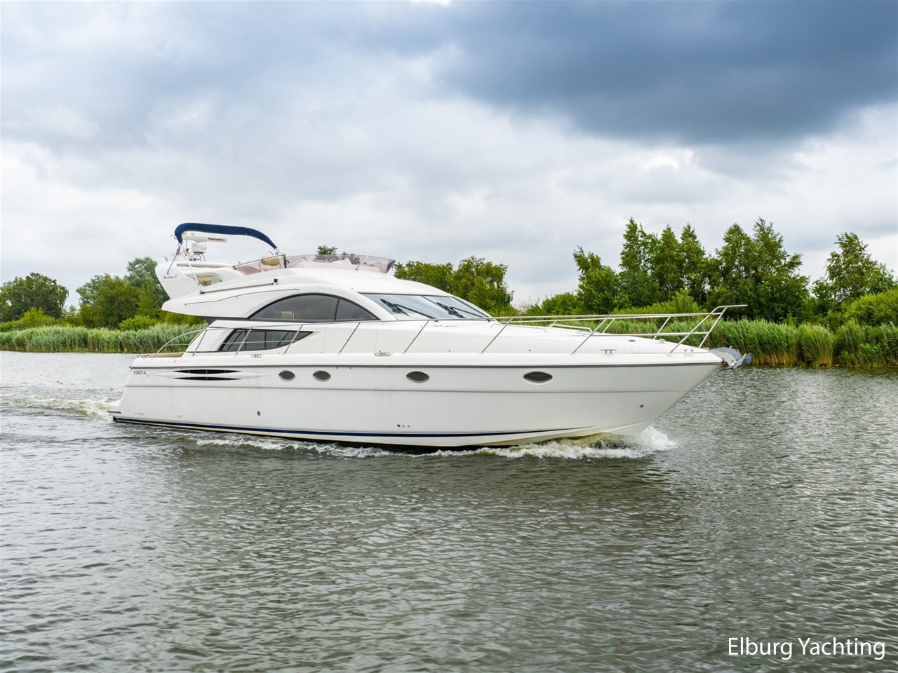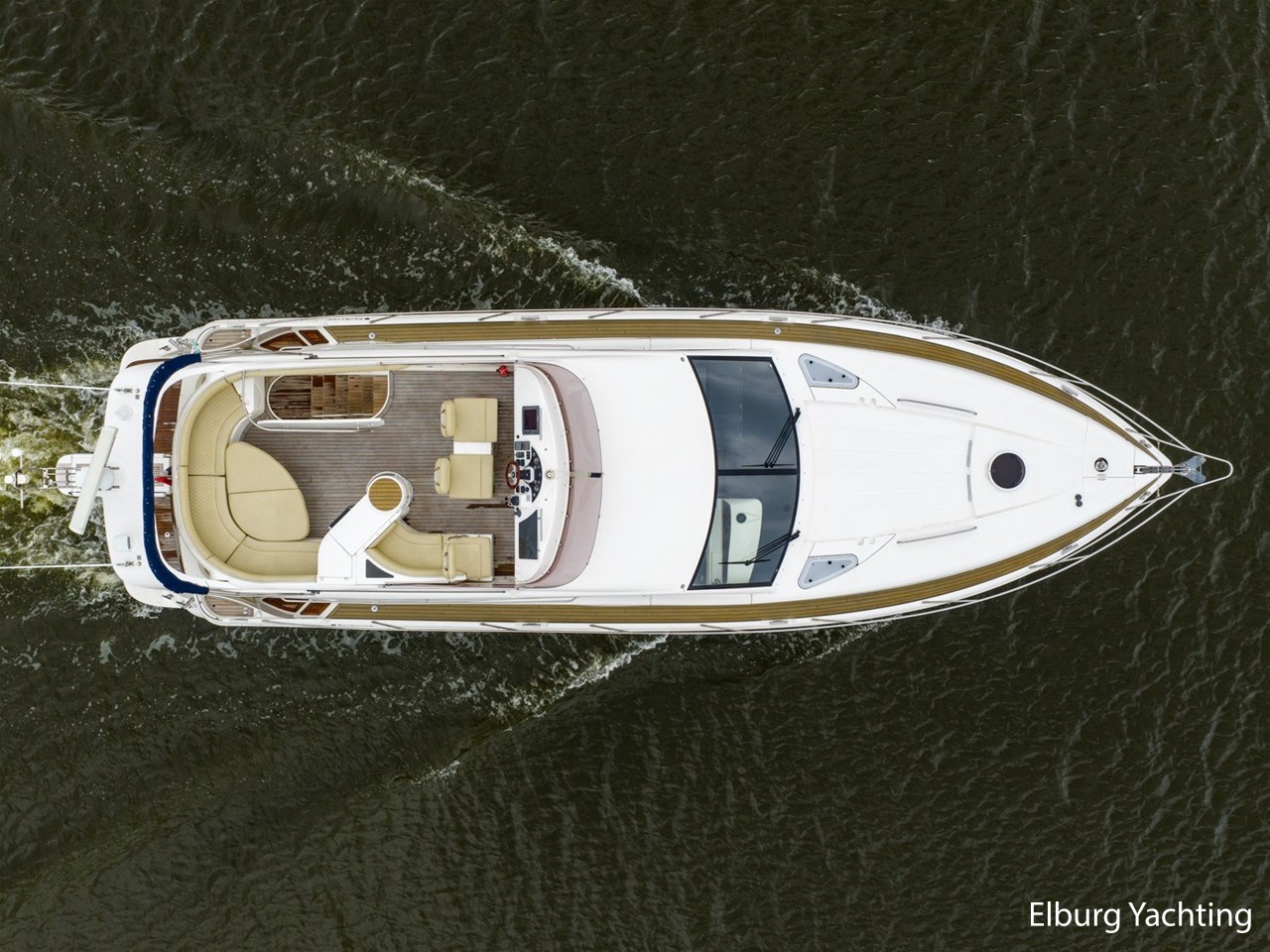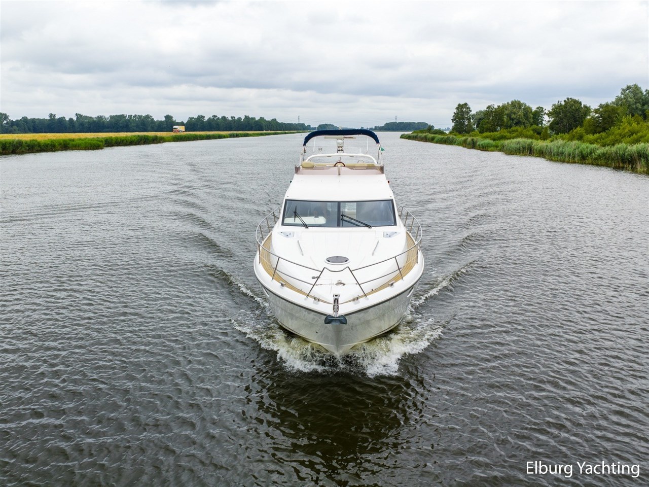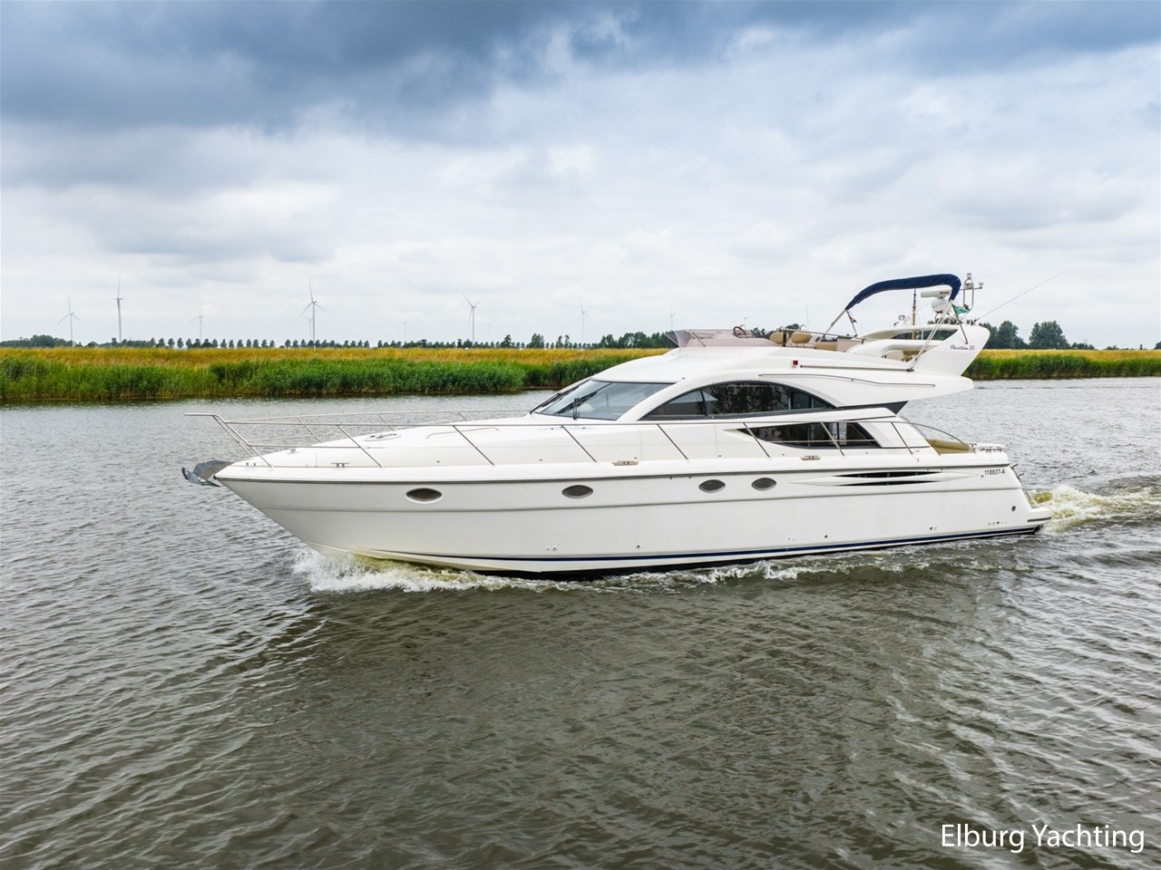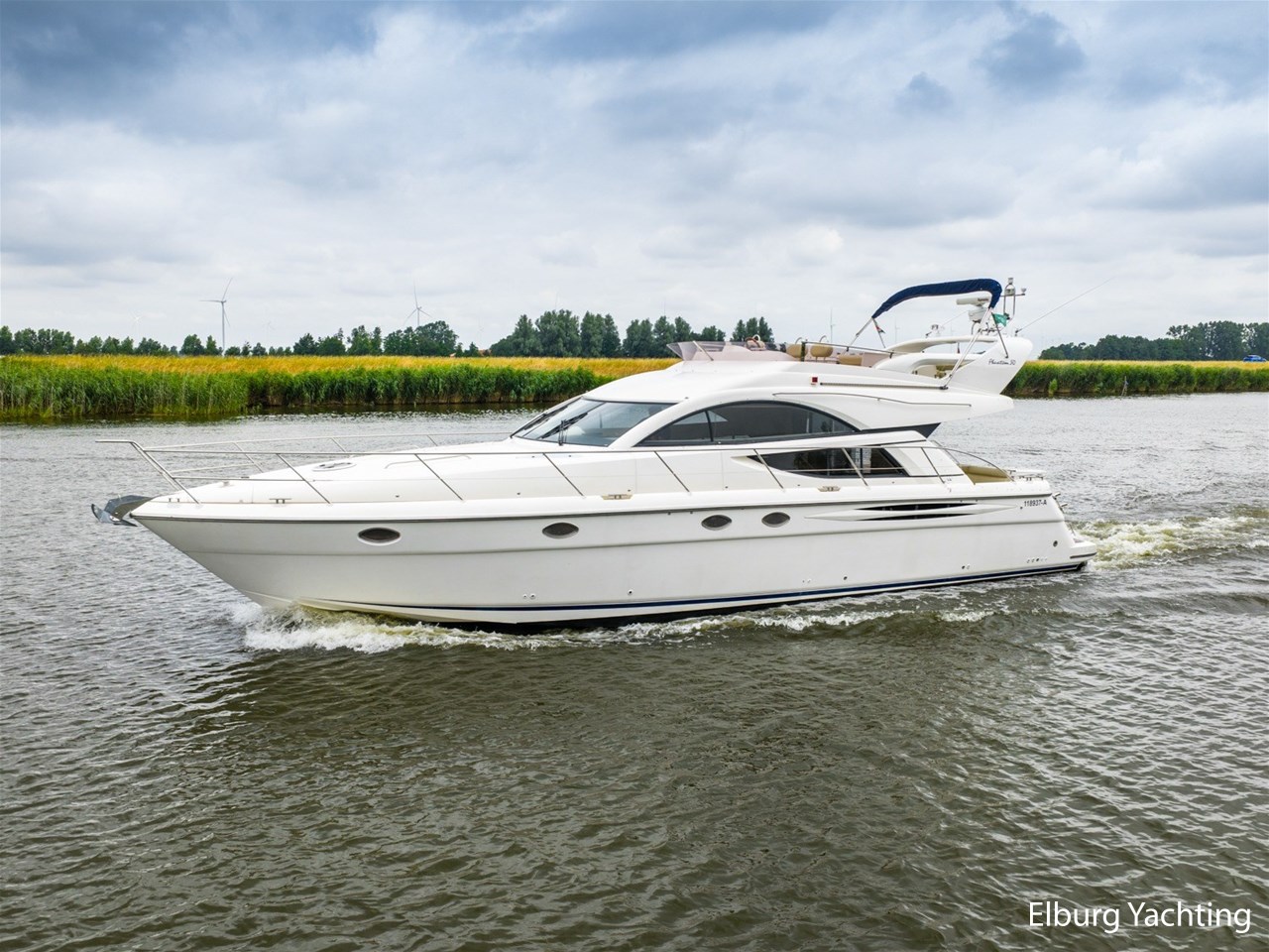 Verfijnd en elegant, de Fairline Phantom 50 biedt ultiem comfort gecombineerd met sportieve prestaties. Volgens haar ontwerper, Bernard Olesinski, de best varende romp ooit door hem getekend. Het schip biedt met drie volwaardige hutten een slaapplaats voor zes opvarenden, + 1 x crew cabin. Deze Fairline Phantom 50 is zeer compleet uitgerust met o.a.: Vaste zitbank in open kuip met bijbehorende kussens, stoffering buiten (kussens flybridge, kussens open kuip en zonnebed voorschip) vernieuwd 2023, nieuw matras eigenaarshut 2024, open kuip en salon gelijkvloers, r.v.s. schuifdeur naar salon, "luie" trap naar flybridge, U-vormige dinette op flybridge ook te gebruiken als zonnebed, 2 x vaarstoel bij binnen stuurstand en op flybridge, biminitop, buitenverlichting (blauw), 2 x TV (streaming via SIM met databundel) Zanussi wasmachine, toegang machinekamer vanuit de open kuip met ruime berging, keuken op hoogte in salon, horren voor patrijspoorten, crewcabin met eigen entree via open kuip, trim tabs, ligkussens op voordek, zonneschermen rondom salonramen, volledige afsluitbare kuiptent (2023) rondom open kuip, afdekhoezen voor banken op flybridge (2024) + volledig afdekzeil, nieuwe vuilwaterslangen 2023, dekverlichting, zonnezeilen 2023, elektrische schuiframen bb en sb, r.v.s. buiten reling rondom. 2 x dieseltanks gereinigd in 2022, gehele onderwaterschip kaalgehaald en opgebouwd met een epoxysysteem, groot motoronderhoud (motoren en generator) uitgevoerd in 2024, LED verlichting.