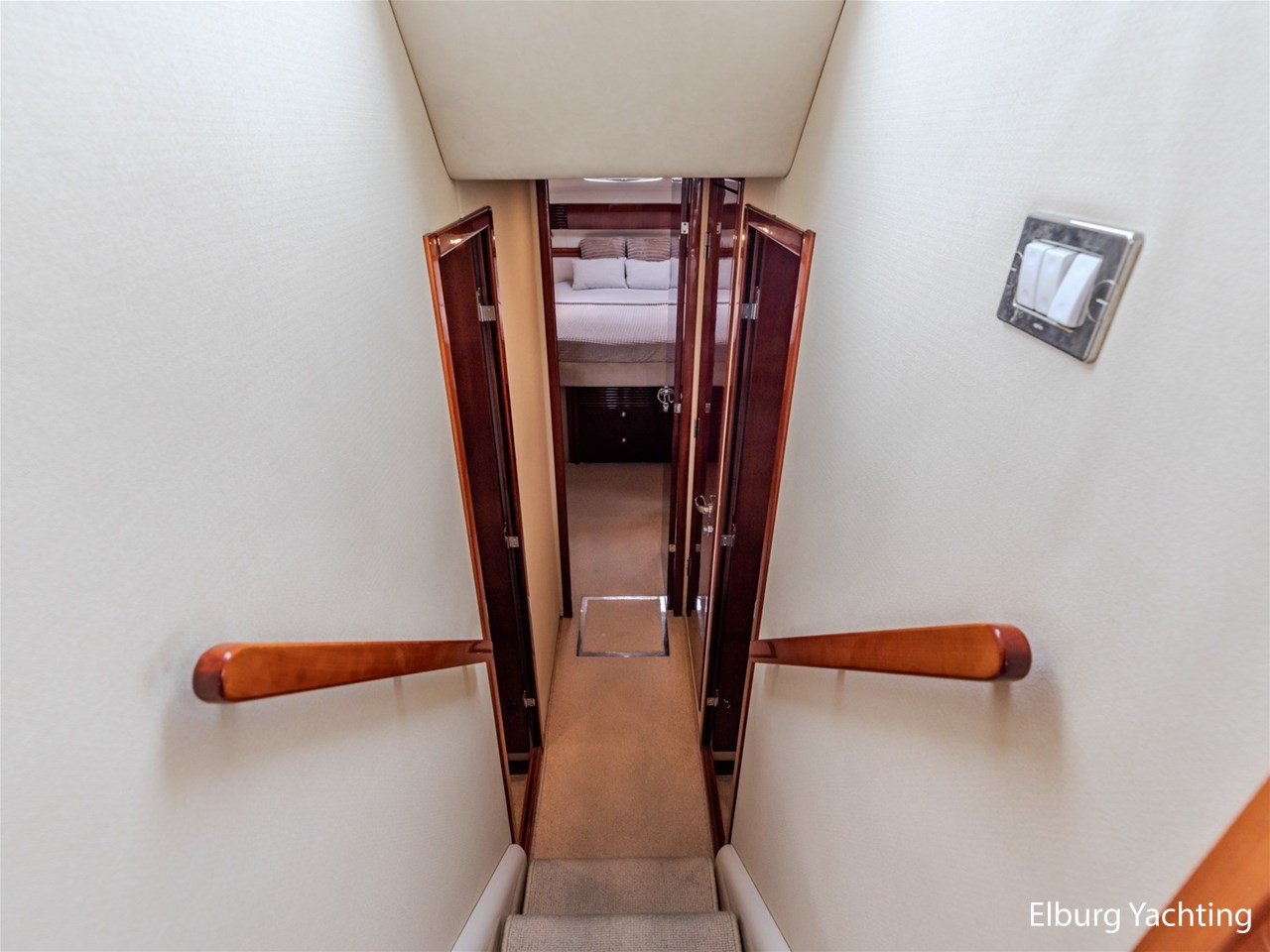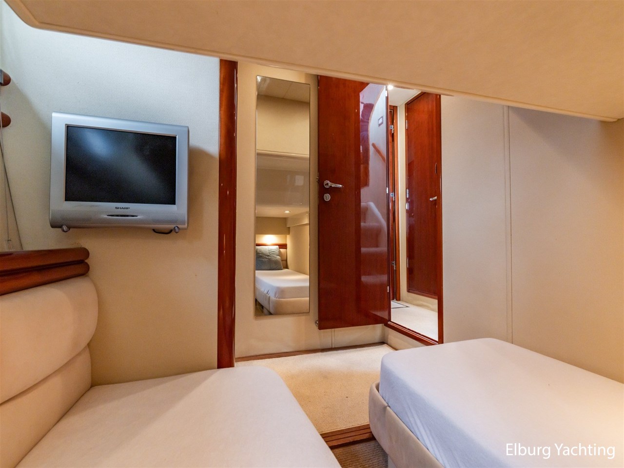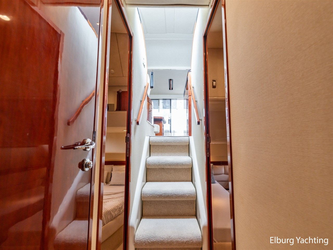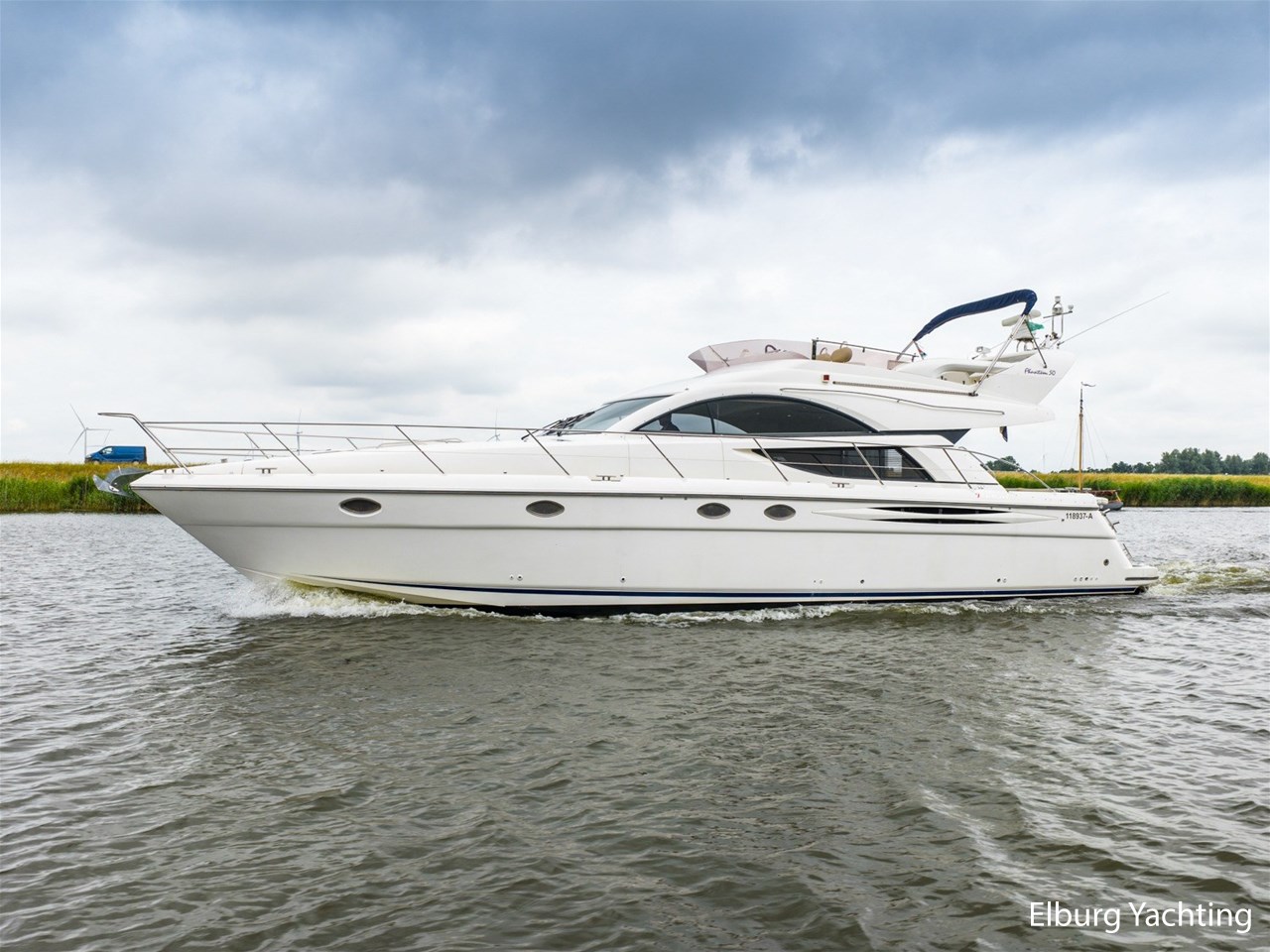 Verfijnd en elegant, de Fairline Phantom 50 biedt ultiem comfort gecombineerd met sportieve prestaties. Volgens haar ontwerper, Bernard Olesinski, de best varende romp ooit door hem getekend. Het schip biedt met drie volwaardige hutten een slaapplaats voor zes opvarenden, + 1 x crew cabin. Deze Fairline Phantom 50 is zeer compleet uitgerust met o.a.: Vaste zitbank in open kuip met bijbehorende kussens, stoffering buiten (kussens flybridge, kussens open kuip en zonnebed voorschip) vernieuwd 2023, nieuw matras eigenaarshut 2024, open kuip en salon gelijkvloers, r.v.s. schuifdeur naar salon, "luie" trap naar flybridge, U-vormige dinette op flybridge ook te gebruiken als zonnebed, 2 x vaarstoel bij binnen stuurstand en op flybridge, biminitop, buitenverlichting (blauw), 2 x TV (streaming via SIM met databundel) Zanussi wasmachine, toegang machinekamer vanuit de open kuip met ruime berging, keuken op hoogte in salon, horren voor patrijspoorten, crewcabin met eigen entree via open kuip, trim tabs, ligkussens op voordek, zonneschermen rondom salonramen, volledige afsluitbare kuiptent (2023) rondom open kuip, afdekhoezen voor banken op flybridge (2024) + volledig afdekzeil, nieuwe vuilwaterslangen 2023, dekverlichting, zonnezeilen 2023, elektrische schuiframen bb en sb, r.v.s. buiten reling rondom. 2 x dieseltanks gereinigd in 2022, gehele onderwaterschip kaalgehaald en opgebouwd met een epoxysysteem, groot motoronderhoud (motoren en generator) uitgevoerd in 2024, LED verlichting.