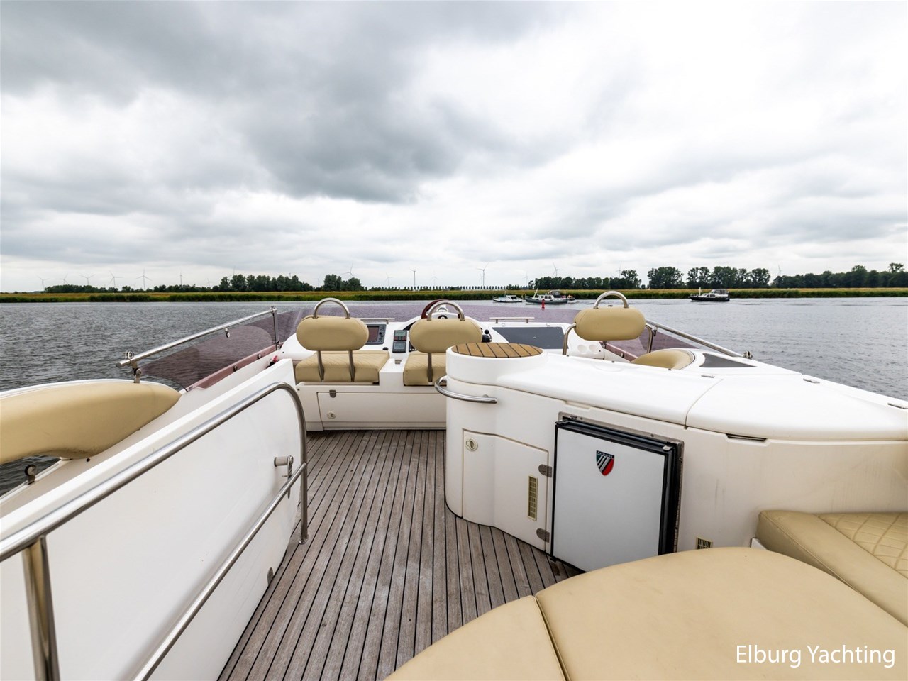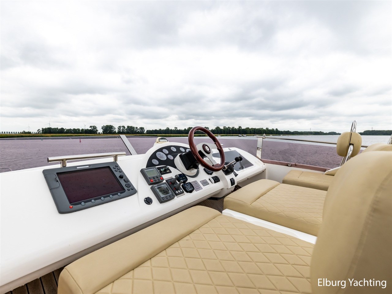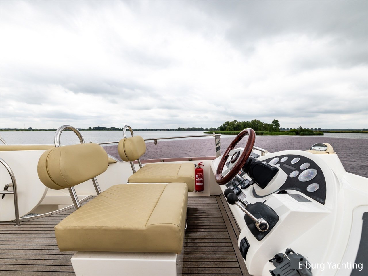 - Volledig teak in open kuip en op flybridge + kunststof teak in gangboorden