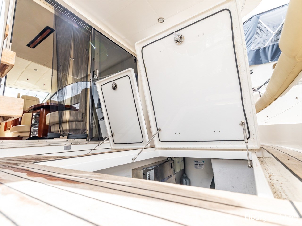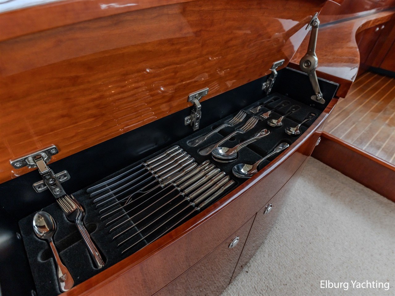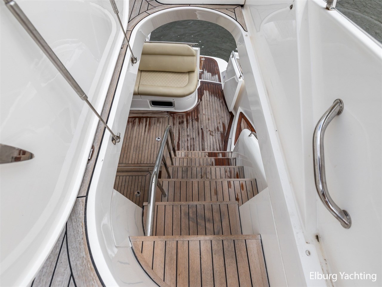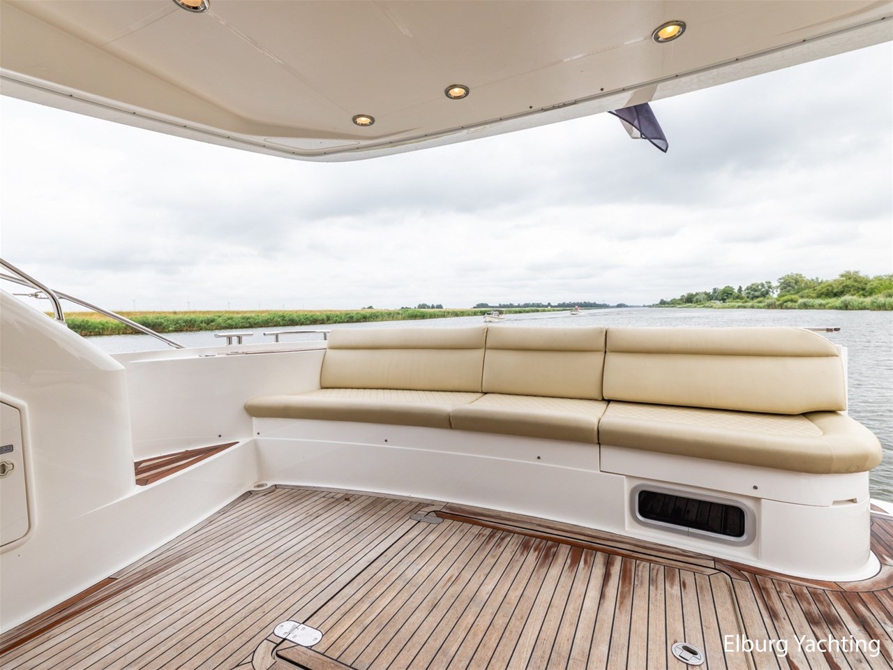 - Volledig teak in open kuip en op flybridge + kunststof teak in gangboorden