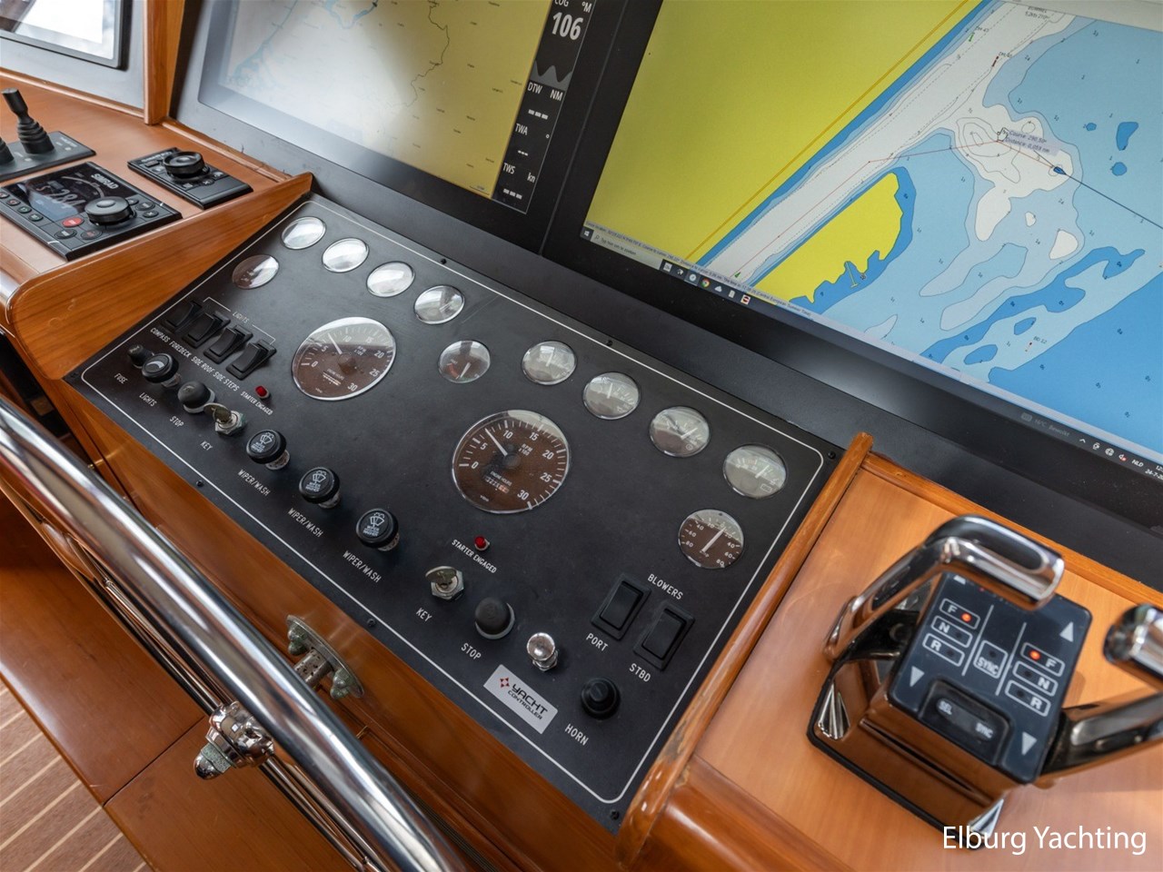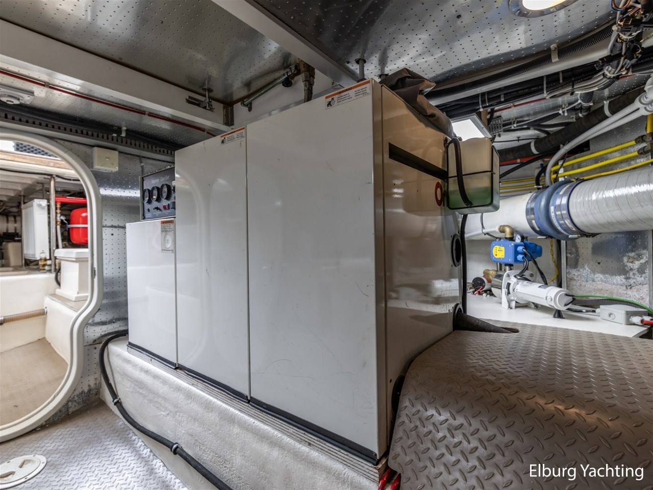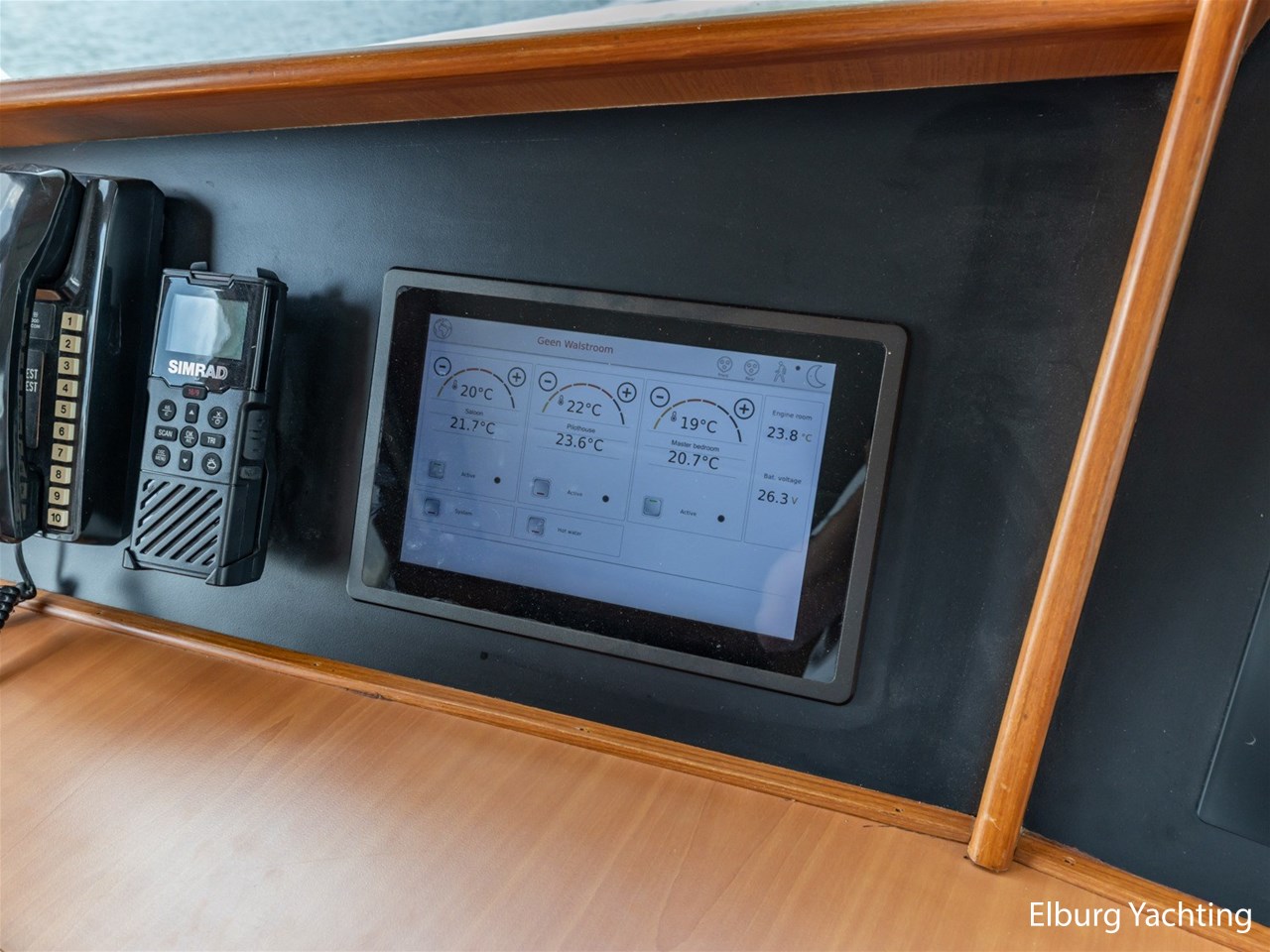 De Fleming 55 beschikt over een vloerverwarming, Post CV-installatie, elektrisch bedienbare boeg- en hekschroef, uitgebreide Simrad navigatieapparatuur en Yacht Controller, Naiad Stabilizers.